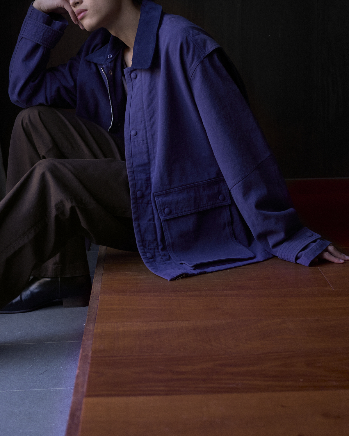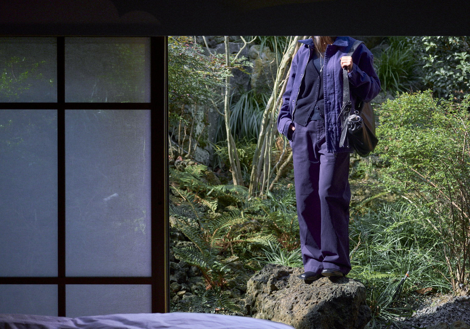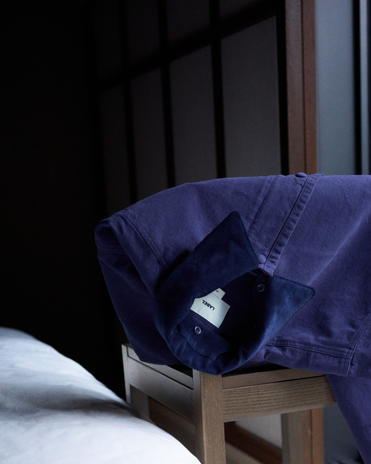 A washed carpenter jacket where the utility of workwear meets an Eastern sense of quiet order.