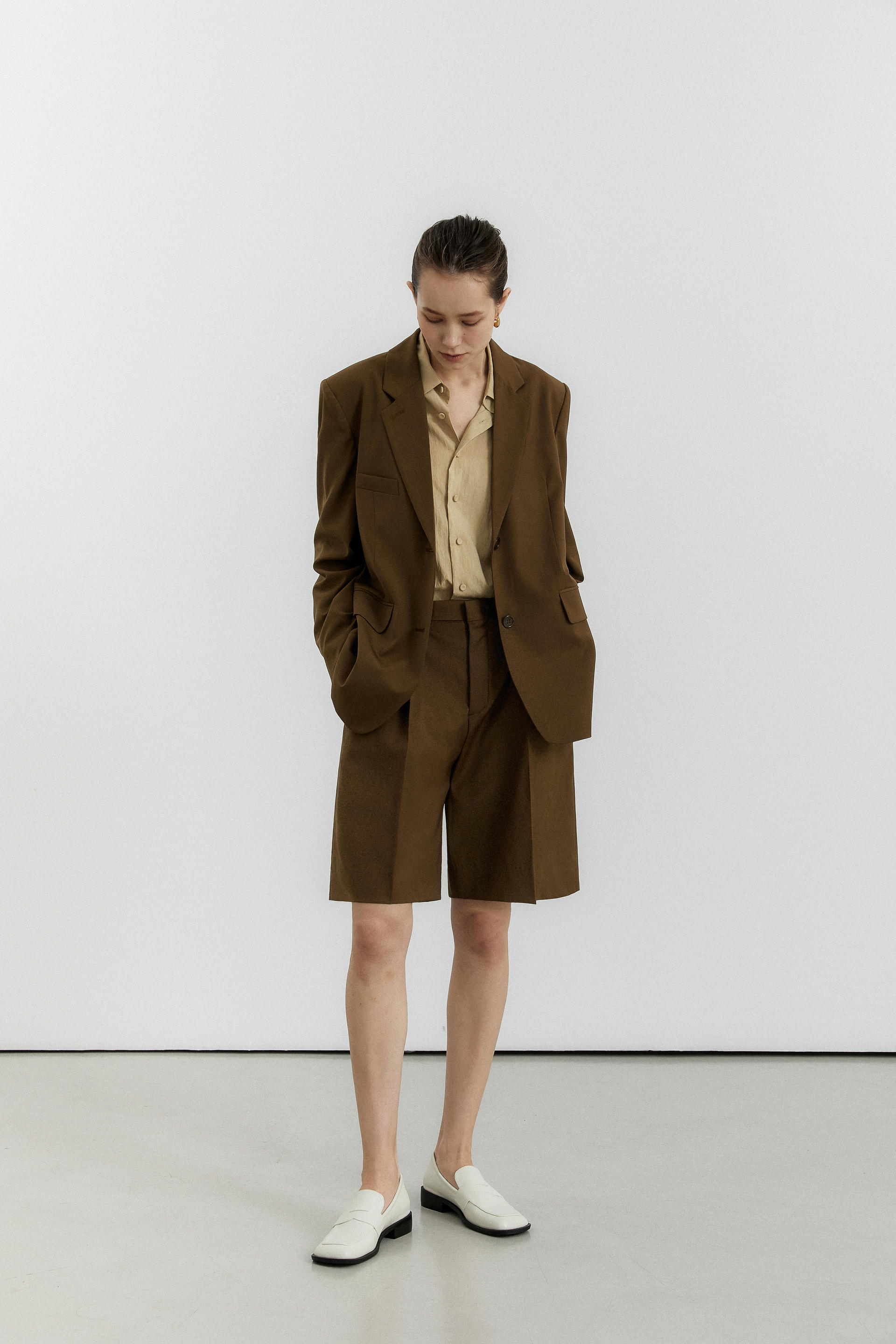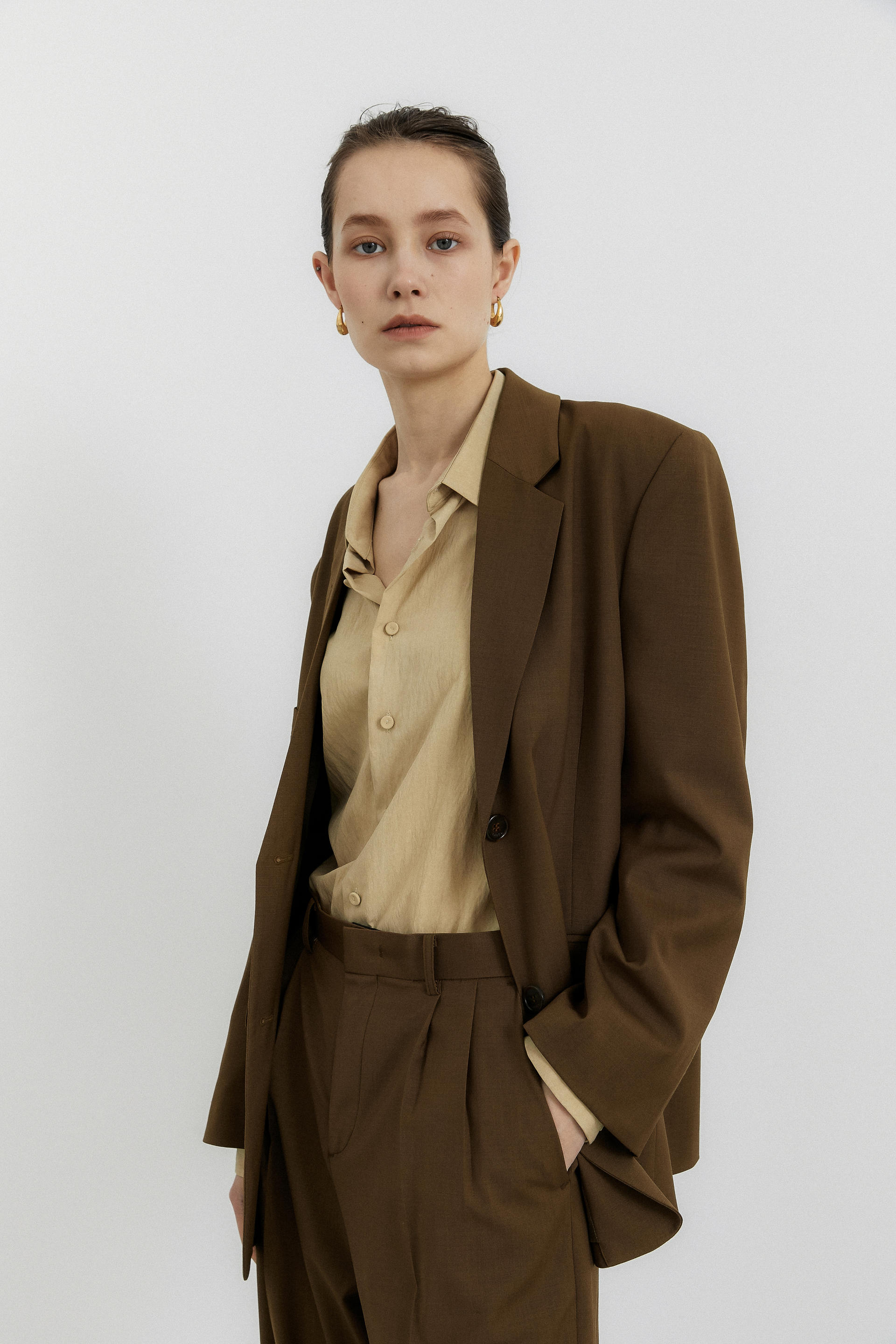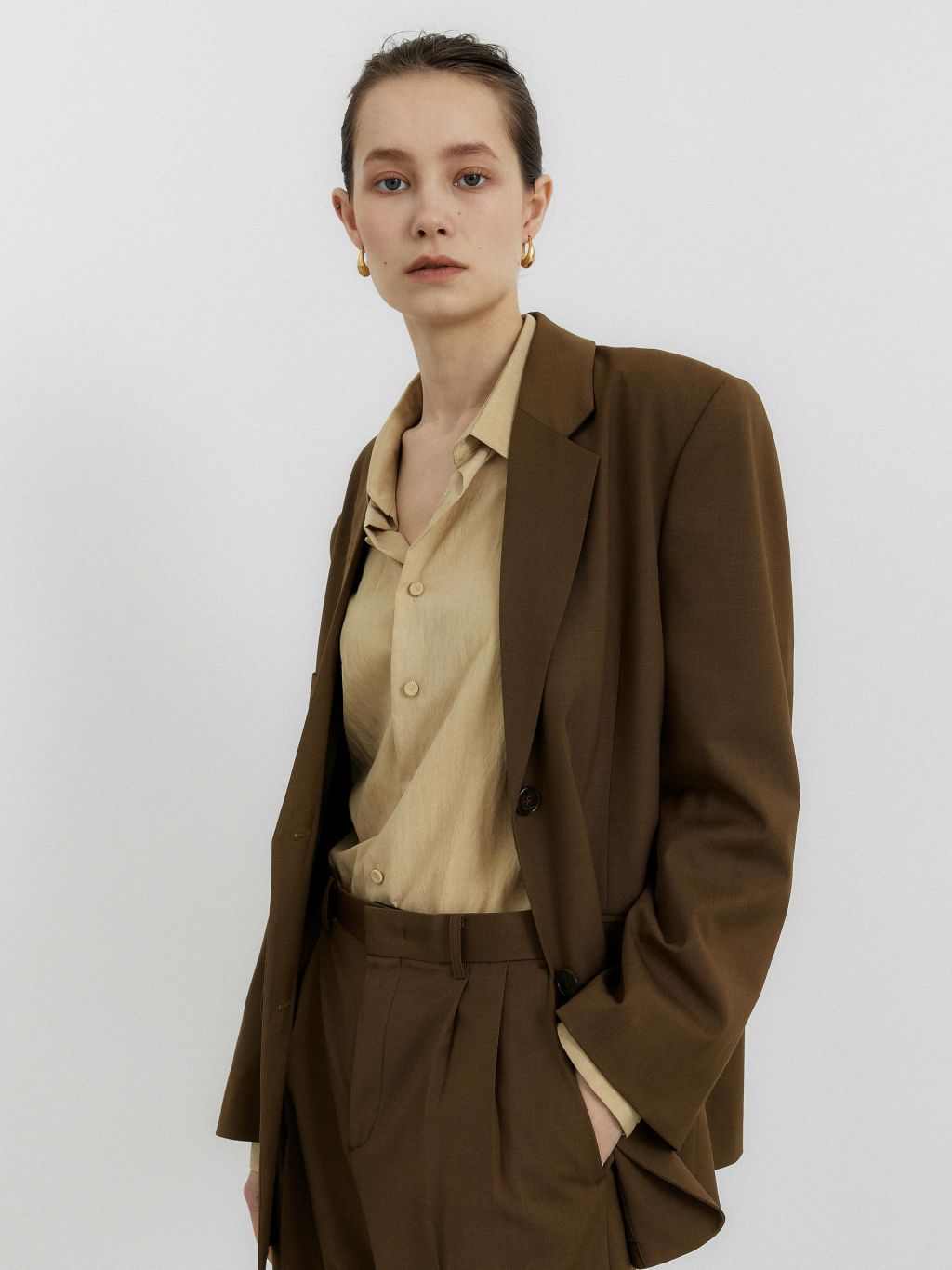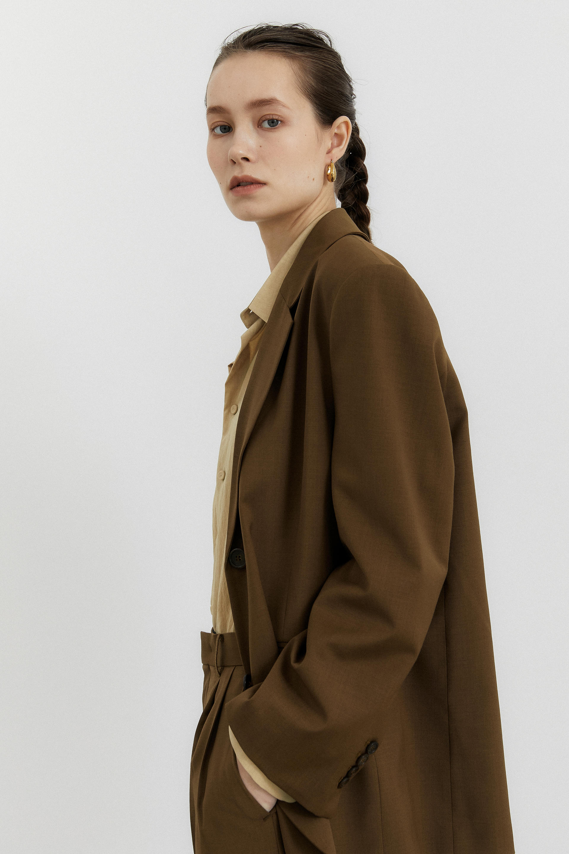 oversized single breasted jacket brown