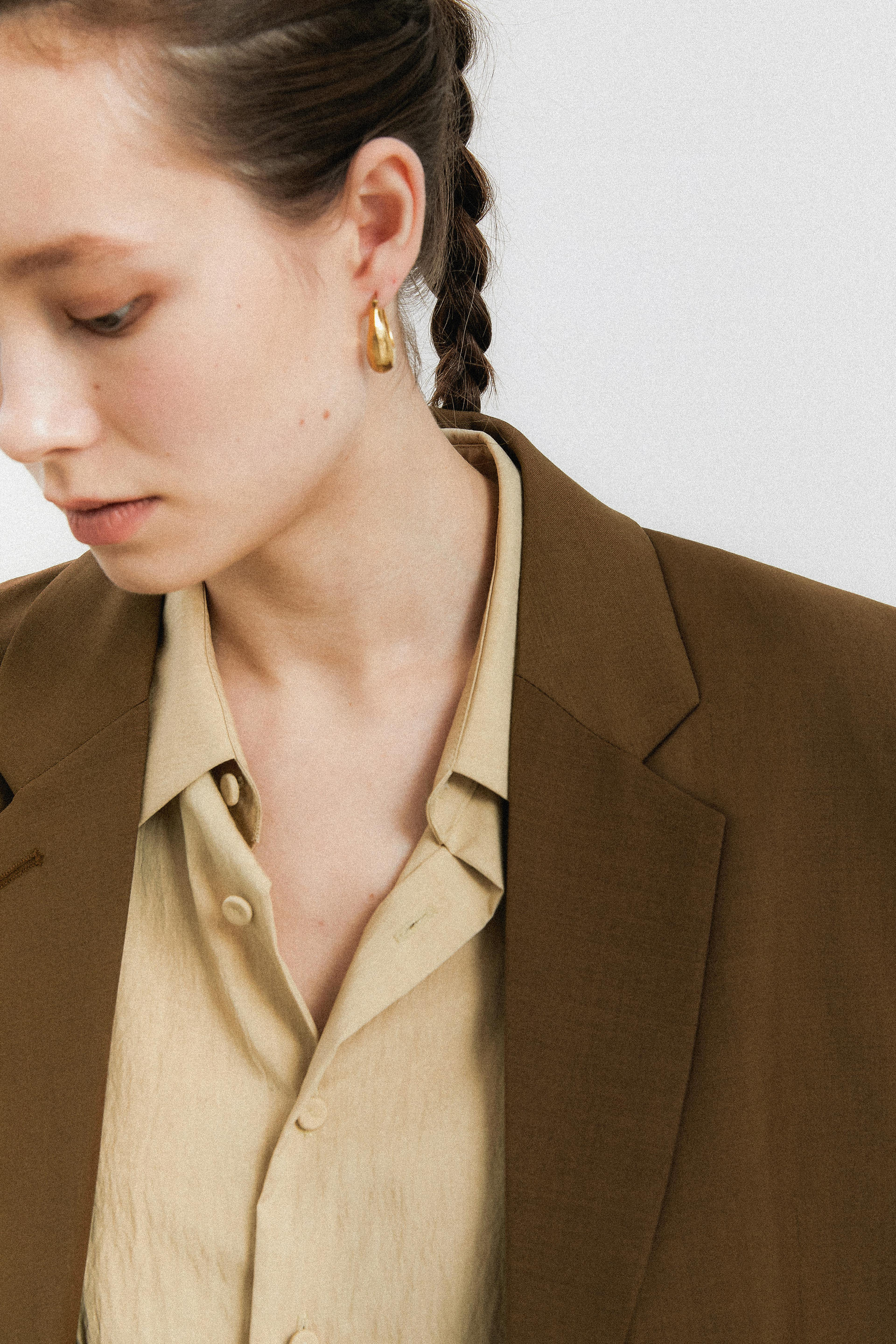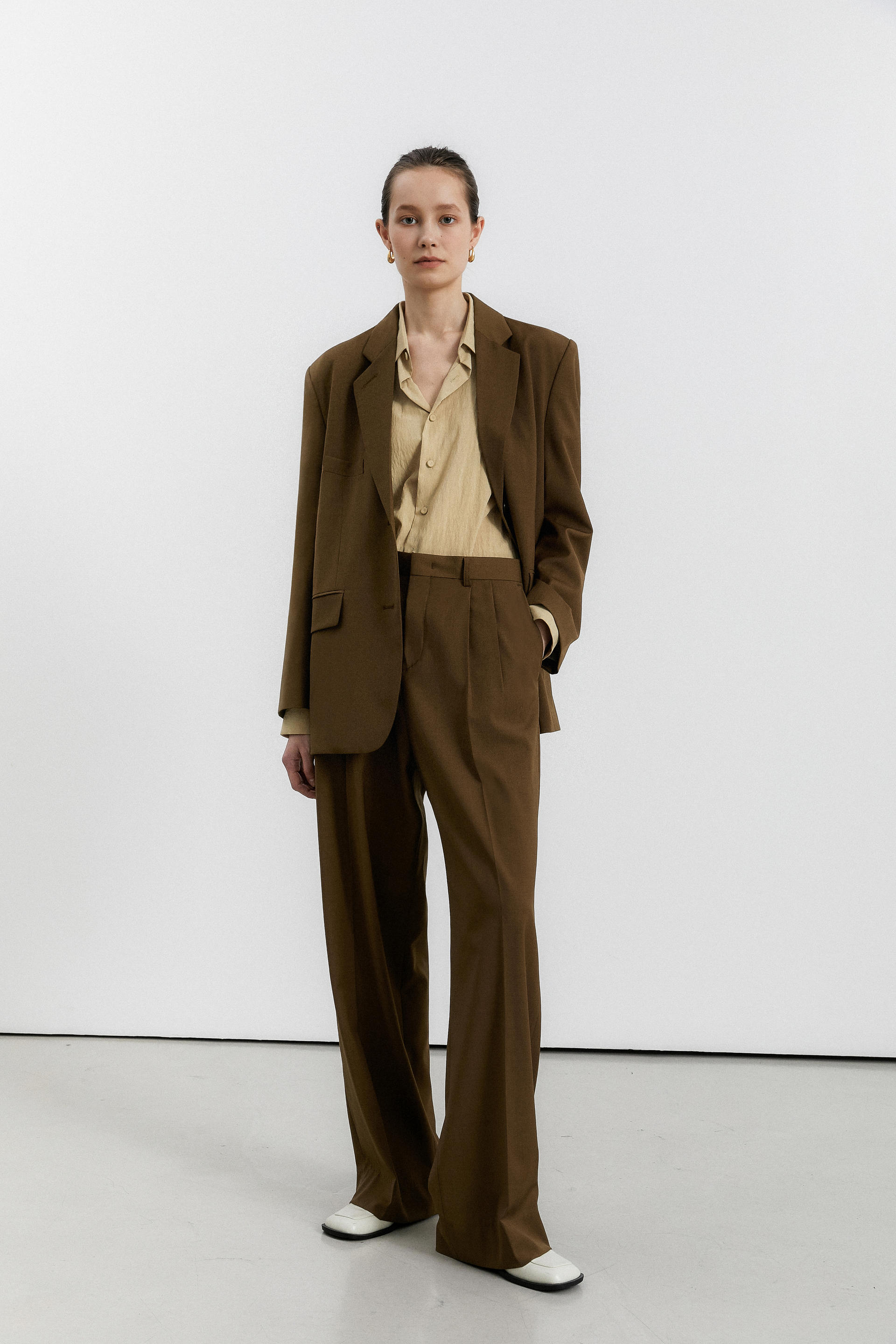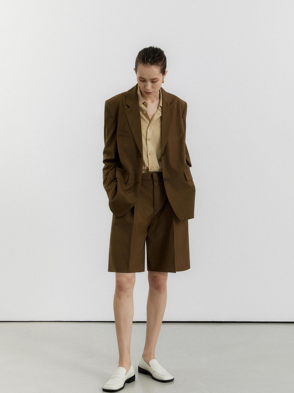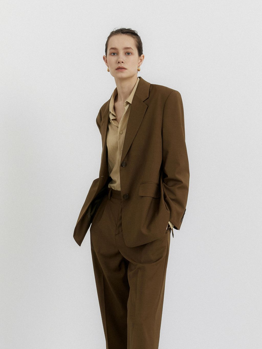 oversized single breasted jacket brown
