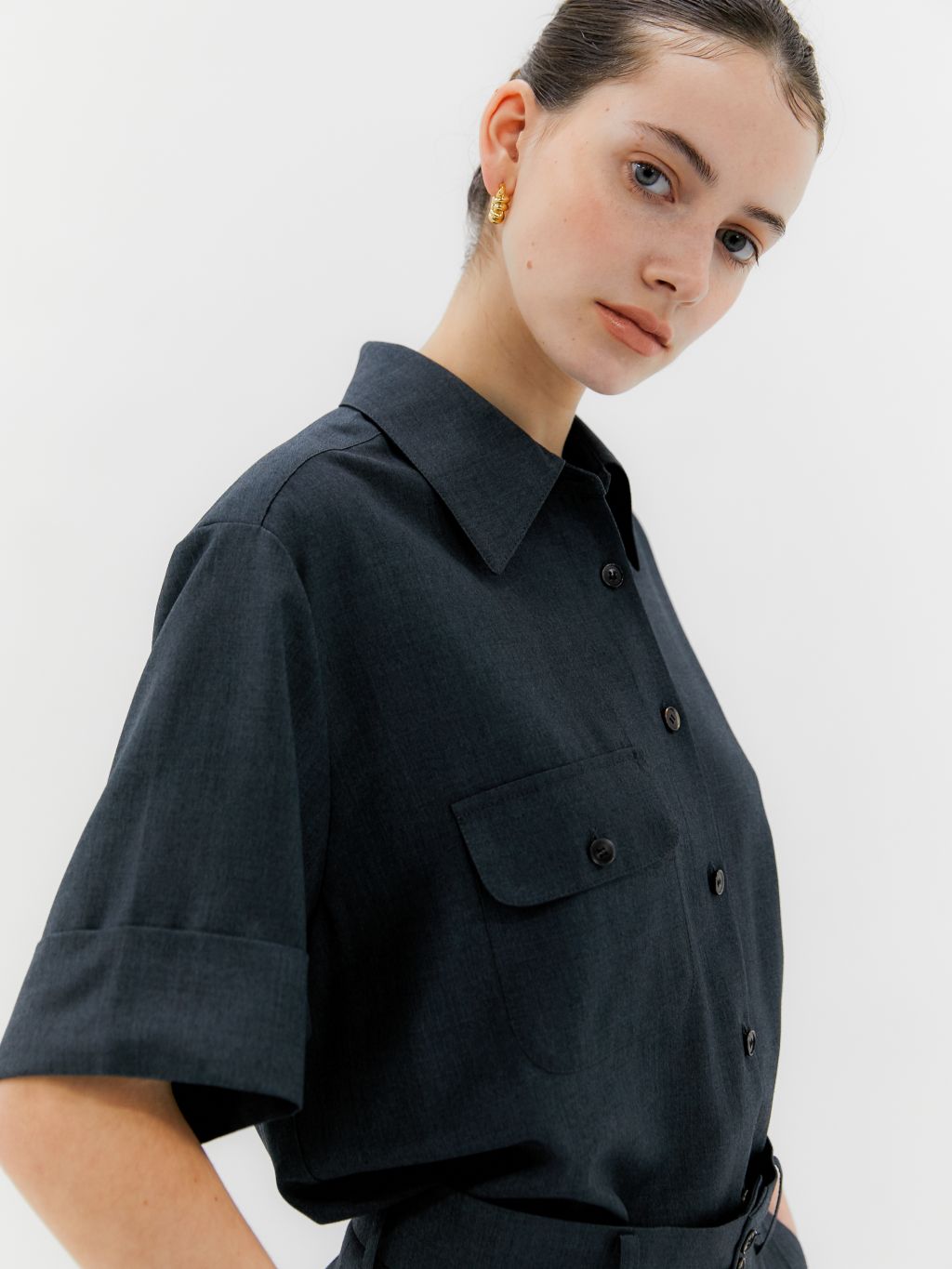 turn up sleeve shirt ash grey