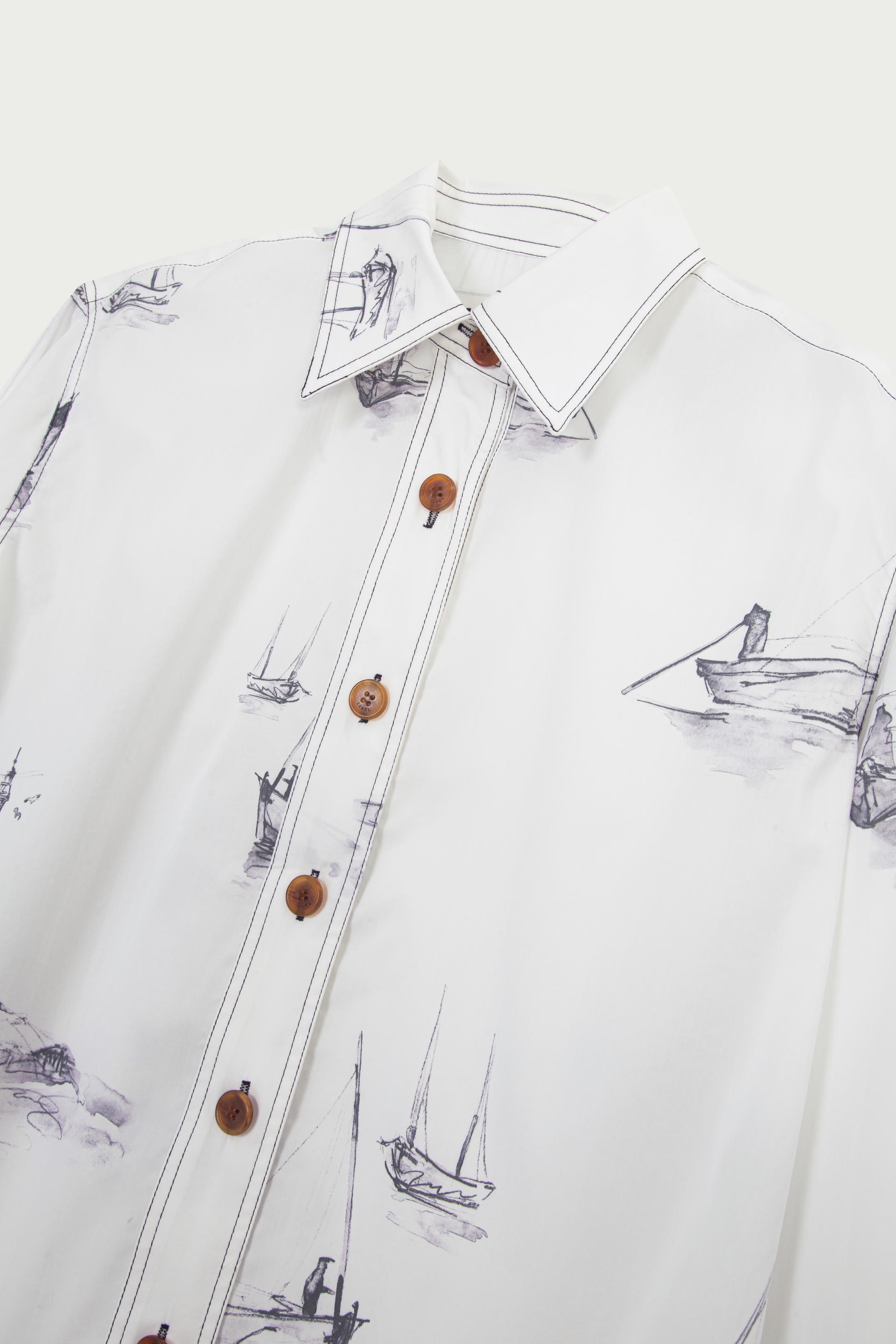 이탈리아 작은 도시의 해안가의 모습을 핸드드로잉하여 하이퀄리티 디지털 프린트로 그대로 구현한 자체제작 원단입니다.