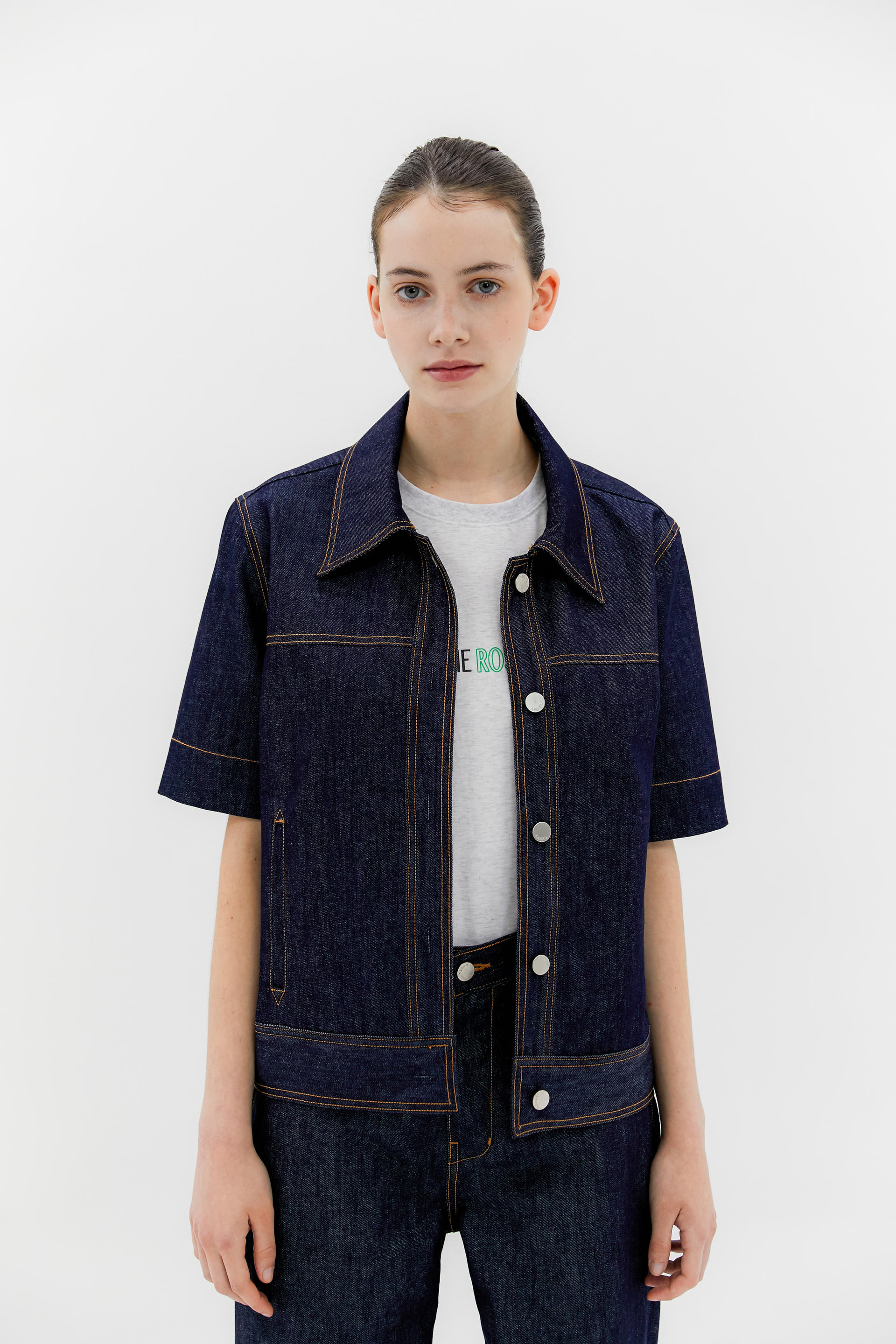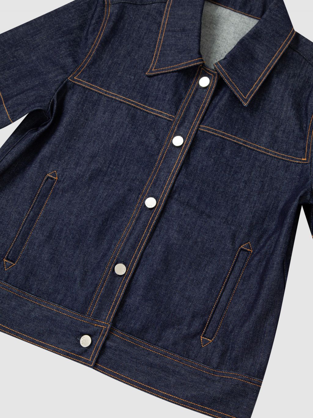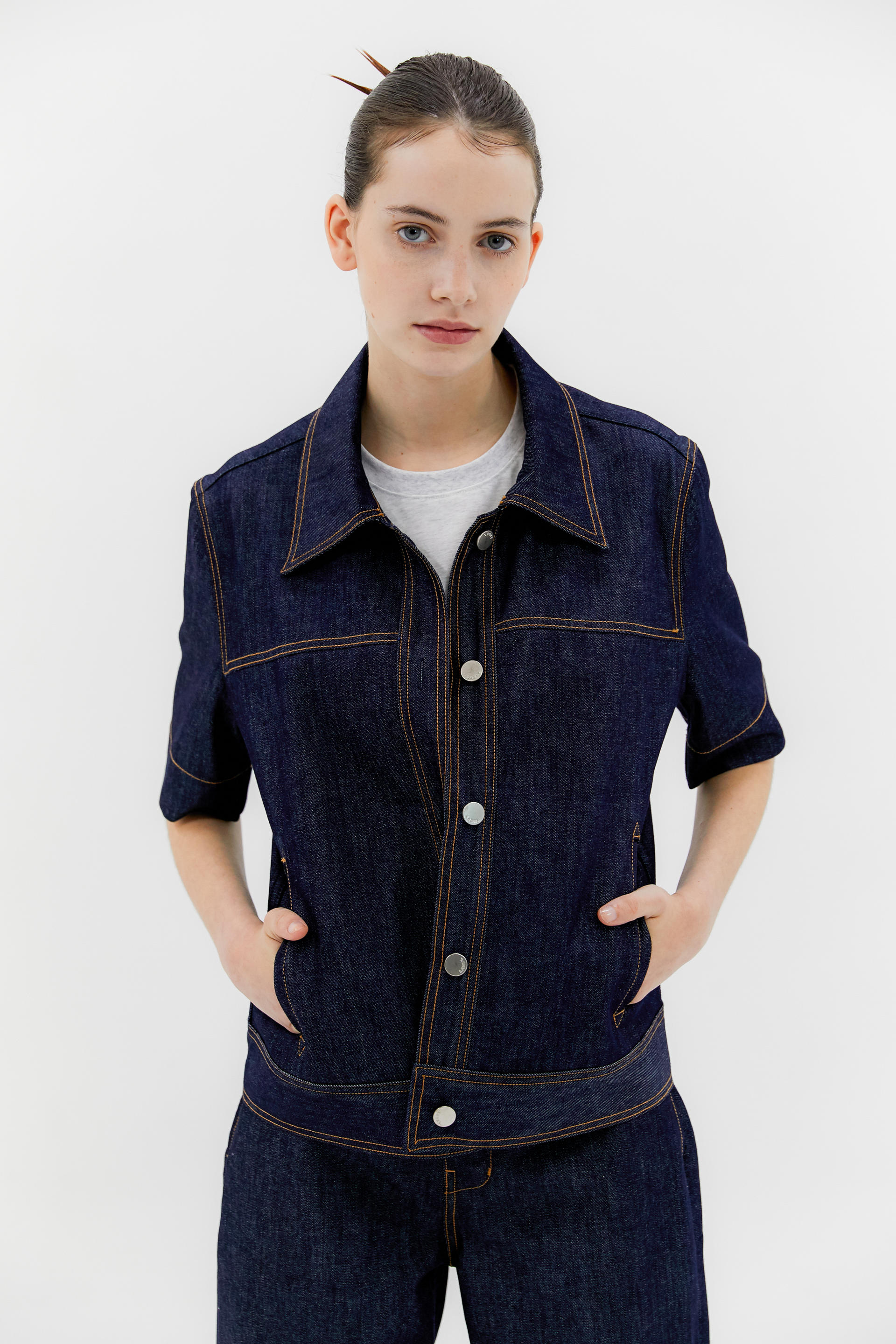 - 스탠다드 핏 코튼 자켓 - 하이퀄리티의 원단과 데님 공정으로 제작 - 스티치 디테일 |