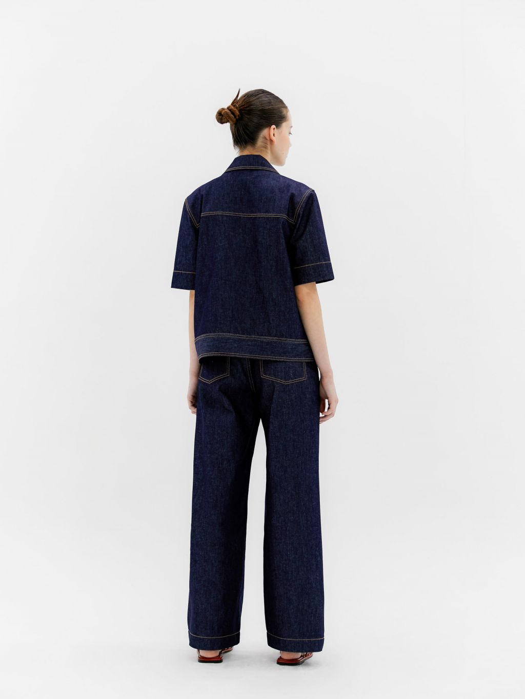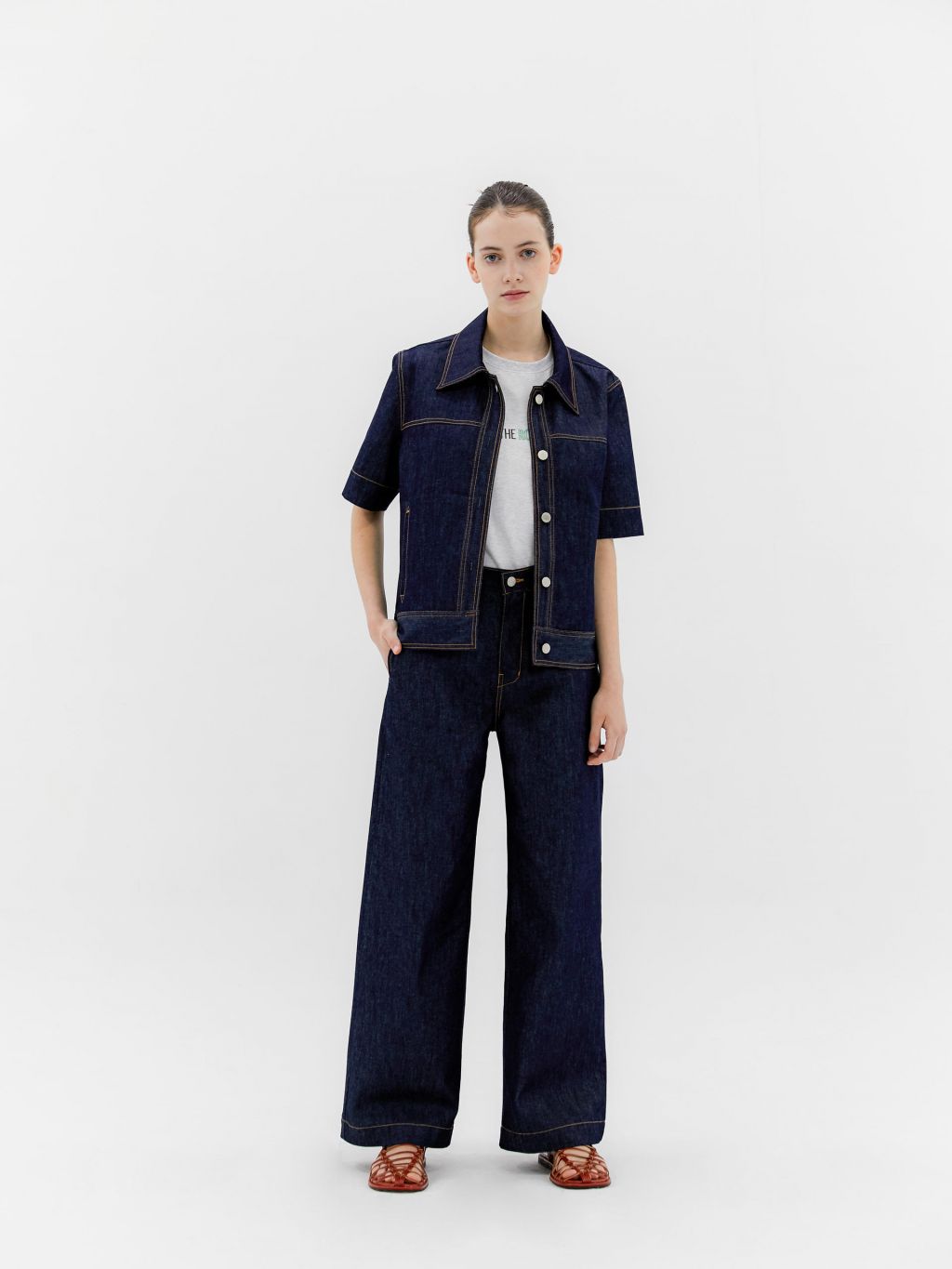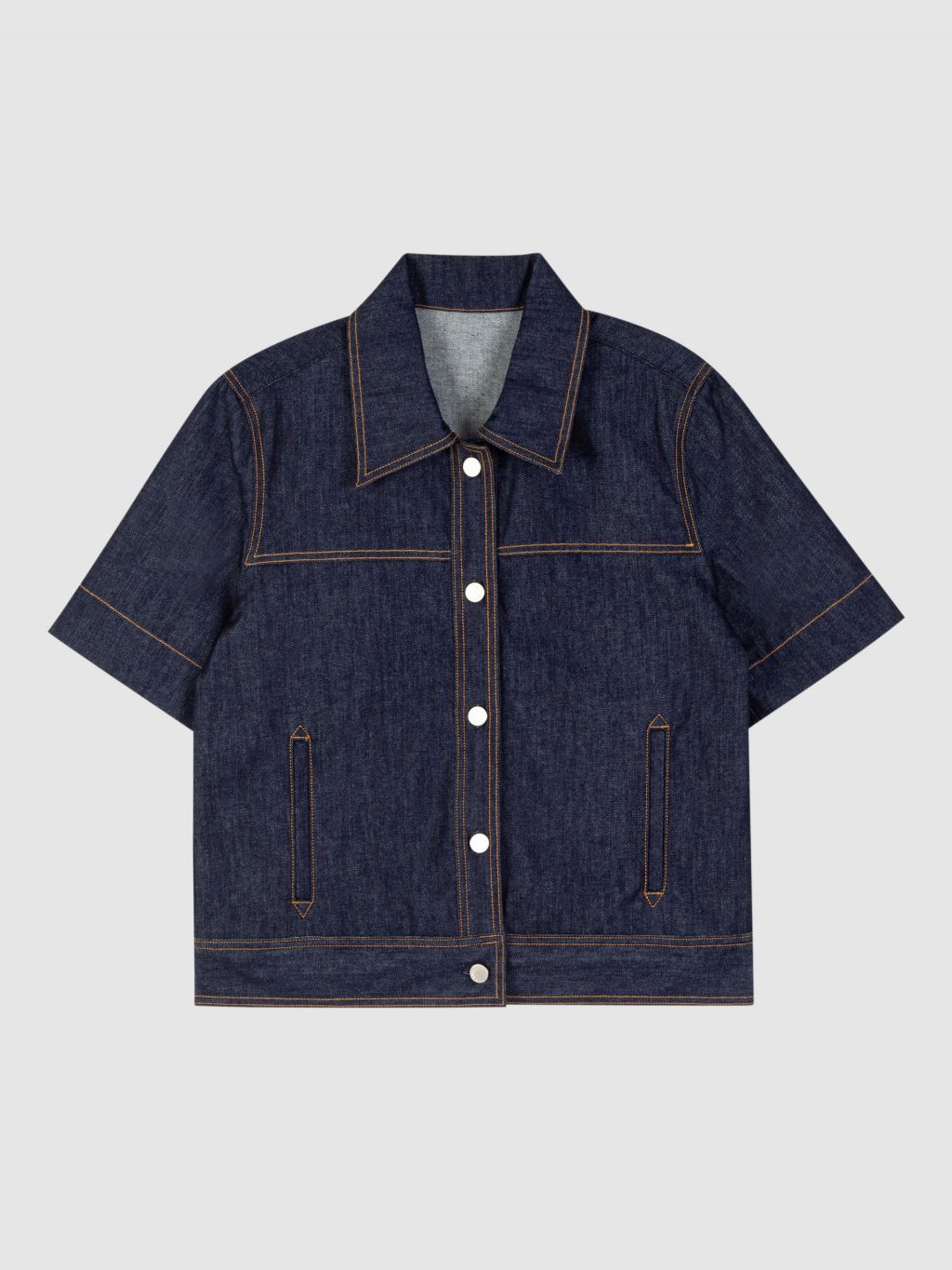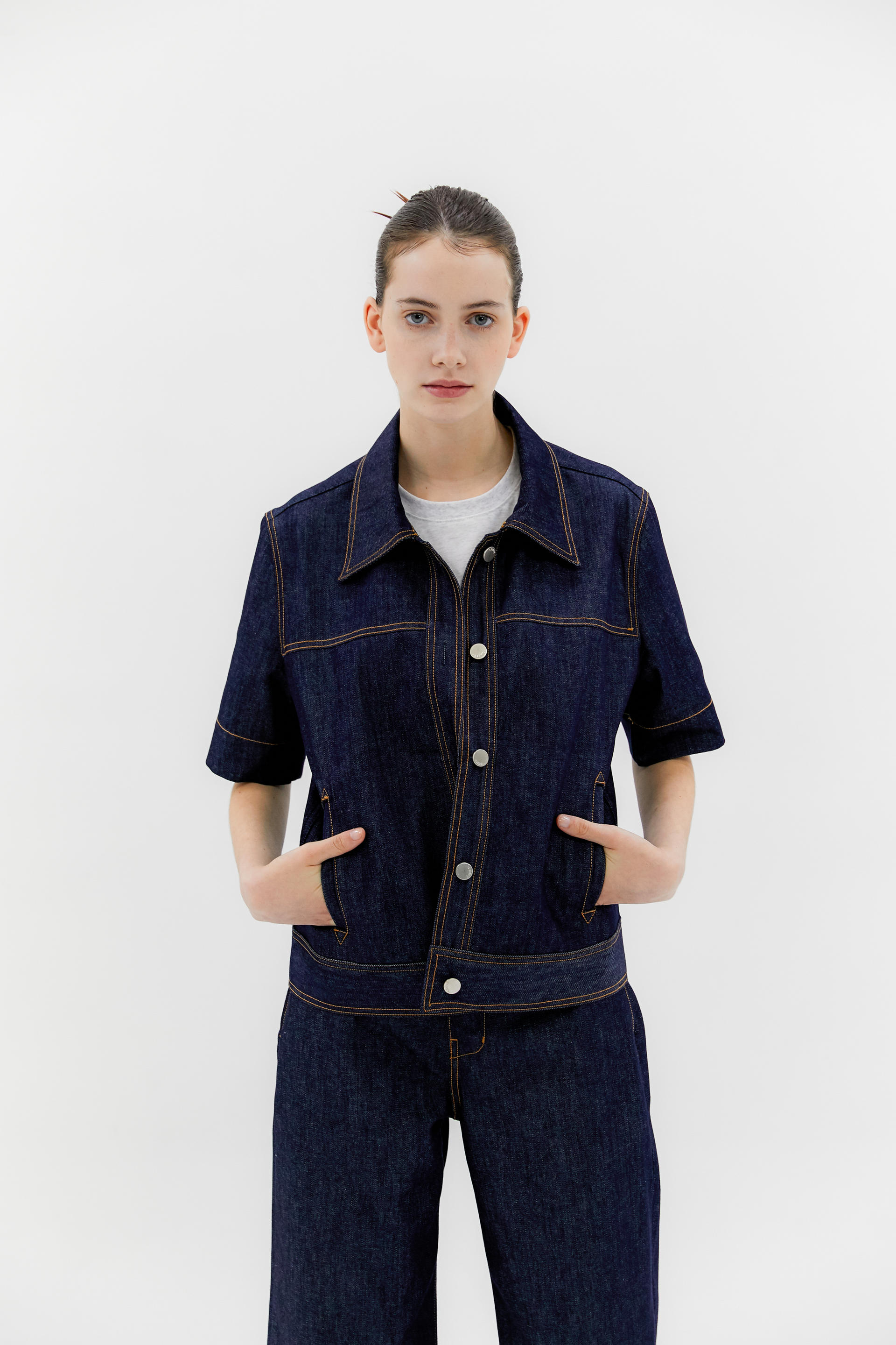 - 스탠다드 핏 코튼 자켓 - 하이퀄리티의 원단과 데님 공정으로 제작 - 스티치 디테일 |