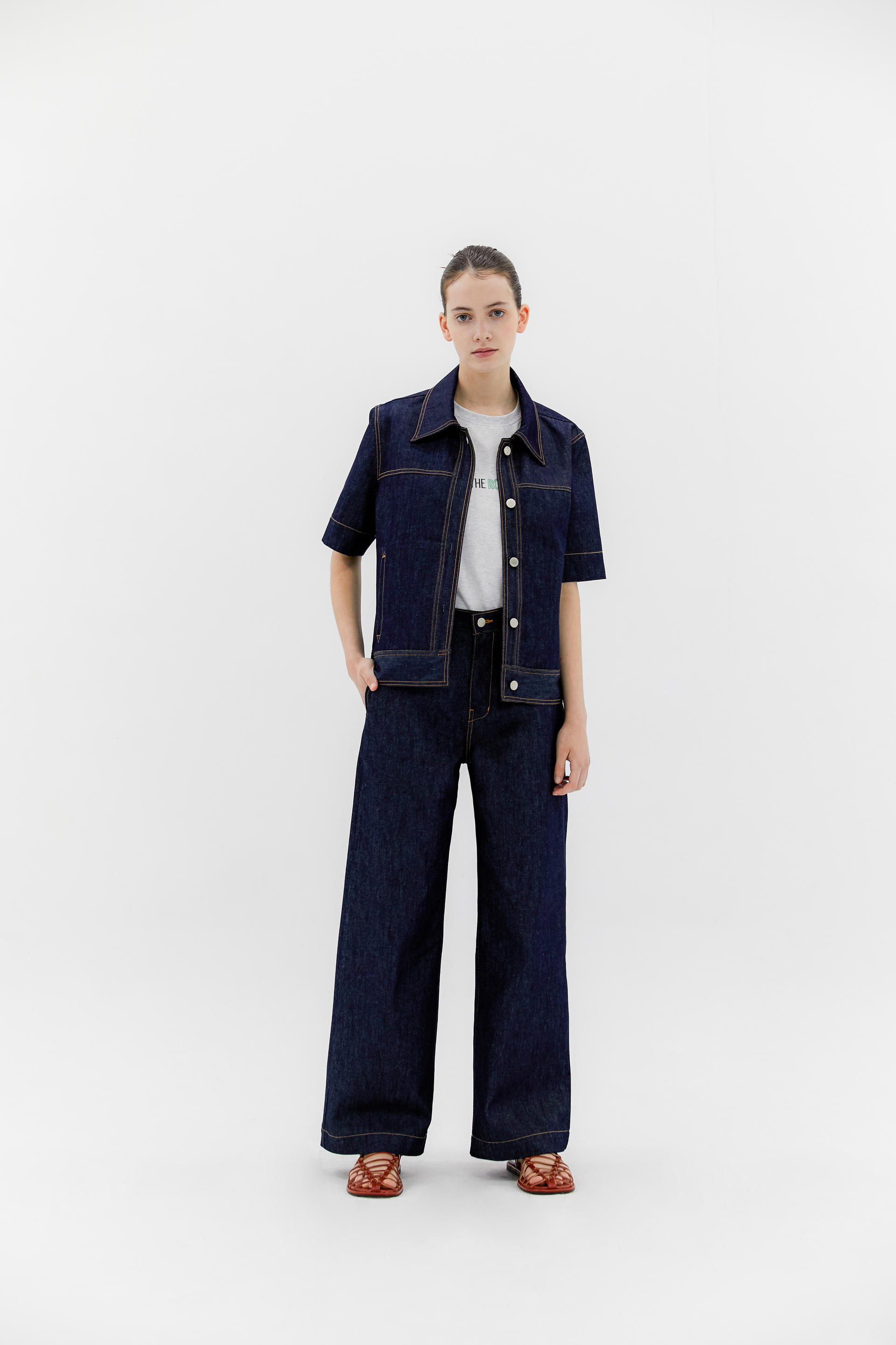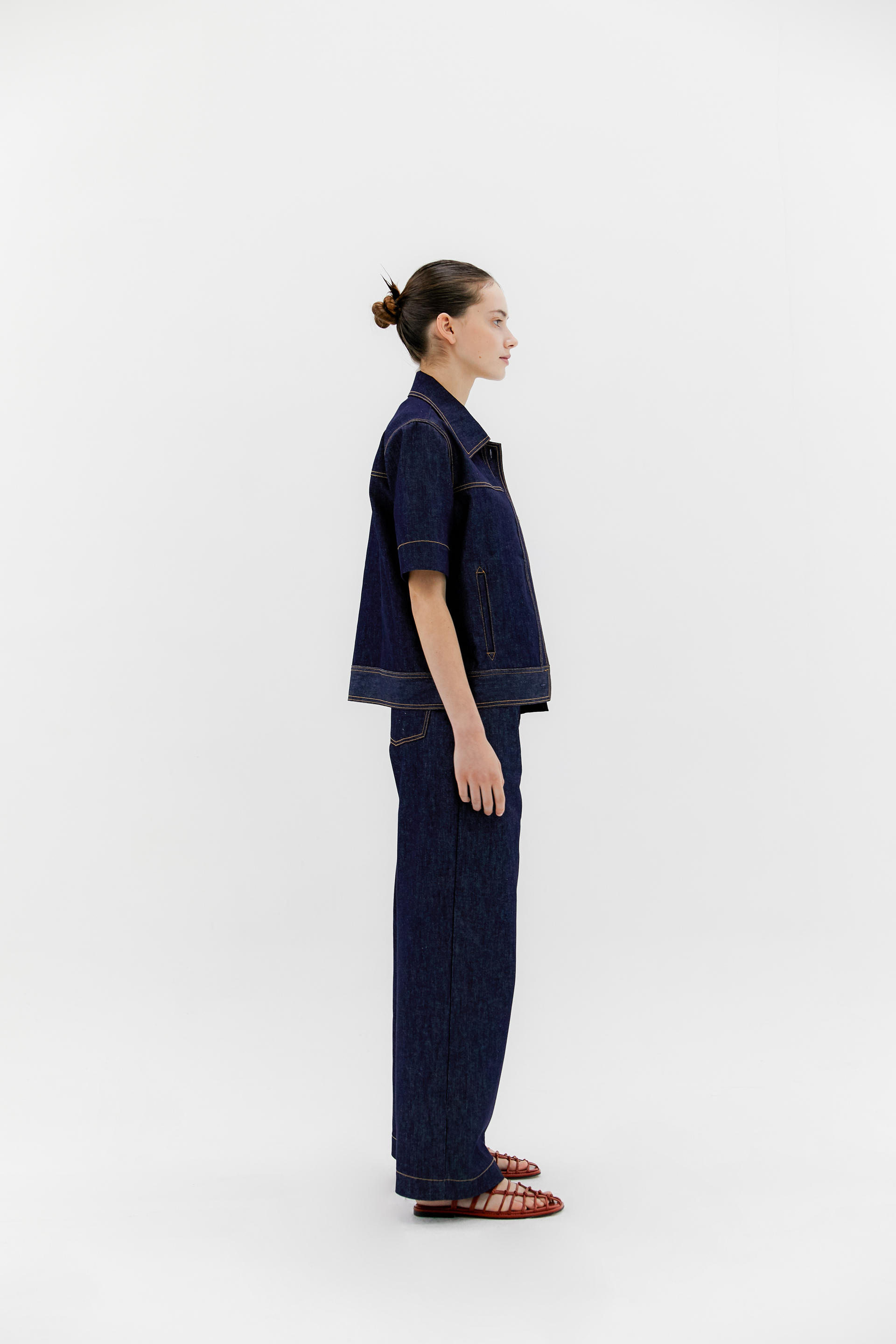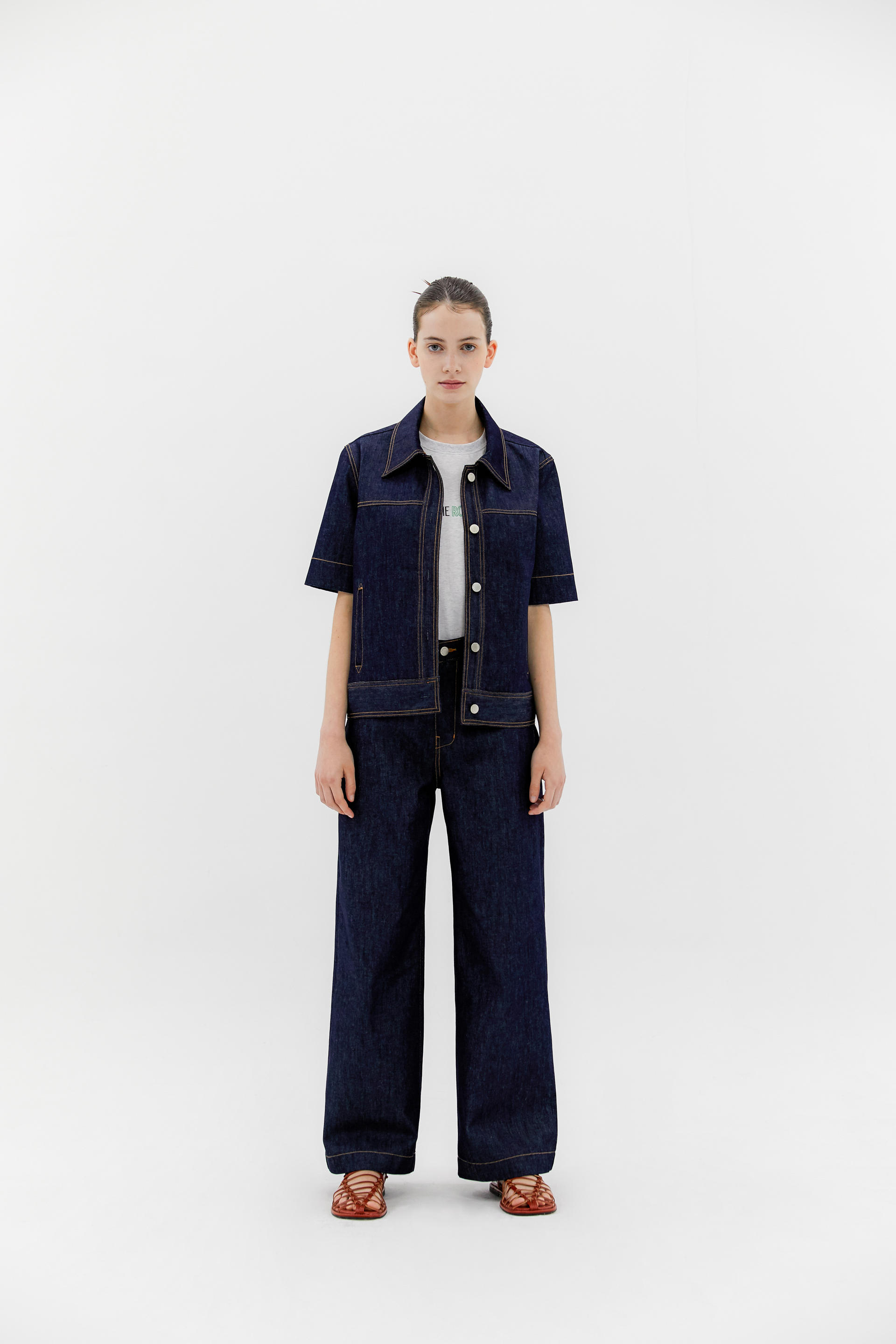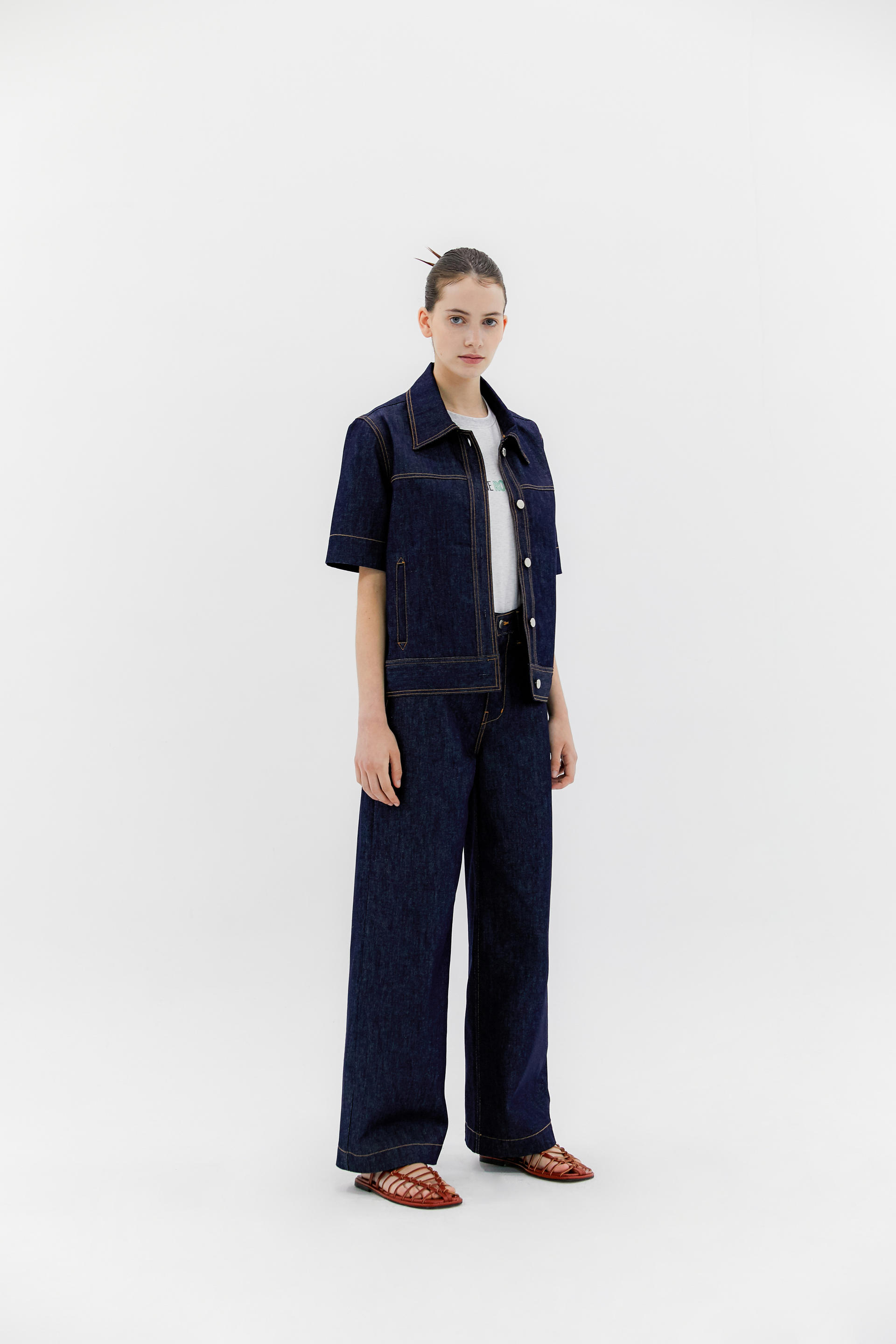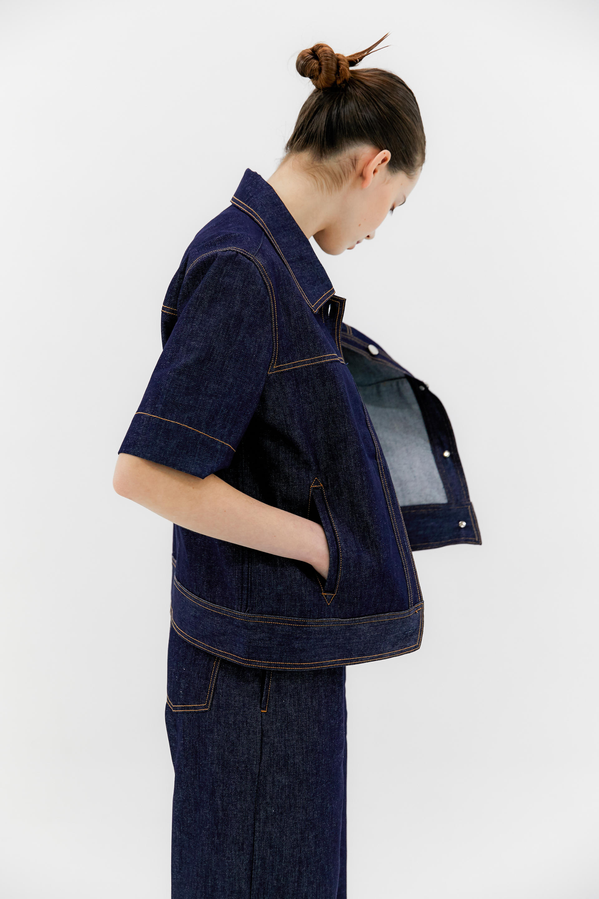 cotton 100% 두껍지 않은 10수 넌스판 생지 데님 소재로 가벼운 아우터로 착용할 수 있는 소재입니다. 워싱가공을 거치지 않은 생지 데님이기 때문에 밝은 옷과 착용시 이염에 주의해주세요. |