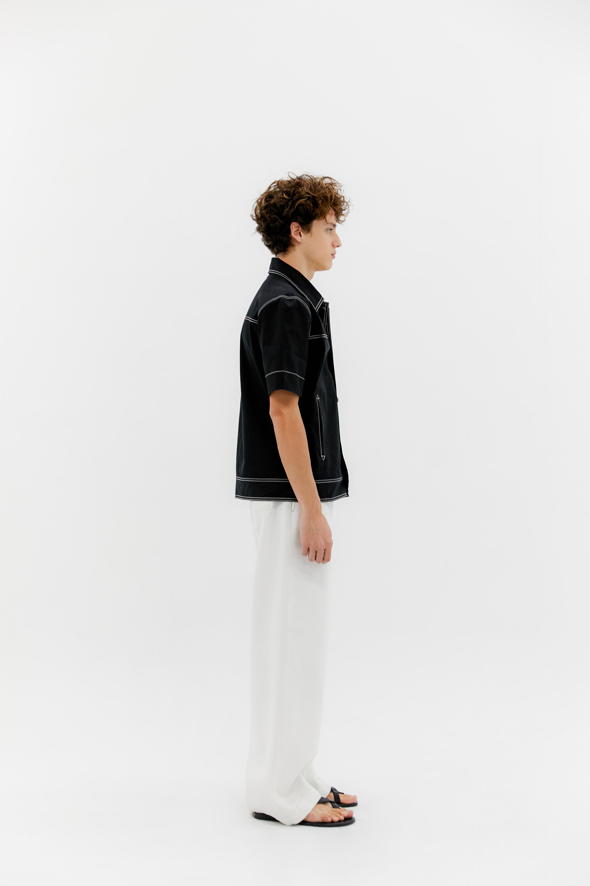 cotton 100% 두껍지 않은 고밀도 면소재로 가벼운 아우터로 착용할 수 있는 소재입니다. |