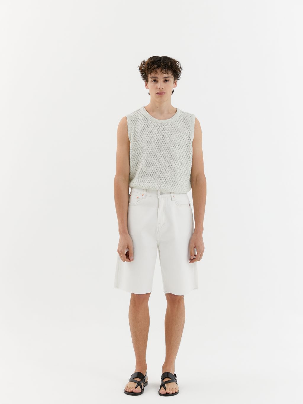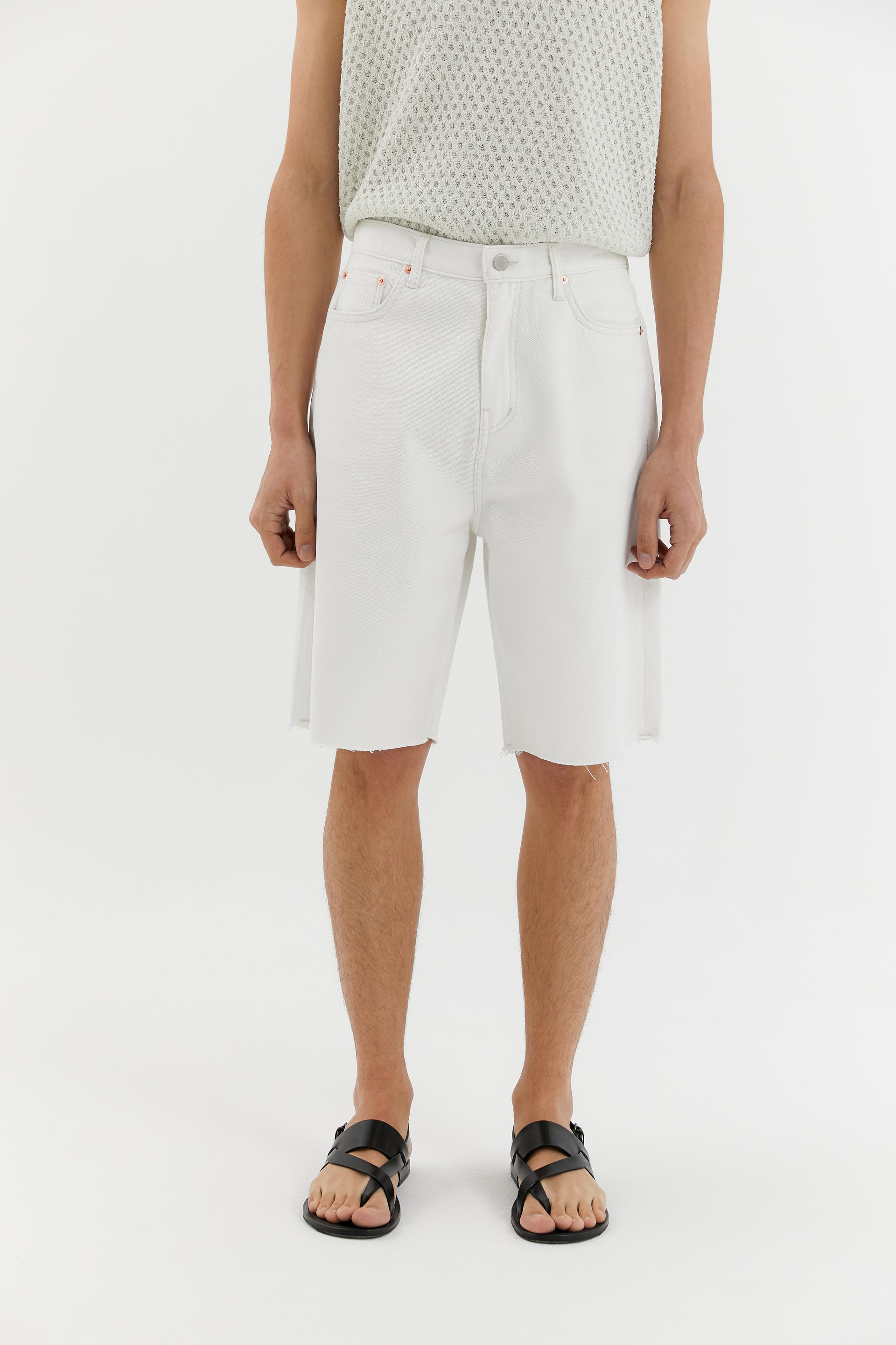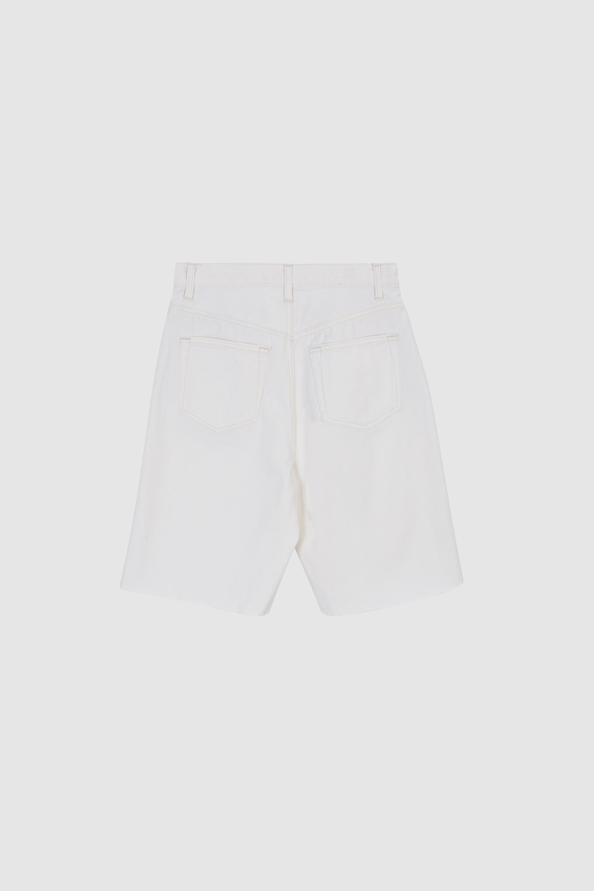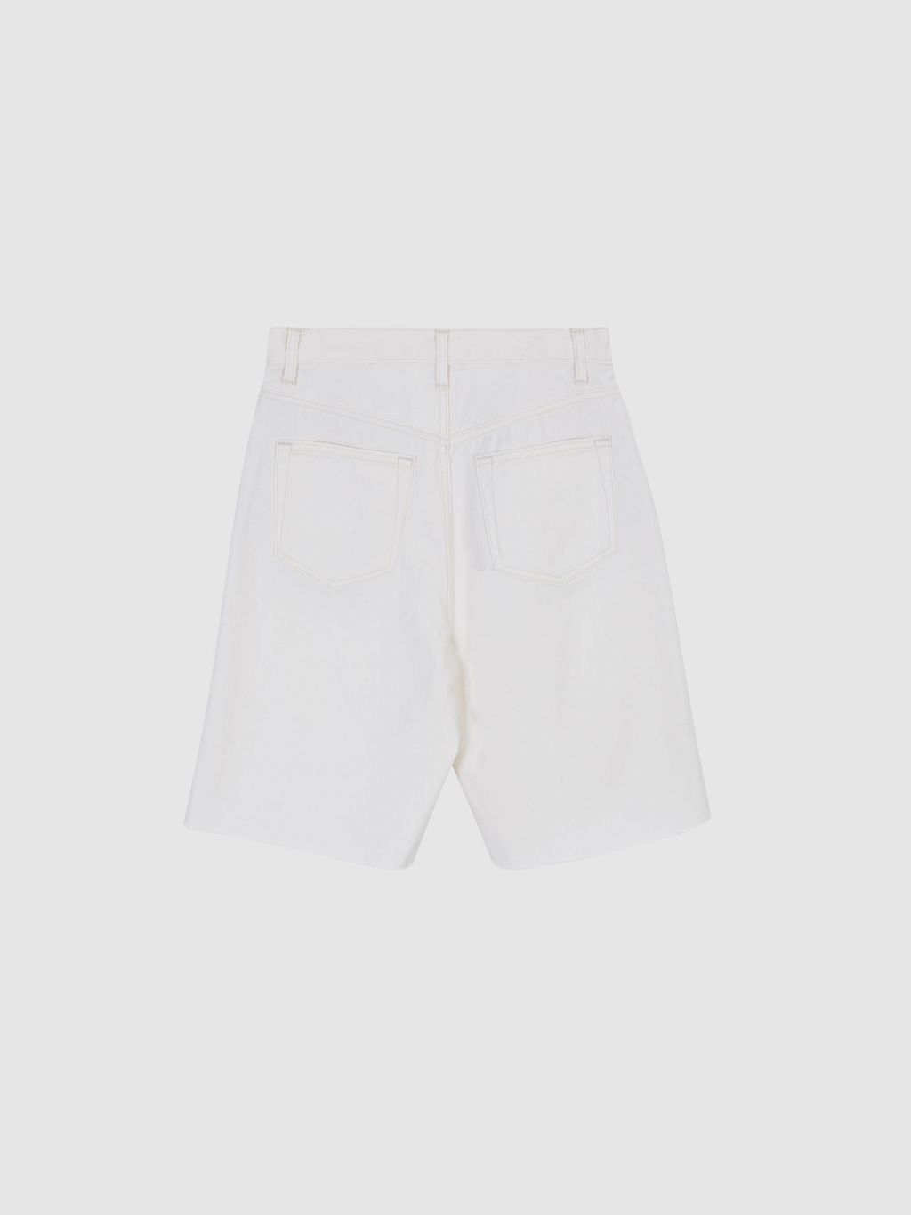 - 와이드 핏의 버뮤다 데님 반바지 - YKK 社의 지퍼, 리벳 - LABEL 로고가 각인된 고정식 켄톤 - 30수 트윌 코튼 주머니감 - 코아사 봉사 |
