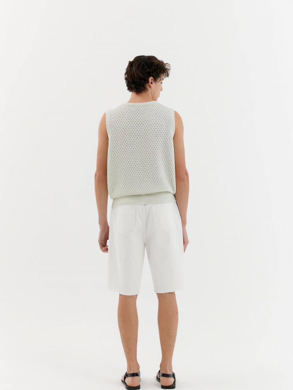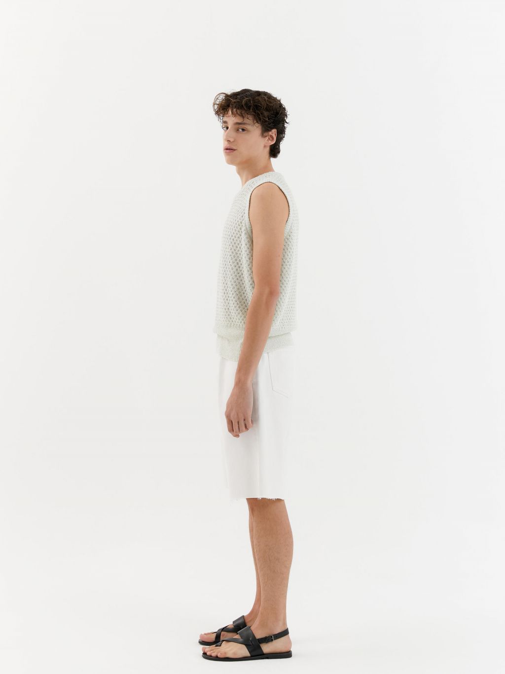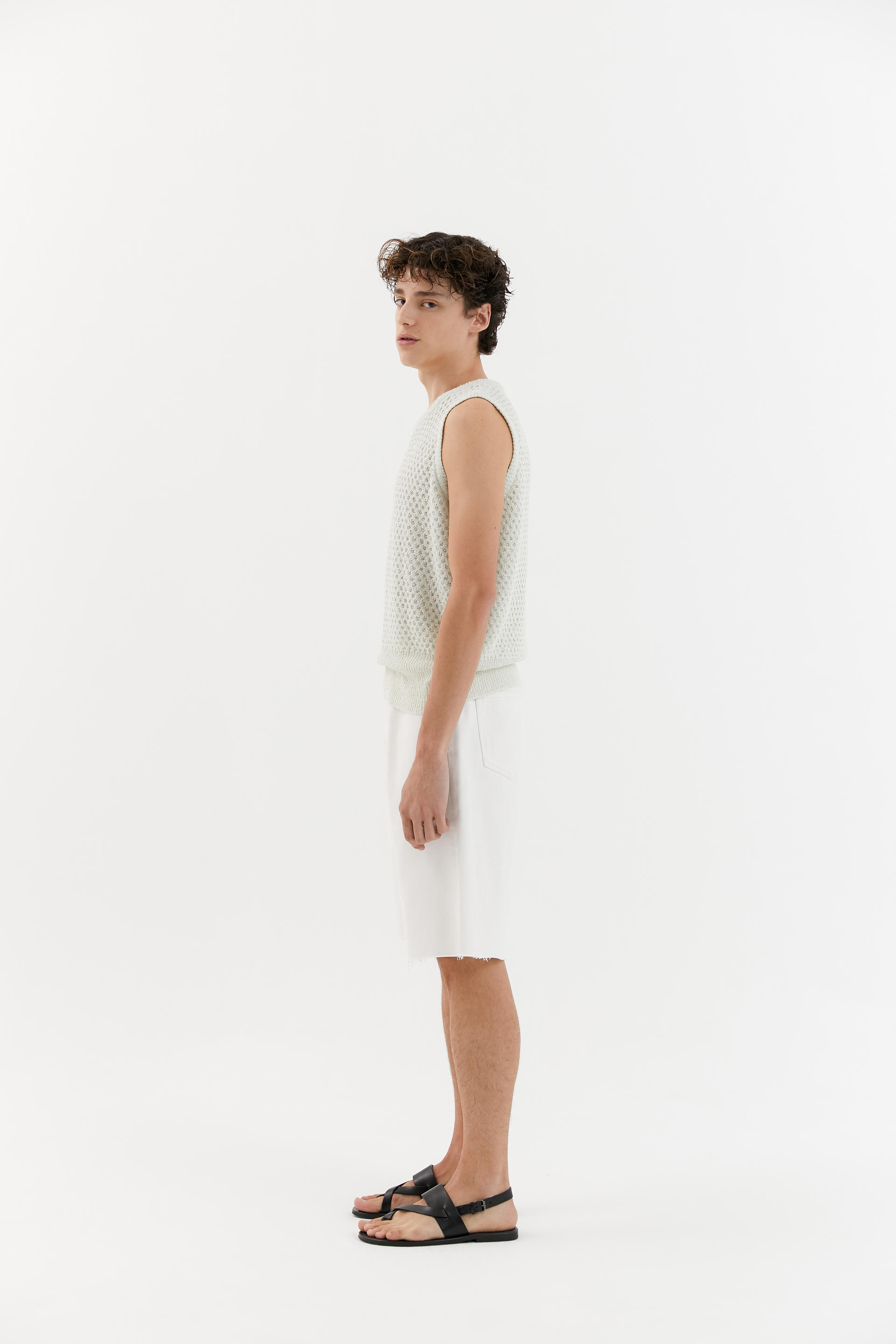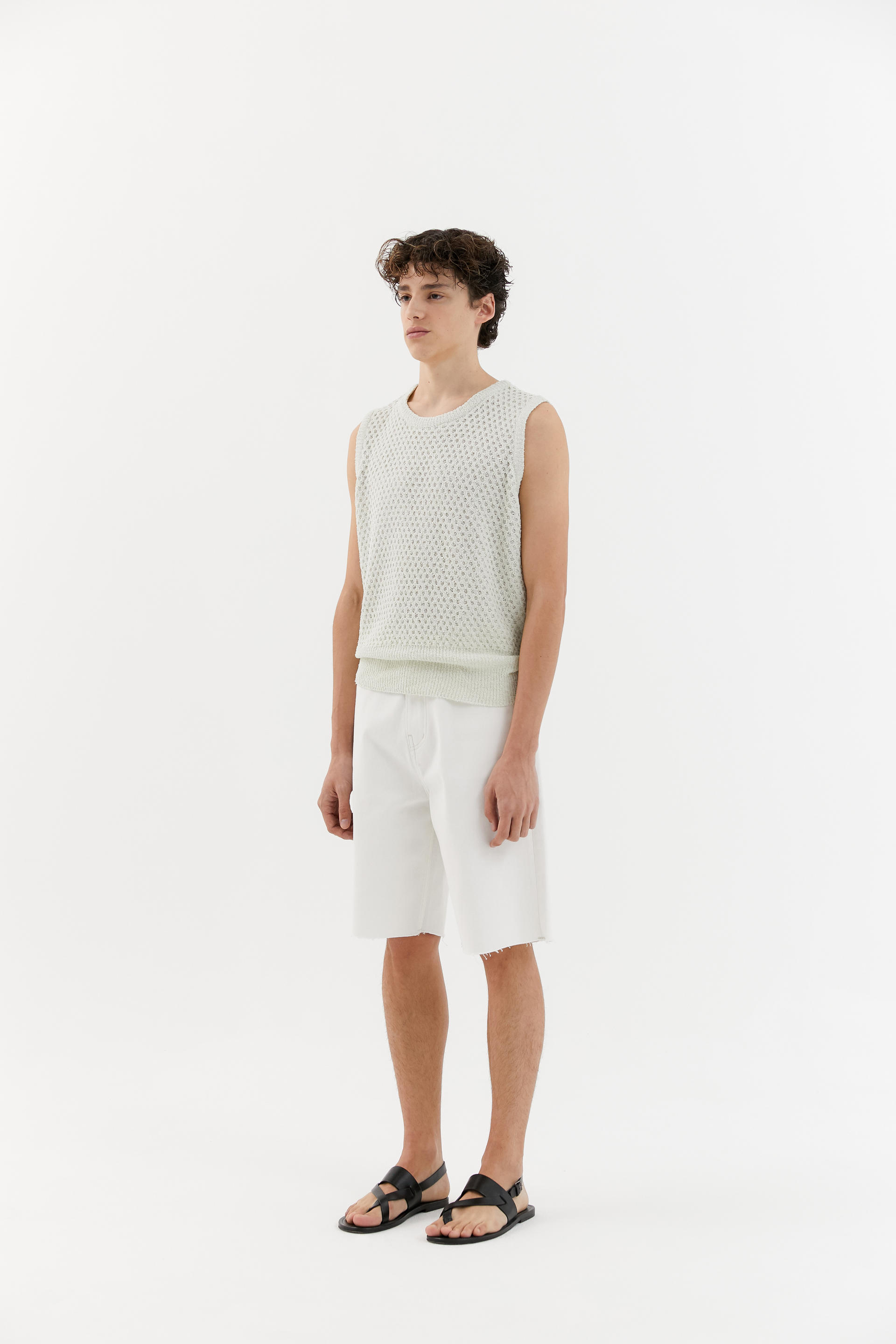 - 와이드 핏의 버뮤다 데님 반바지 - YKK 社의 지퍼, 리벳 - LABEL 로고가 각인된 고정식 켄톤 - 30수 트윌 코튼 주머니감 - 코아사 봉사 |