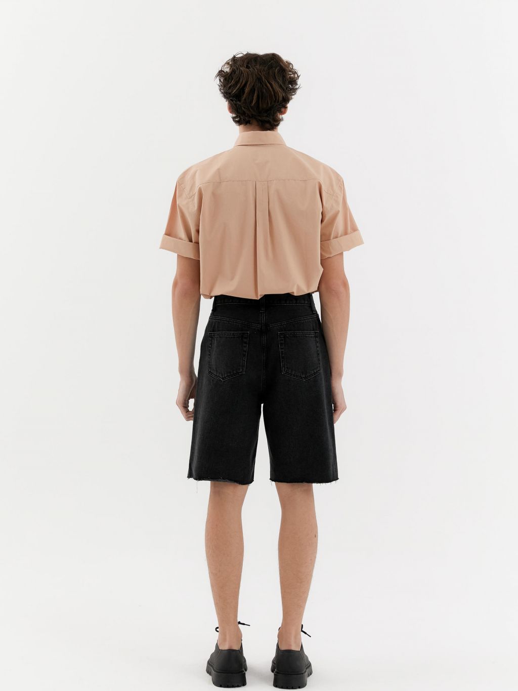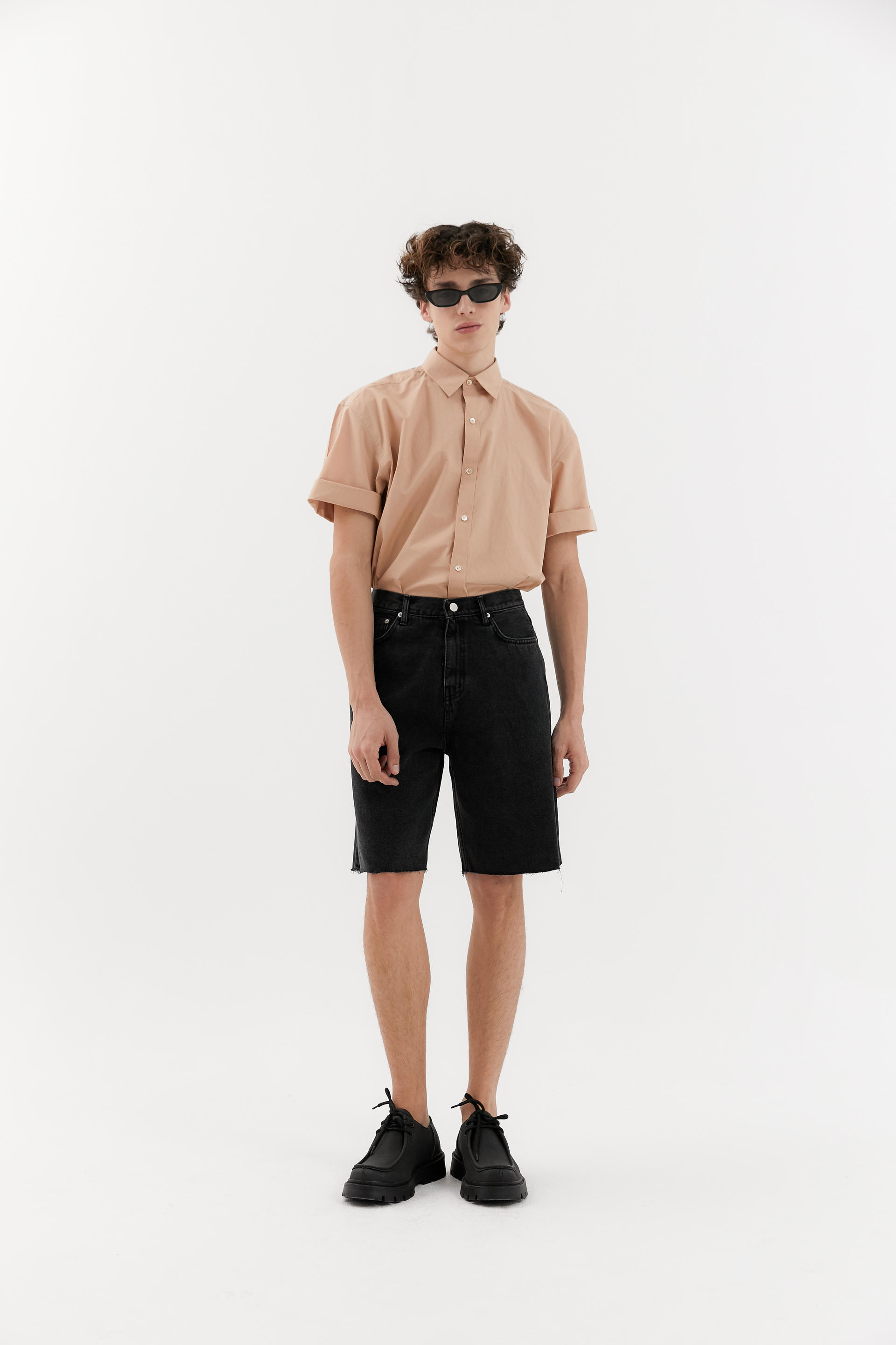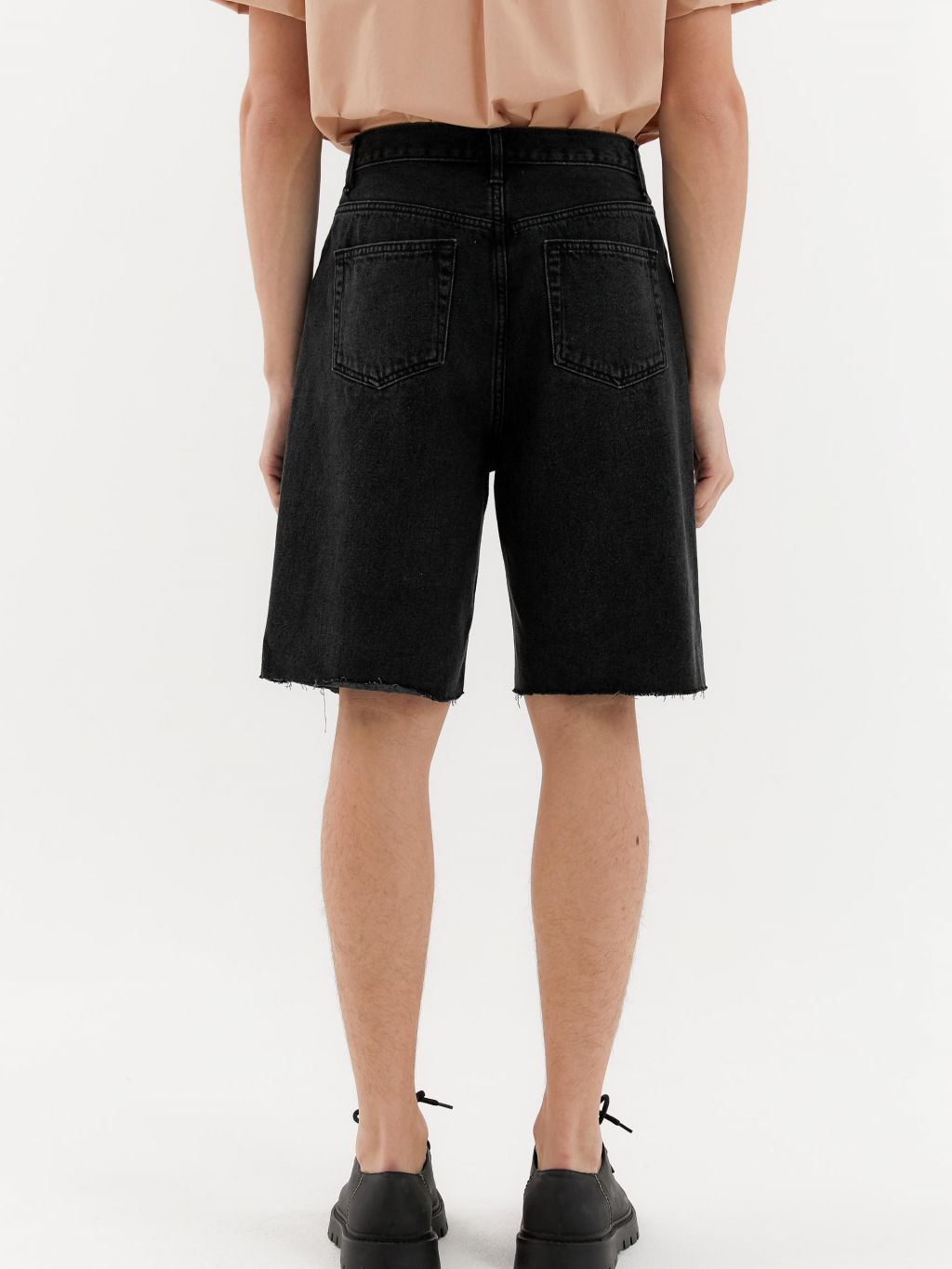 - 와이드 핏의 버뮤다 데님 반바지 - YKK 社의 지퍼, 리벳 - LABEL 로고가 각인된 고정식 켄톤 - 30수 트윌 코튼 주머니감 - 코아사 봉사 |