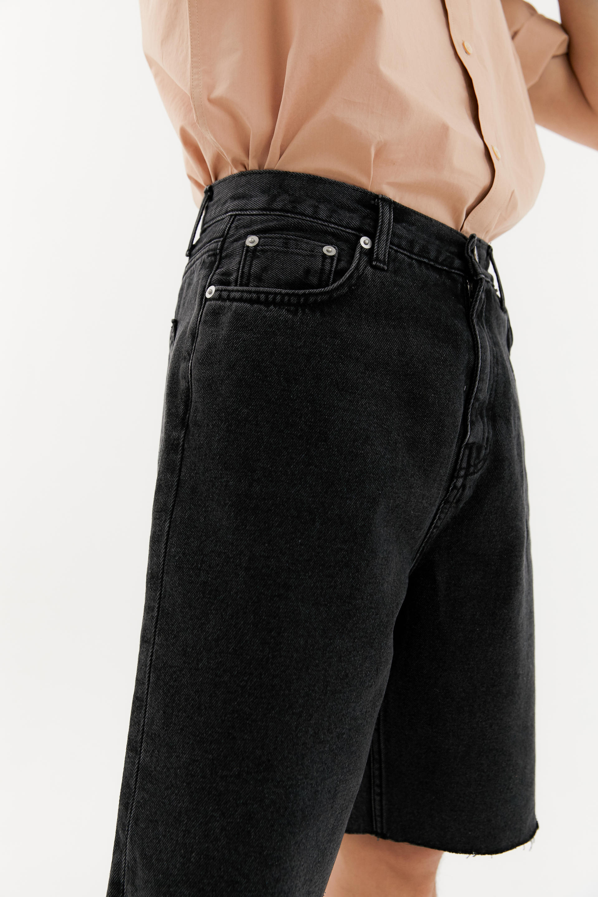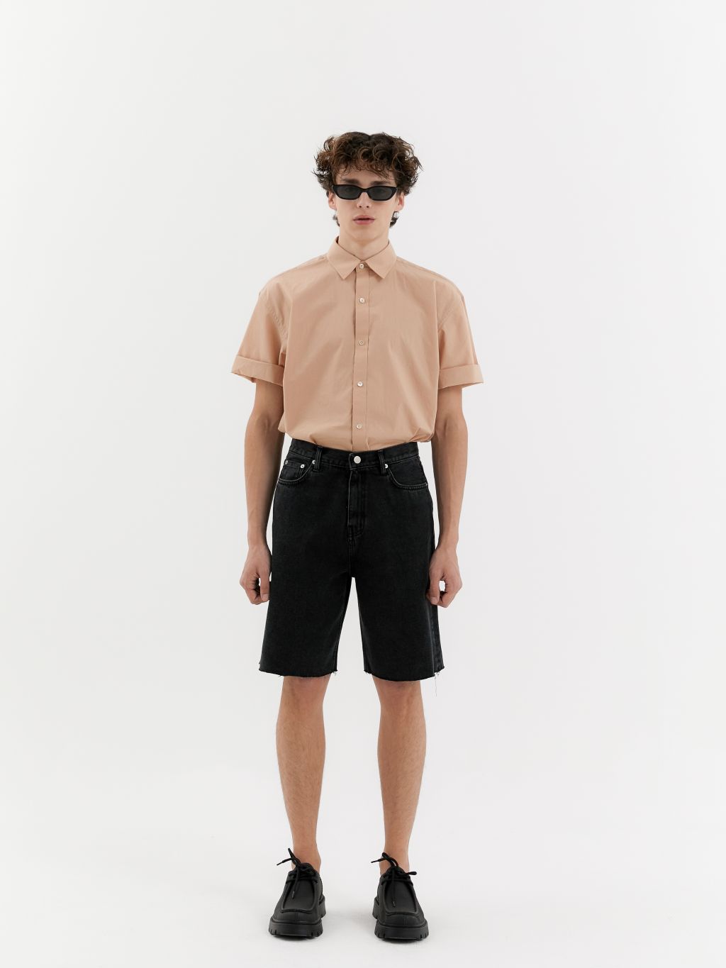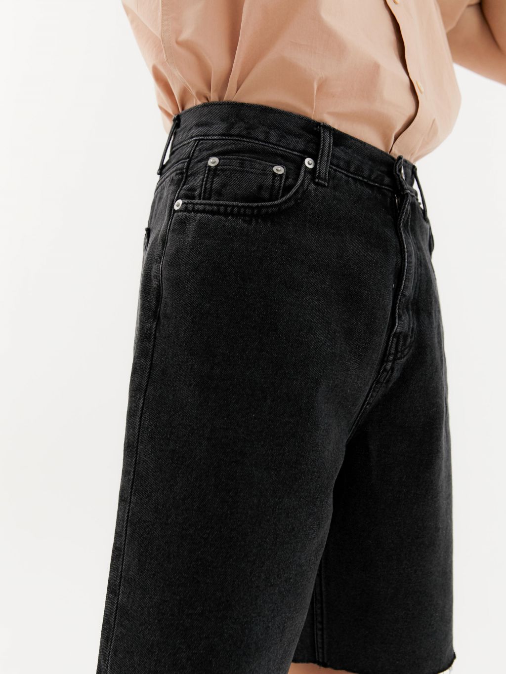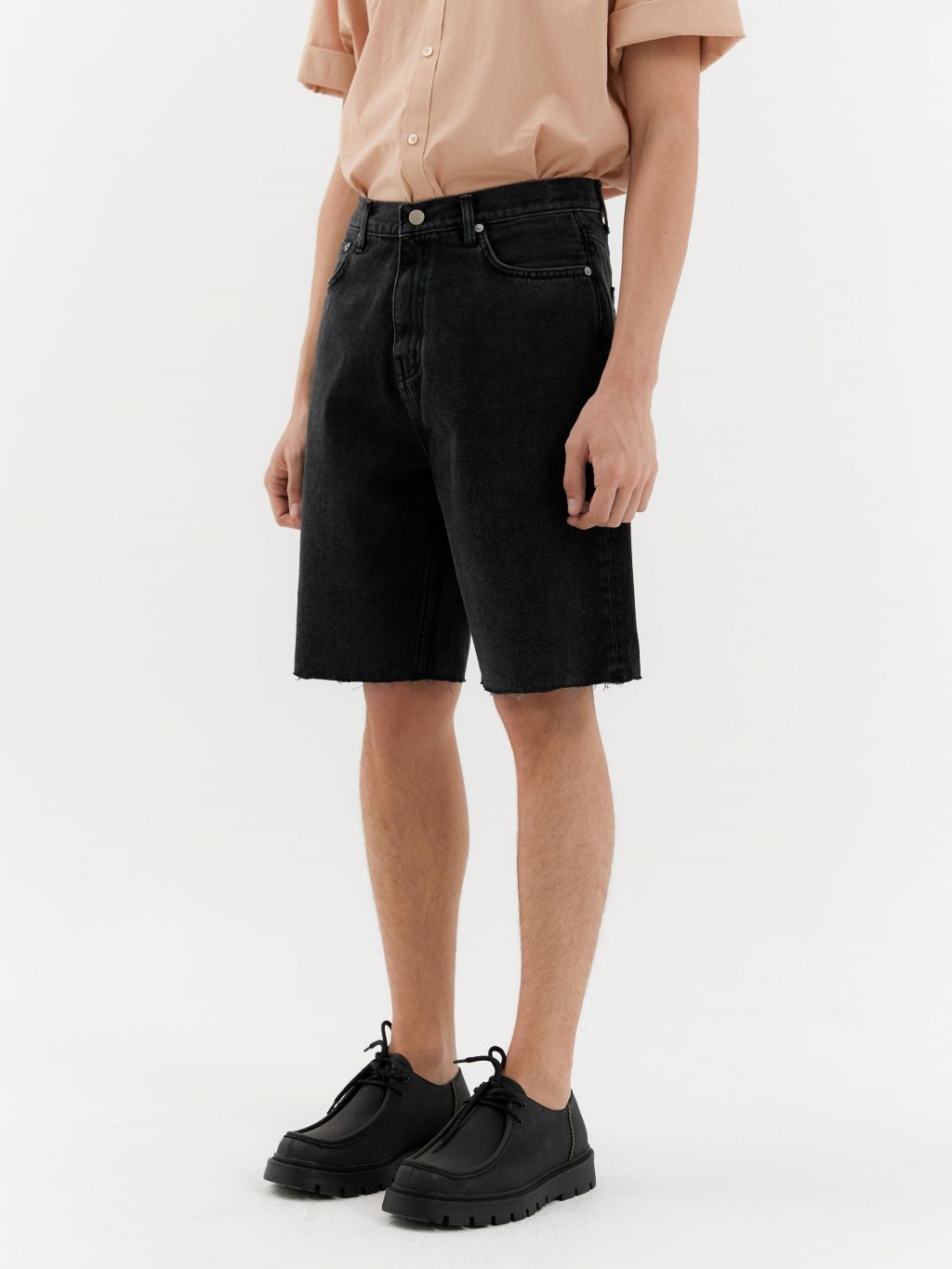 - 와이드 핏의 버뮤다 데님 반바지 - YKK 社의 지퍼, 리벳 - LABEL 로고가 각인된 고정식 켄톤 - 30수 트윌 코튼 주머니감 - 코아사 봉사 |