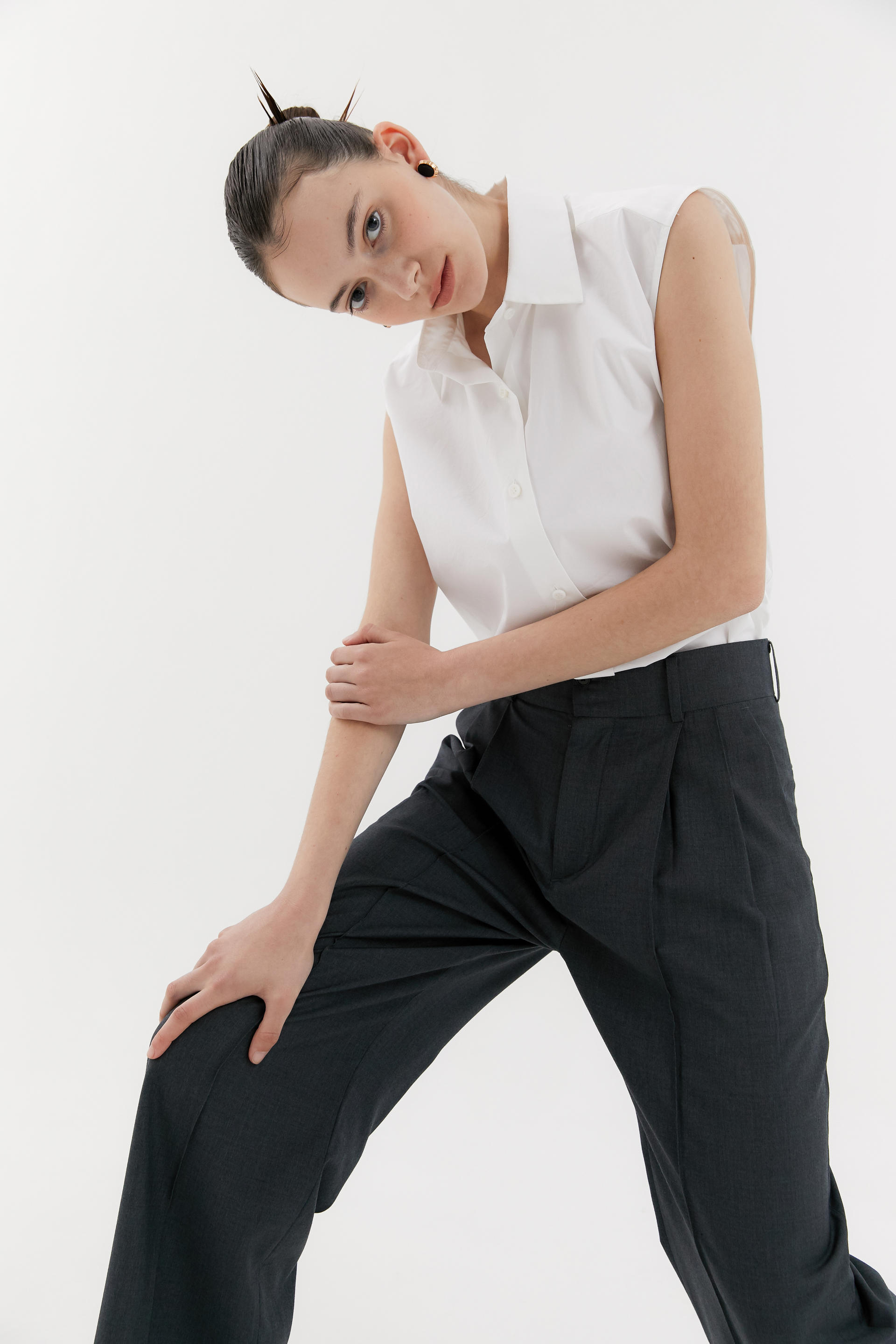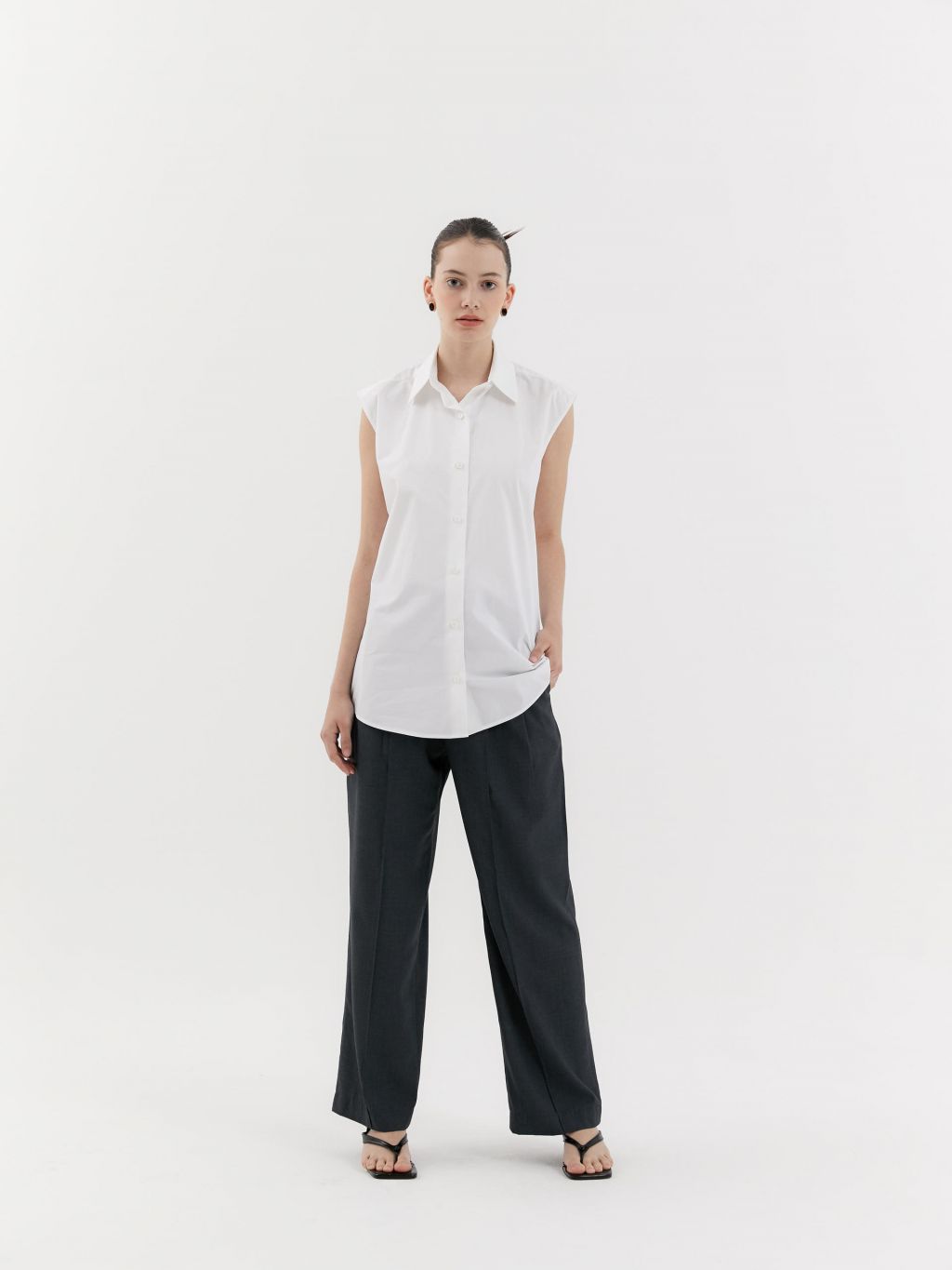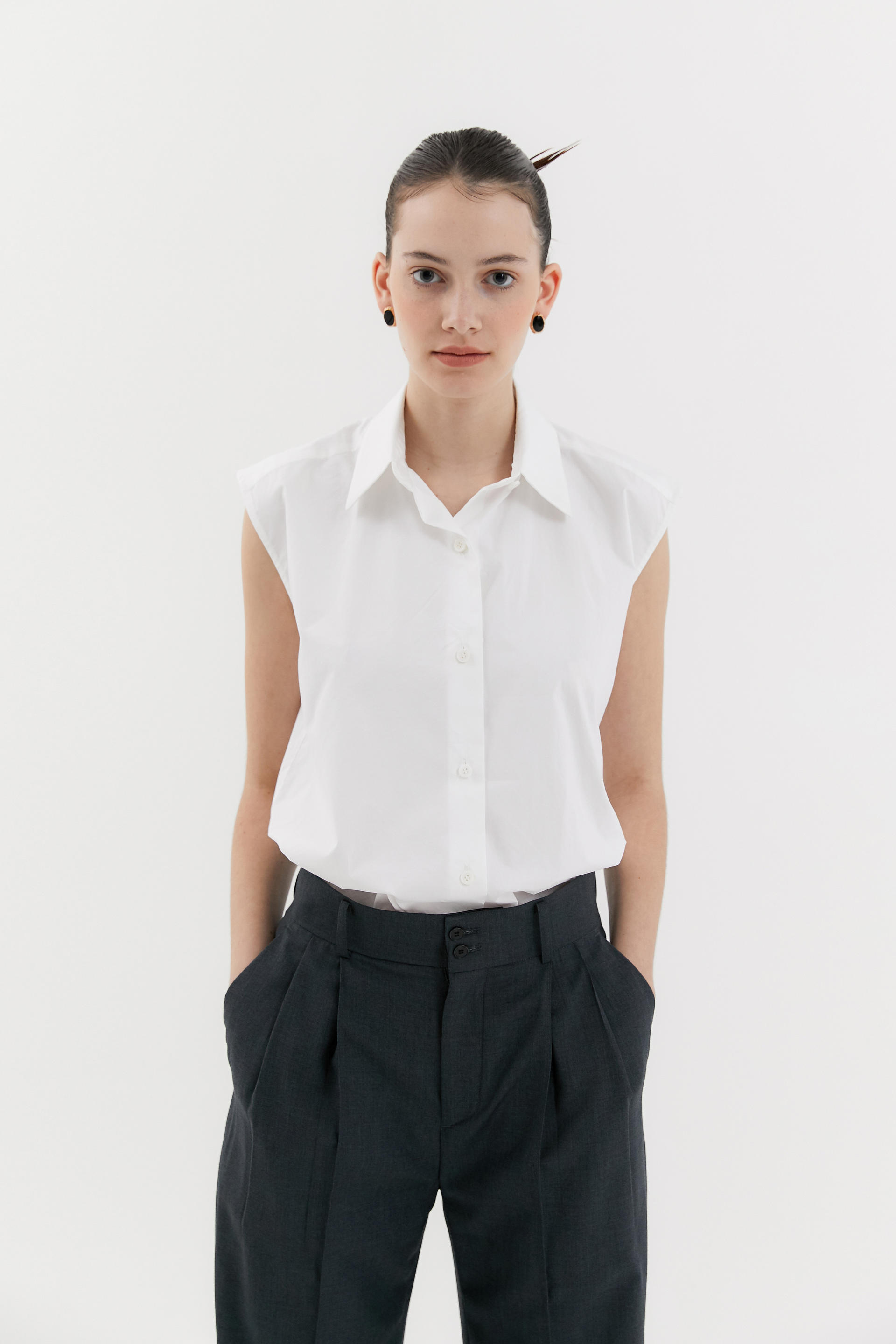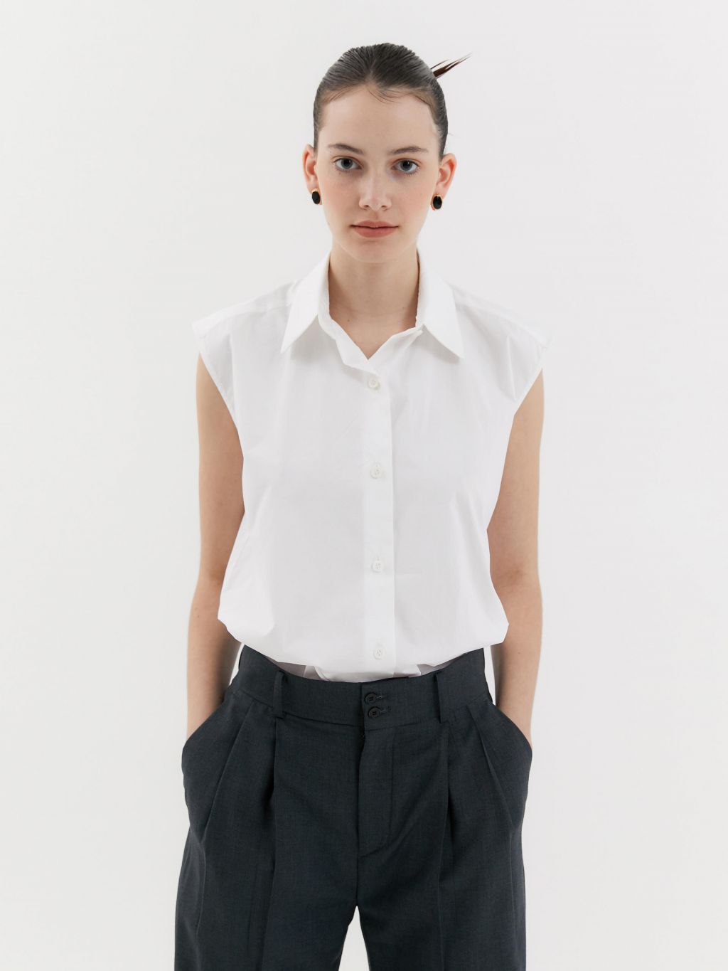 - 오버사이즈 핏 슬리브리스 셔츠 - 고퀄리티 봉제 방식으로 제작 - 고급 자개단추 사용 |