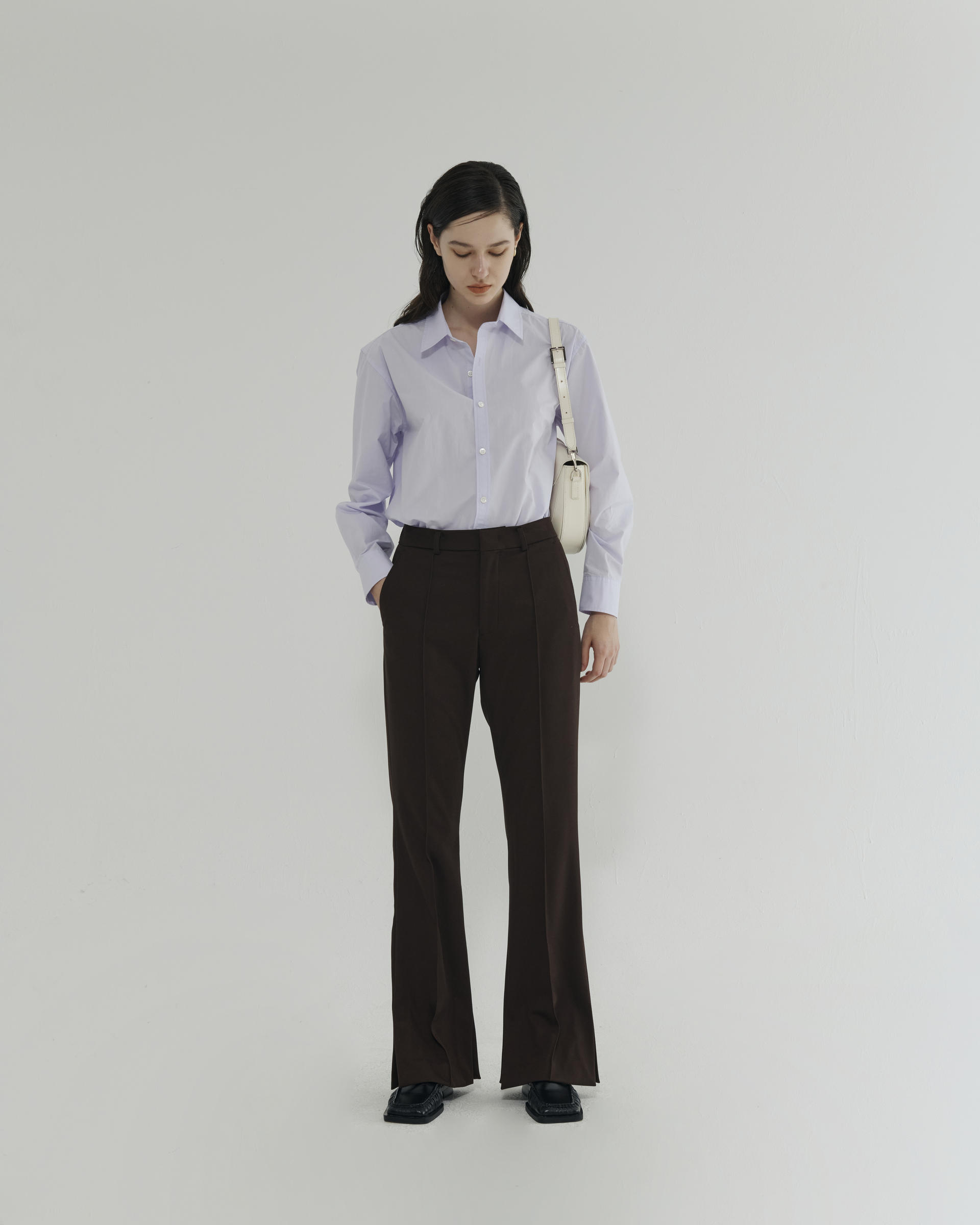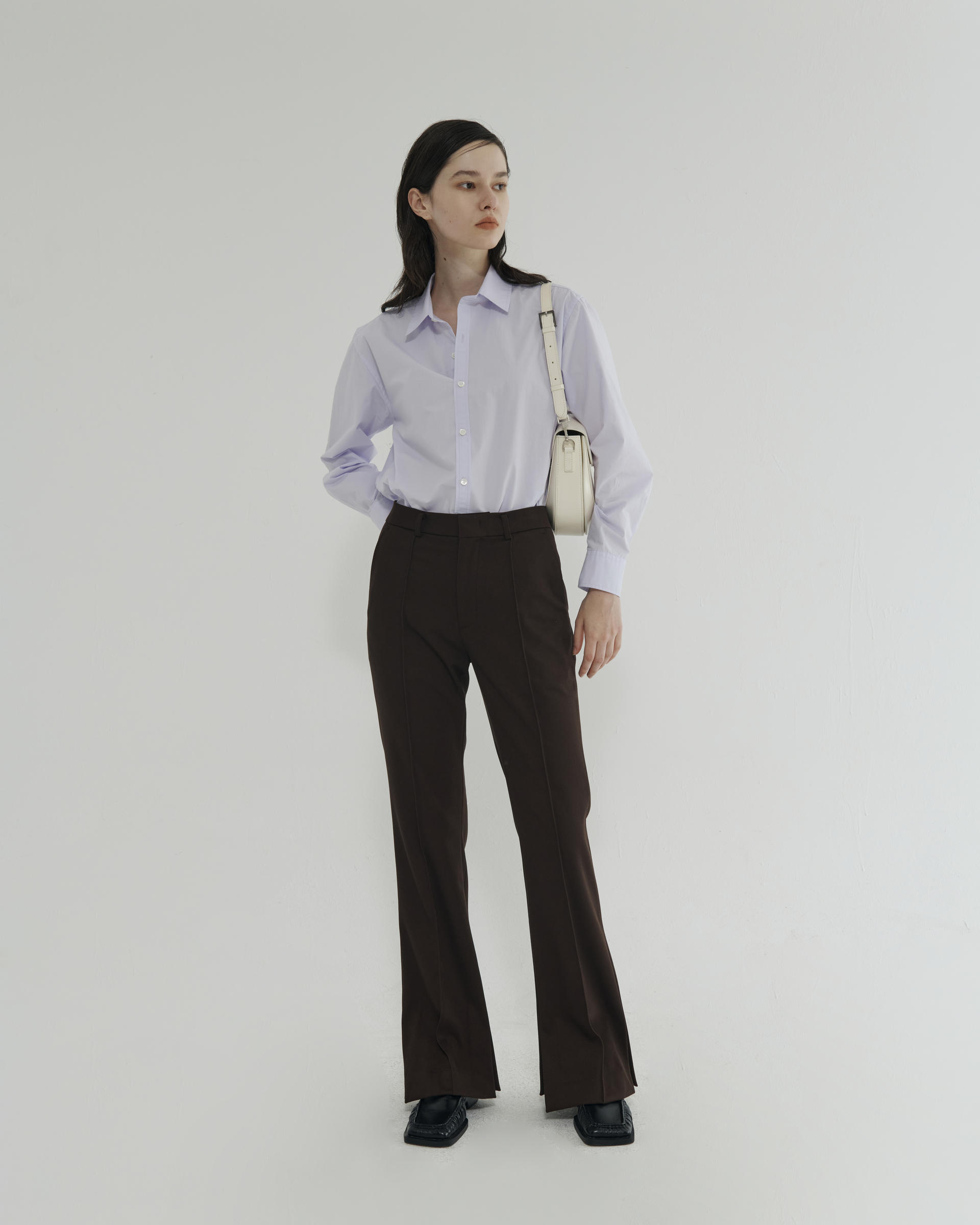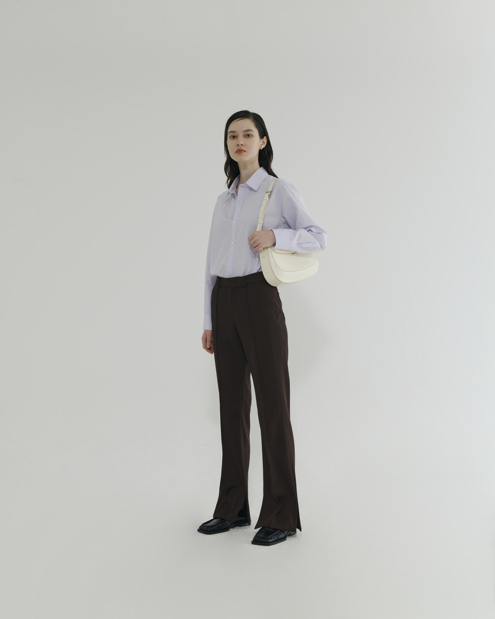 - 프론트 핀턱에 사이드 슬릿 디테일을 더한 롱앤린 실루엣