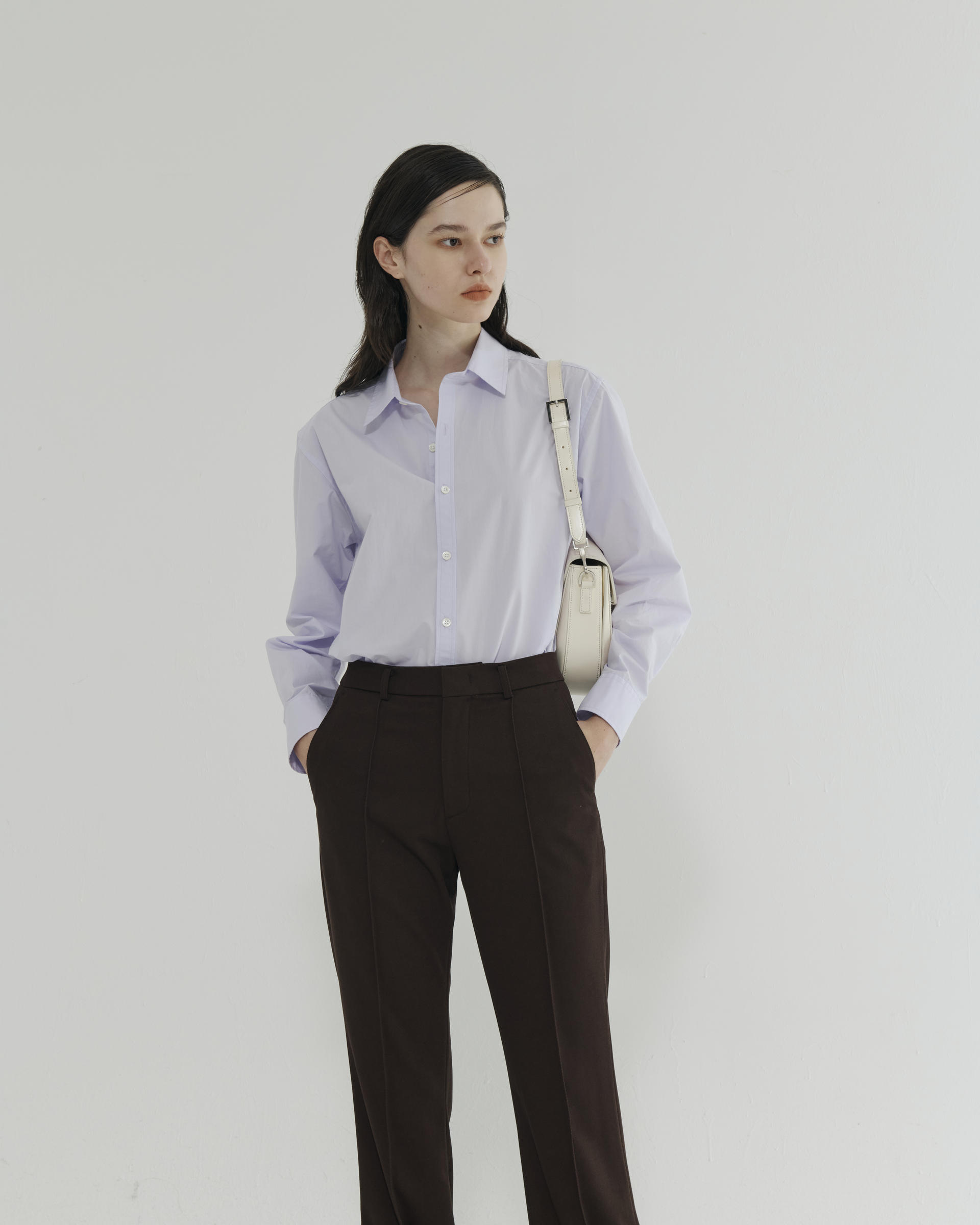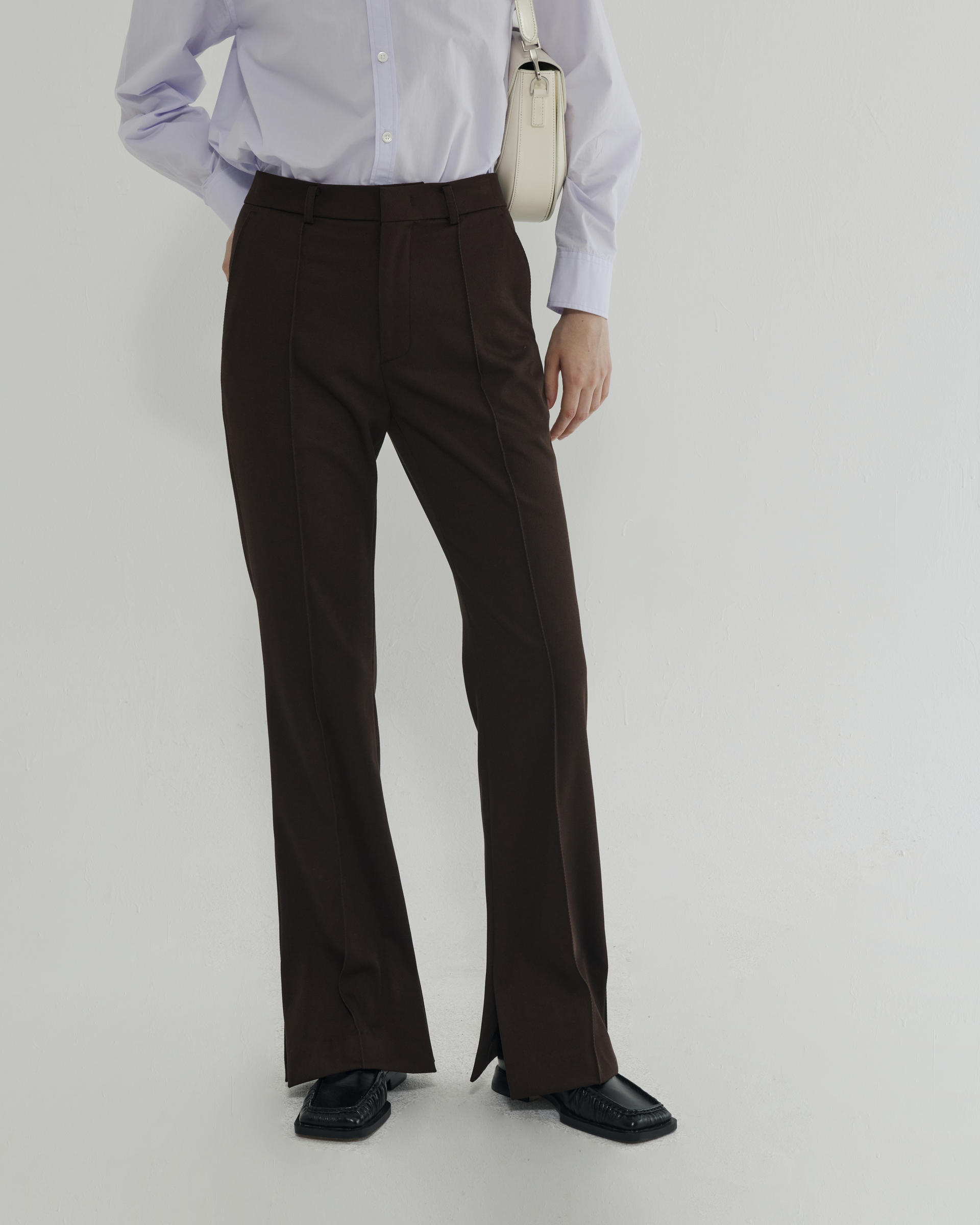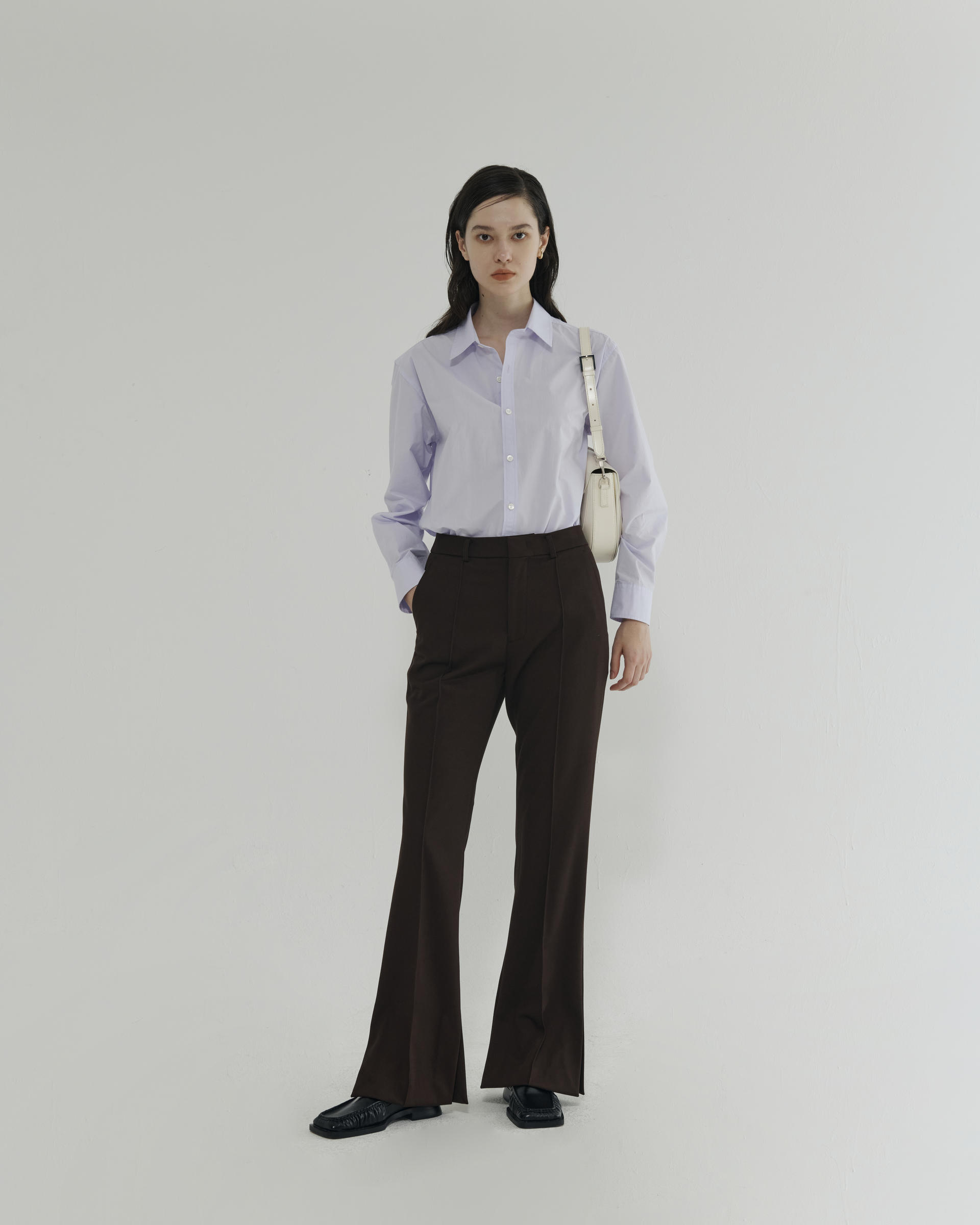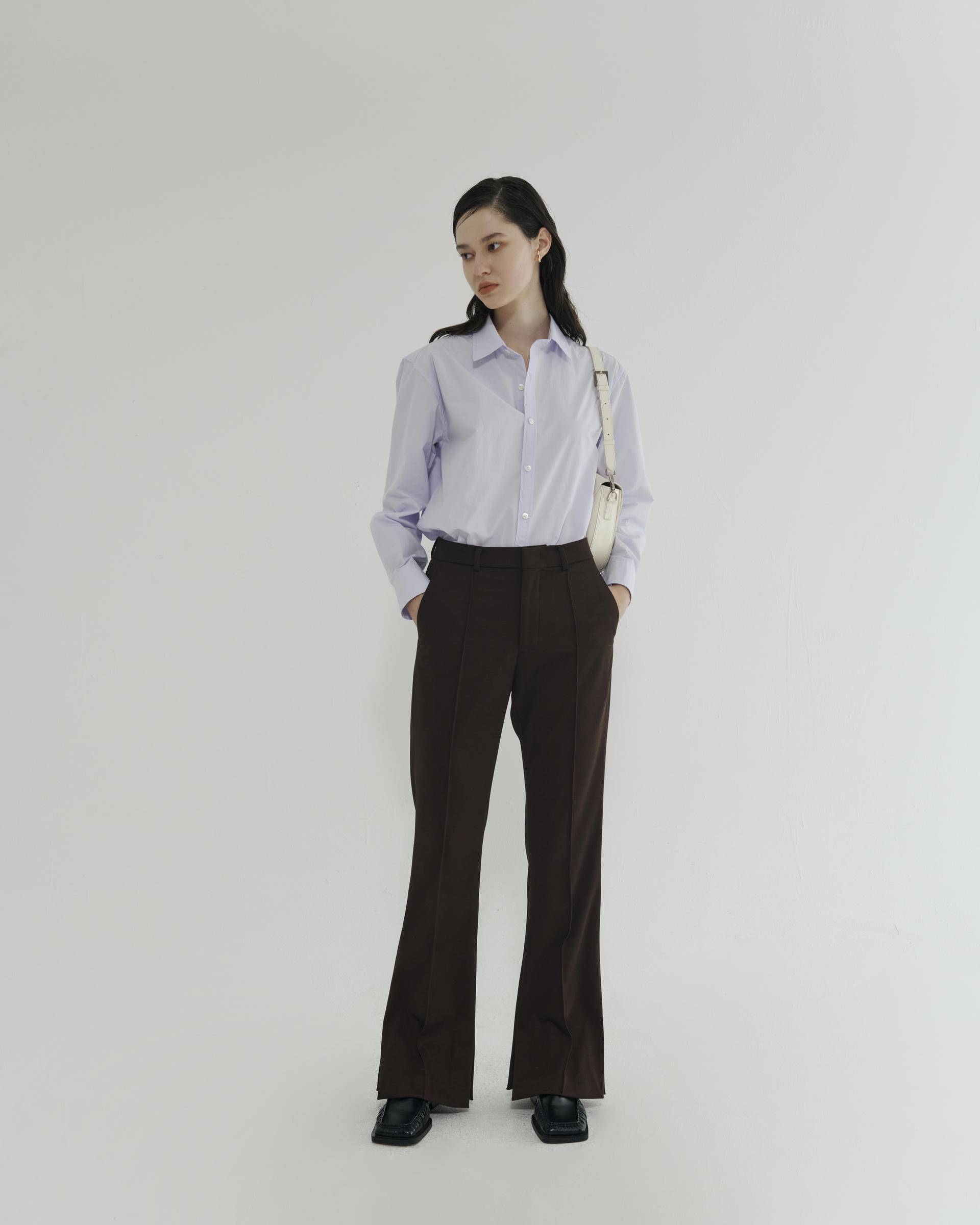 - 프론트 핀턱에 사이드 슬릿 디테일을 더한 롱앤린 실루엣