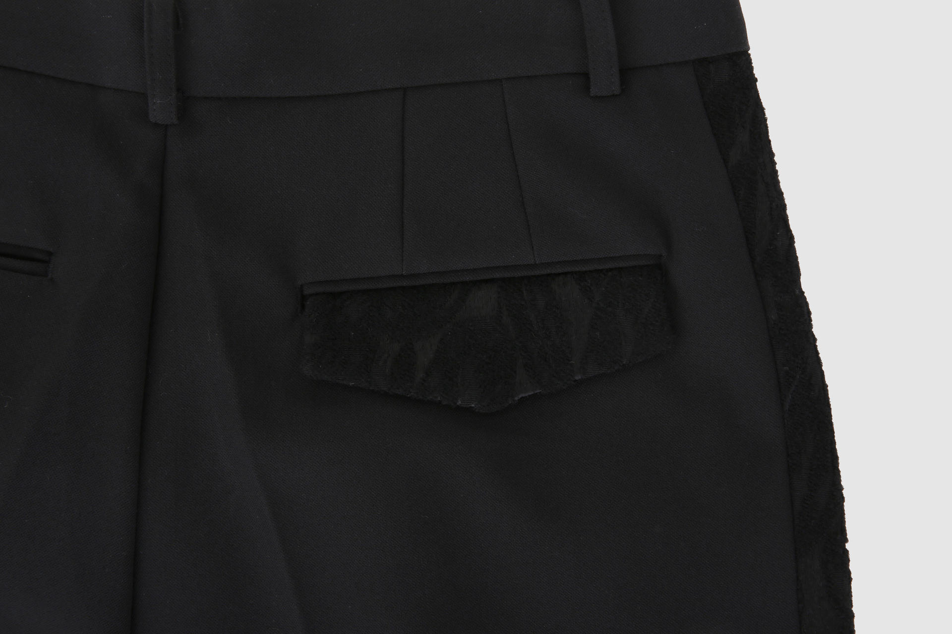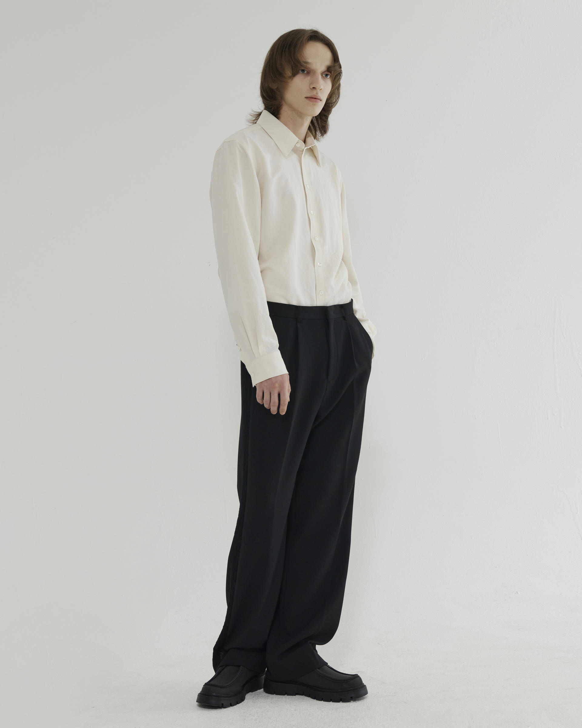 body : polyester 68% rayon 30% span 2% trim : wool 57% nylon 43% 고중량의 힘있는 소재와 원톤의 자카드 소재를 배색하여 감도 높은 슬랙스 팬츠를 완성하였습니다. |