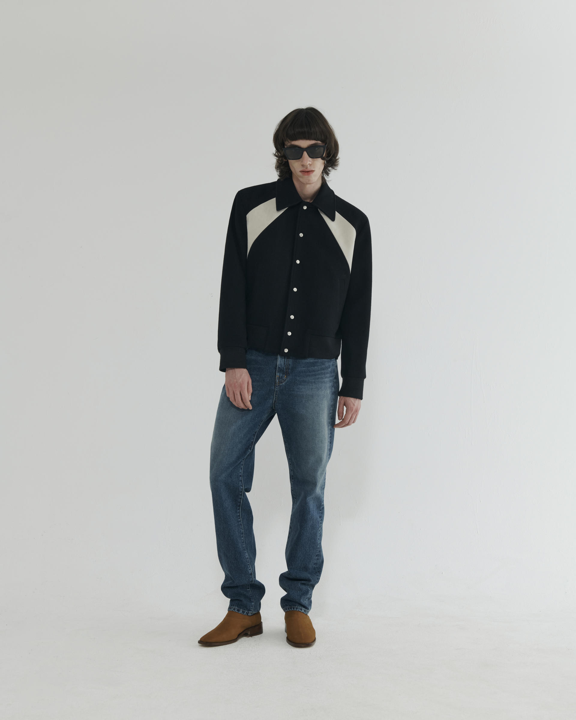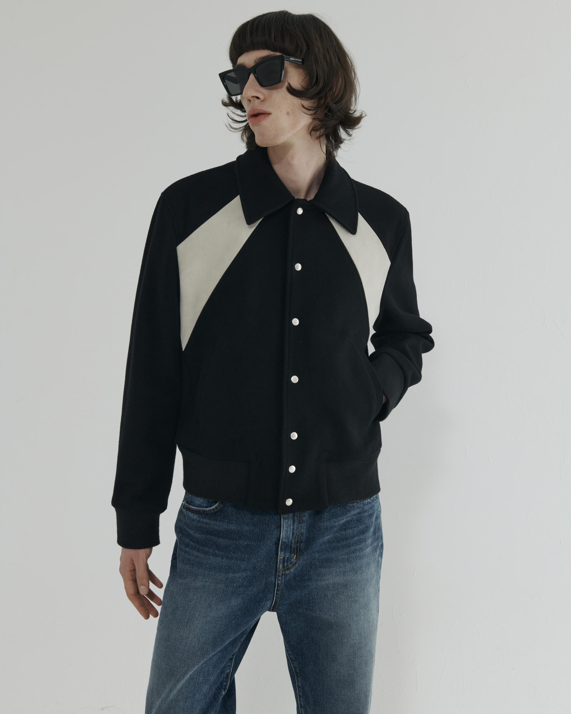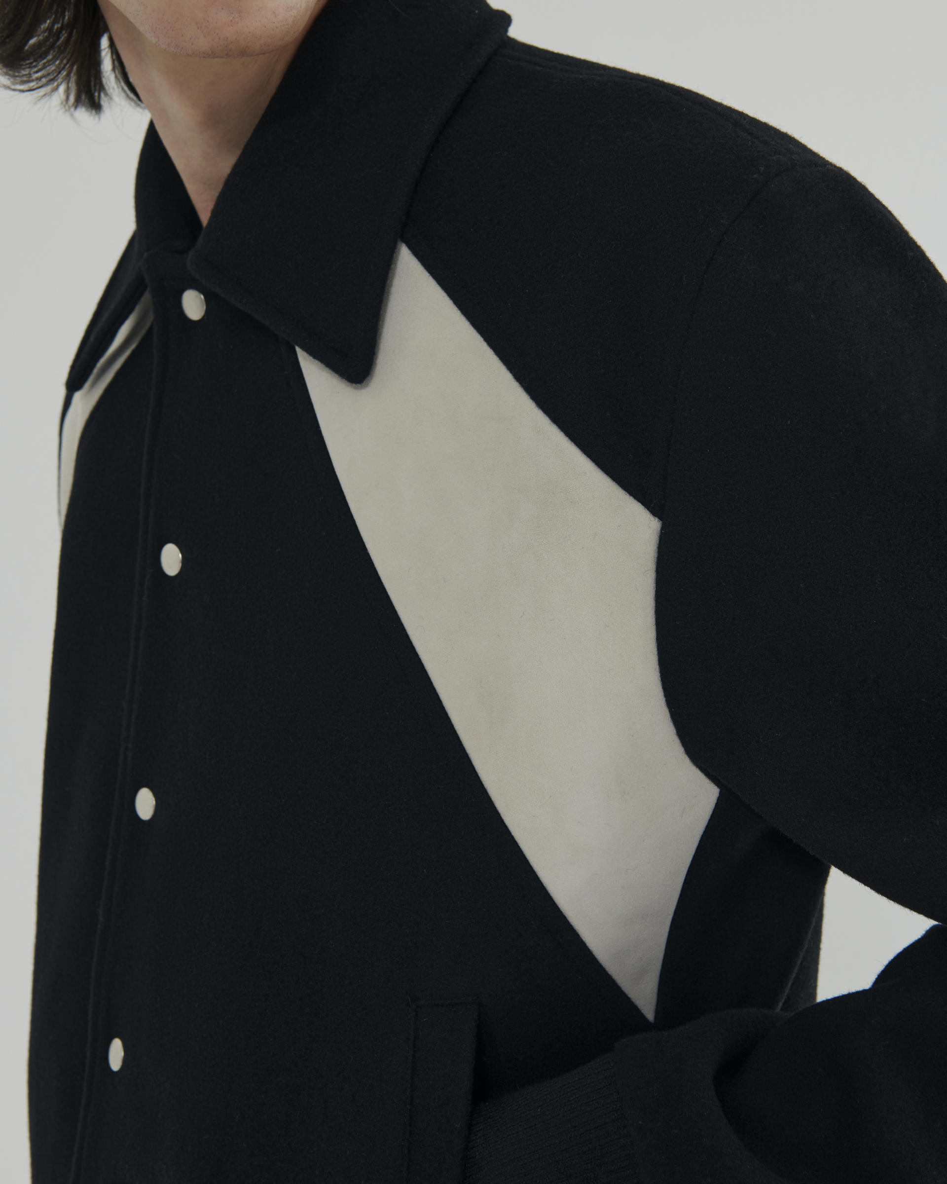프론트에 리얼 스웨이드의 배색으로 유니크하고 고급스러운 분위기를 연출합니다.