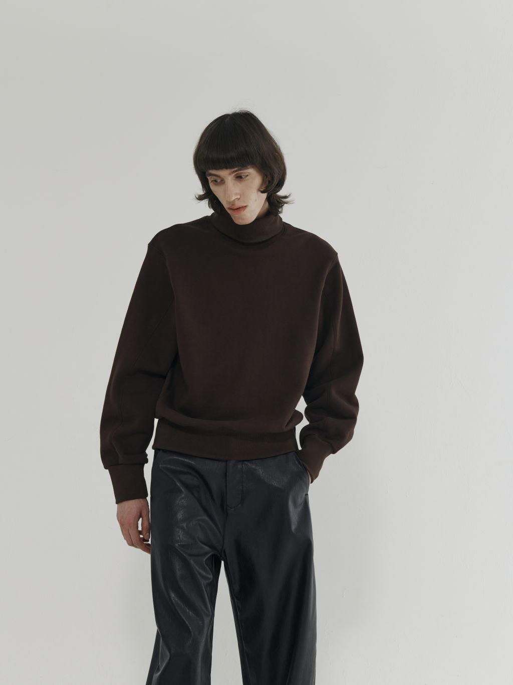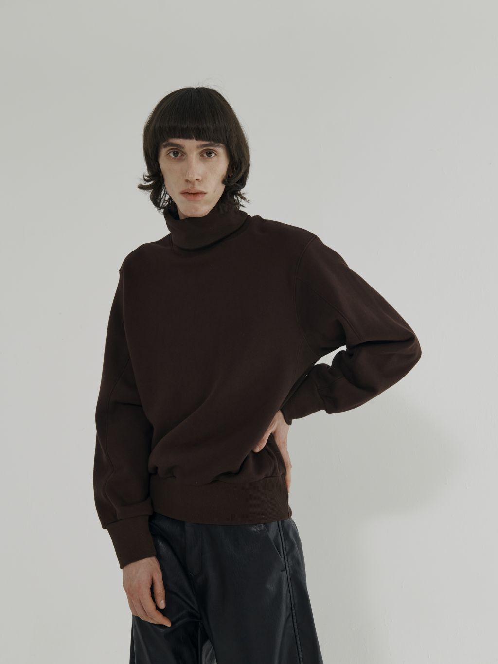 - 루즈핏 하이넥 스웻셔츠 - 탄탄한 짜임의 원단 - 두장소매 패턴으로 커프드한 소매 실루엣 |