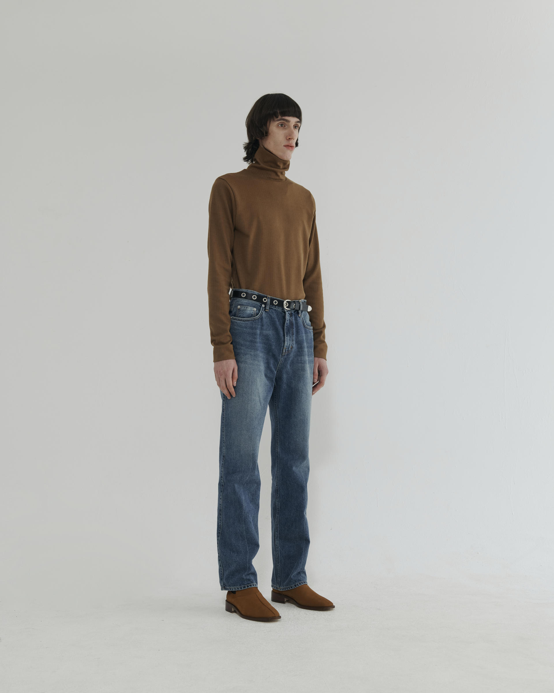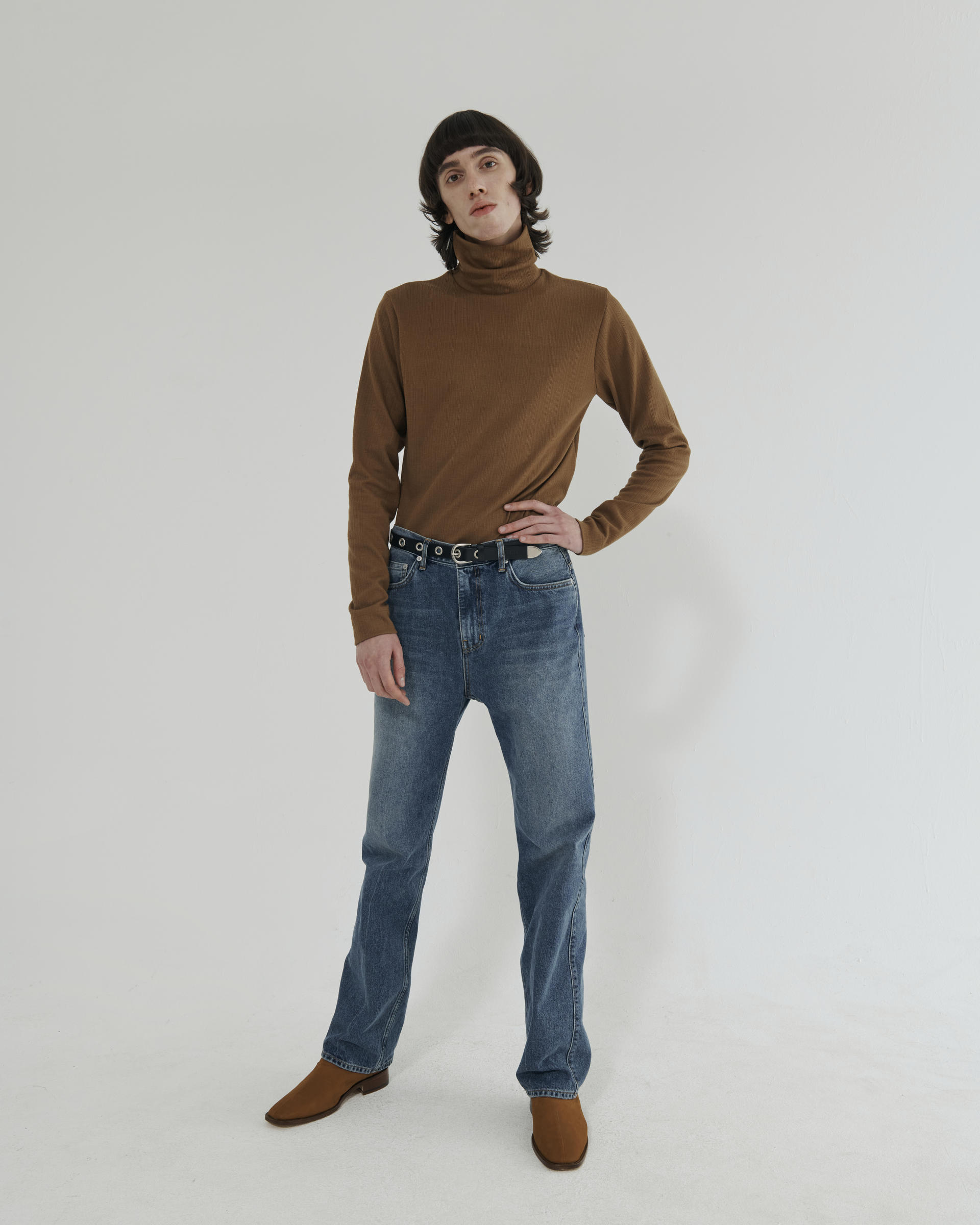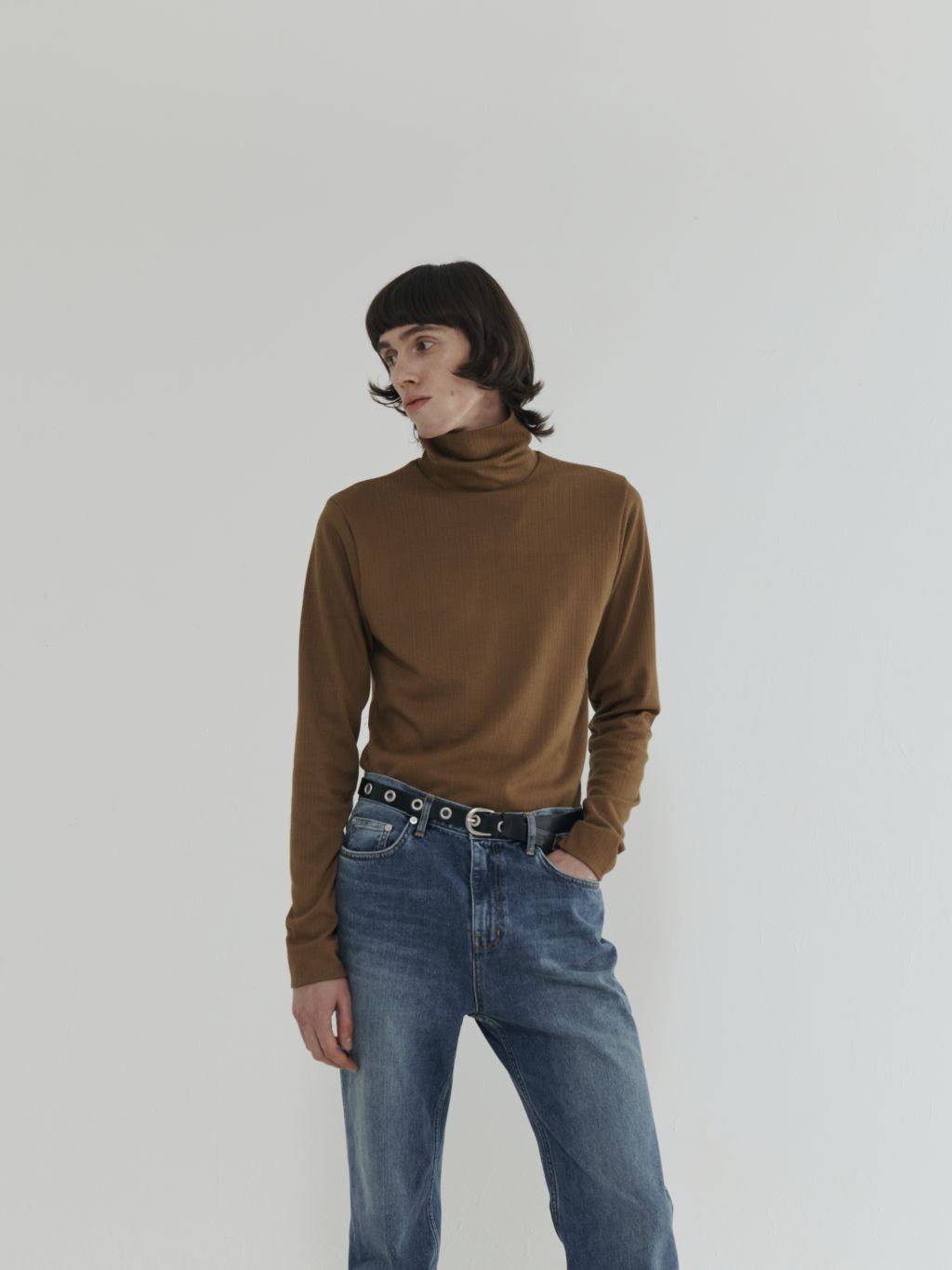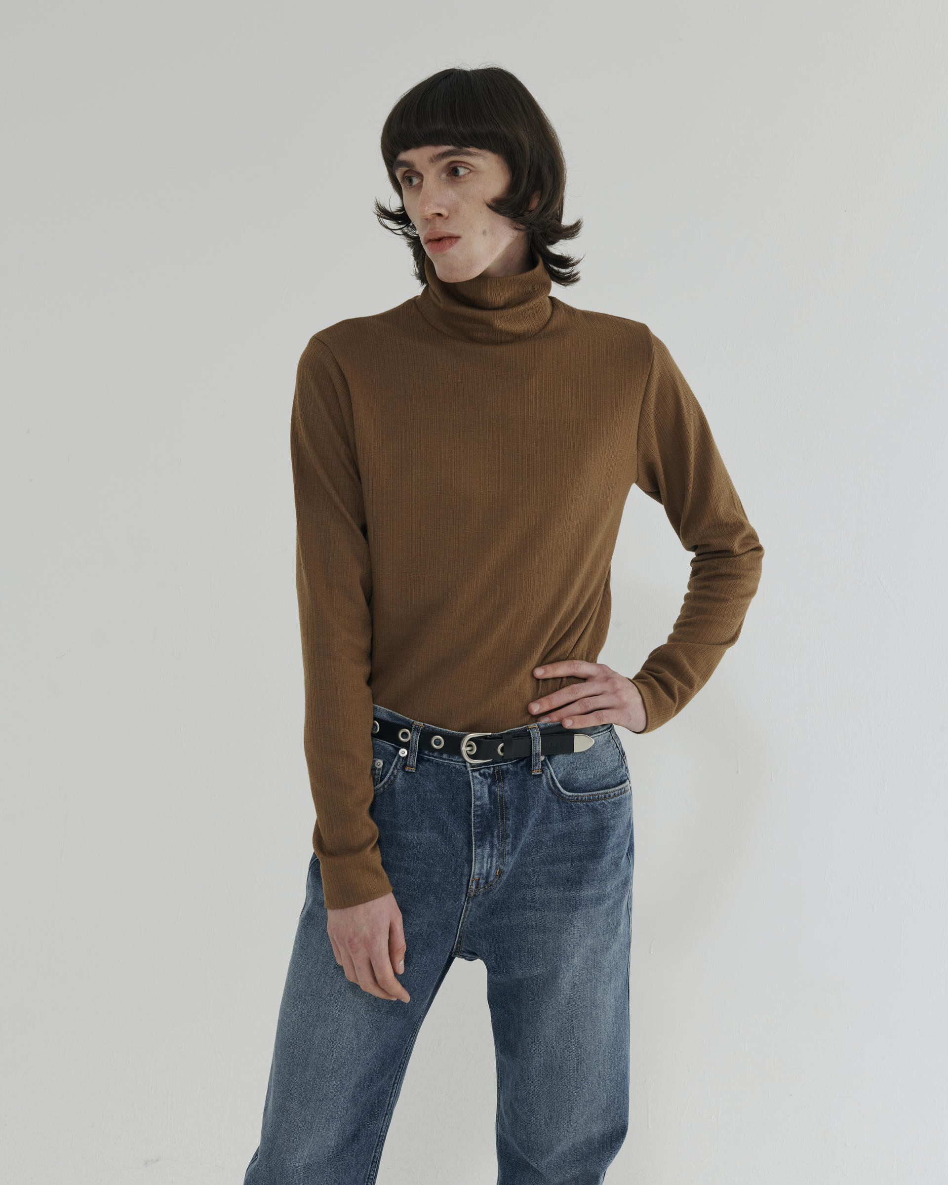 - 슬림 핏의 롤넥 탑 - 특수 가공처리로 부드러운 표면감의 텍스쳐 |