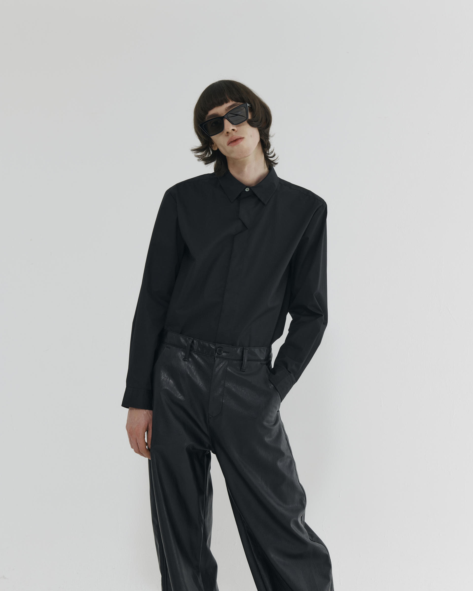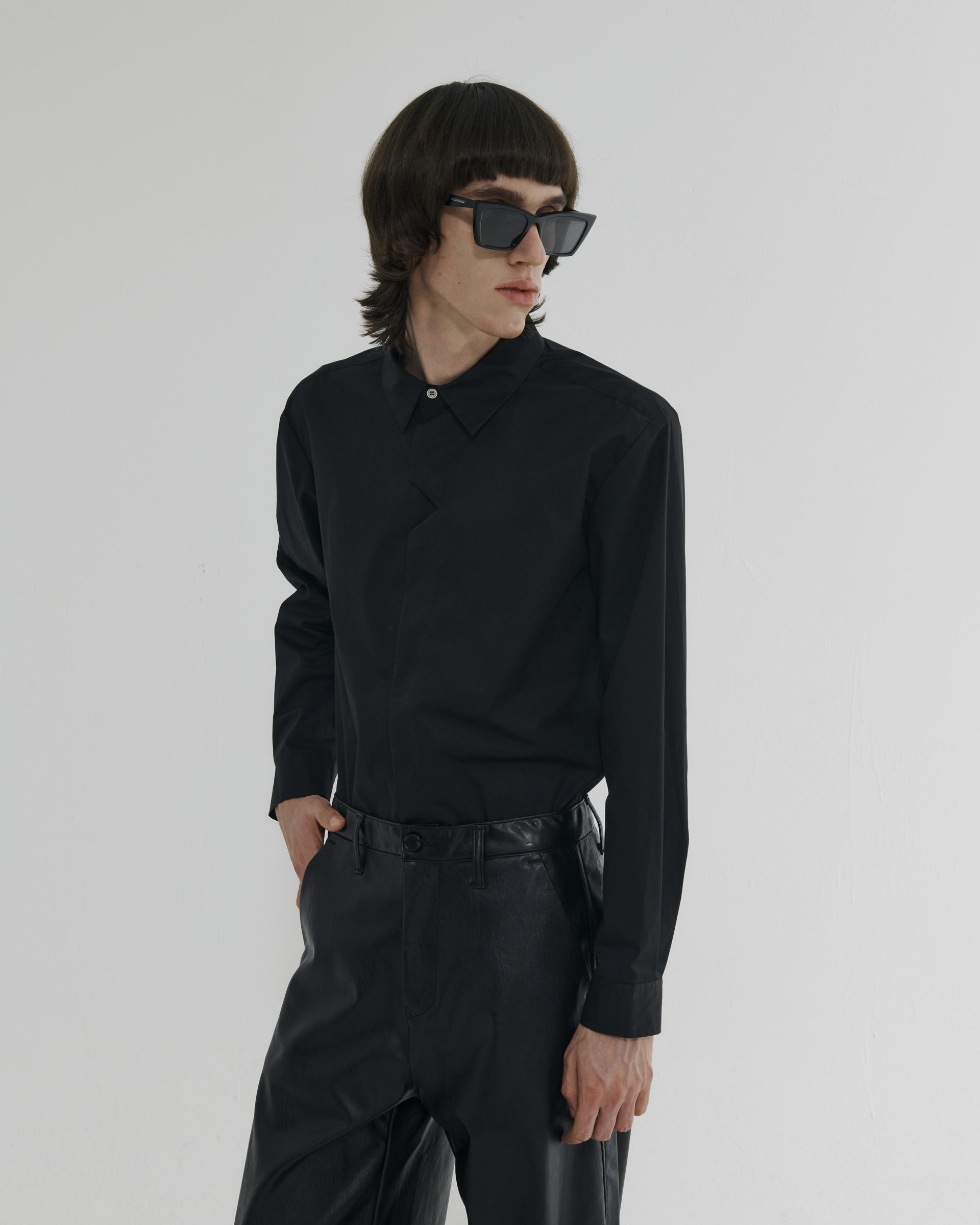 - 스탠다드 핏 셔츠 - 앞중심 삼각 디테일 - 고퀄리티 봉제 방식으로 제작 - 내부 통솔 봉제 - 히든 버튼 |