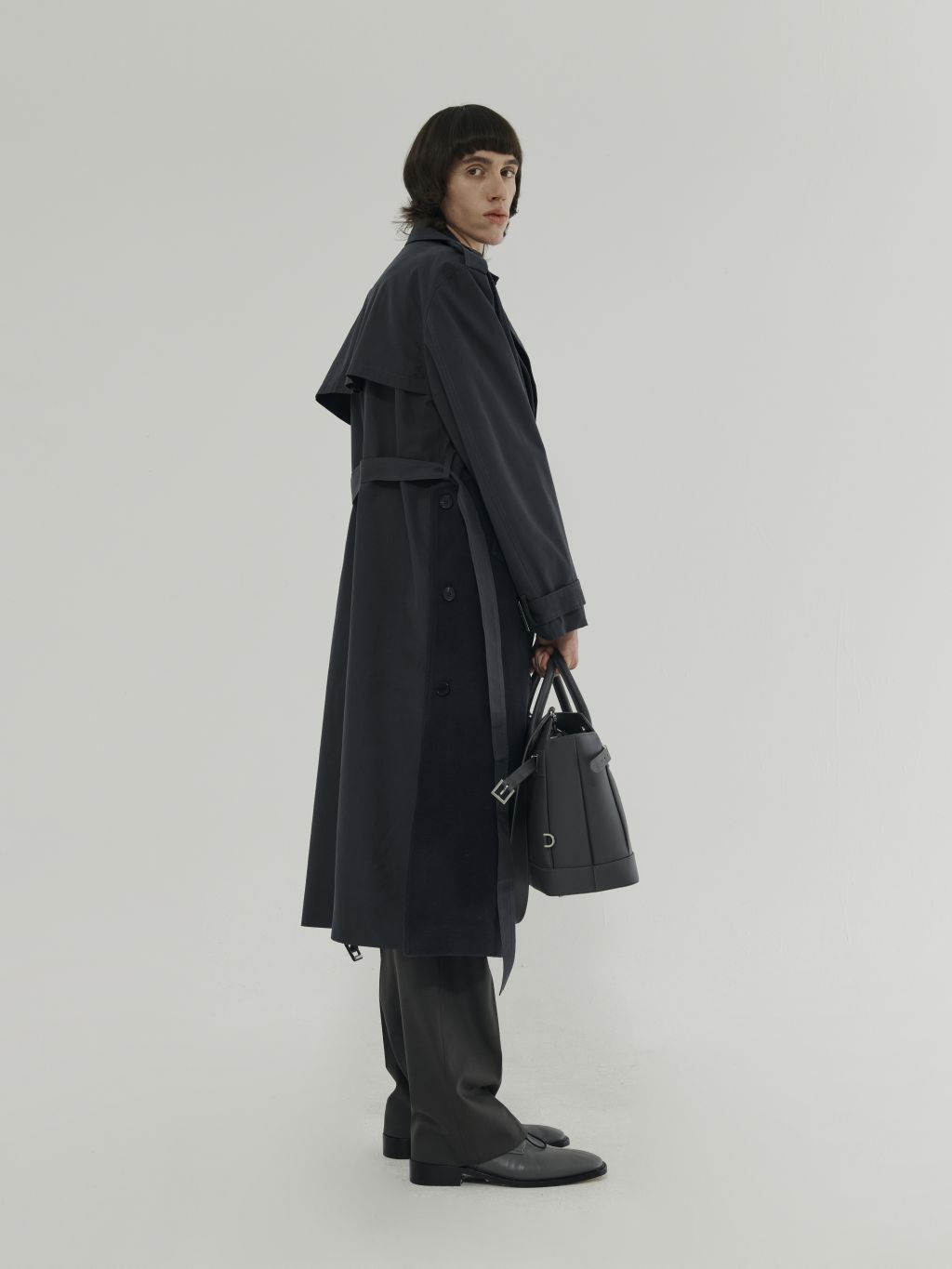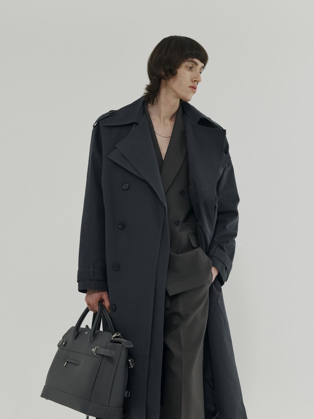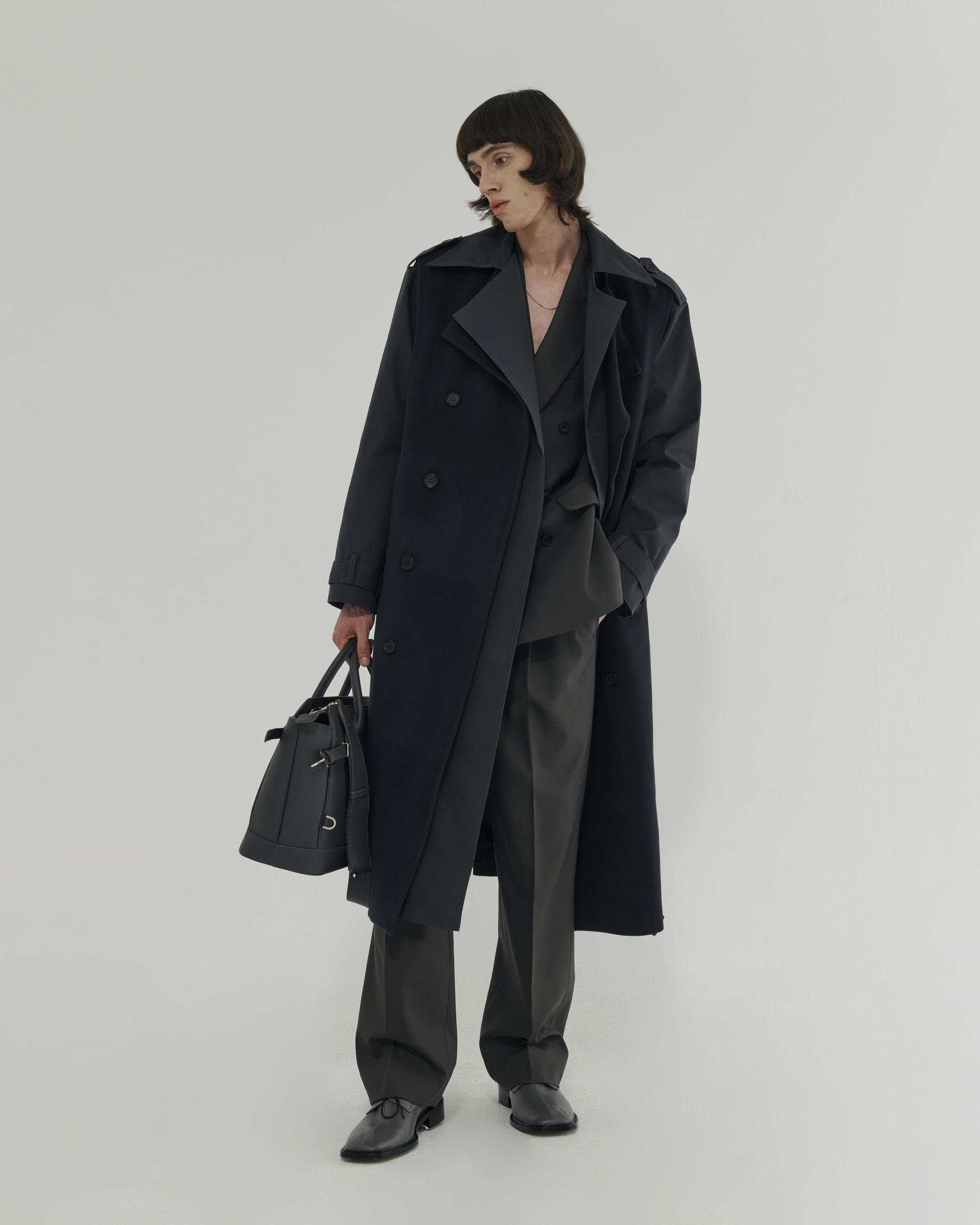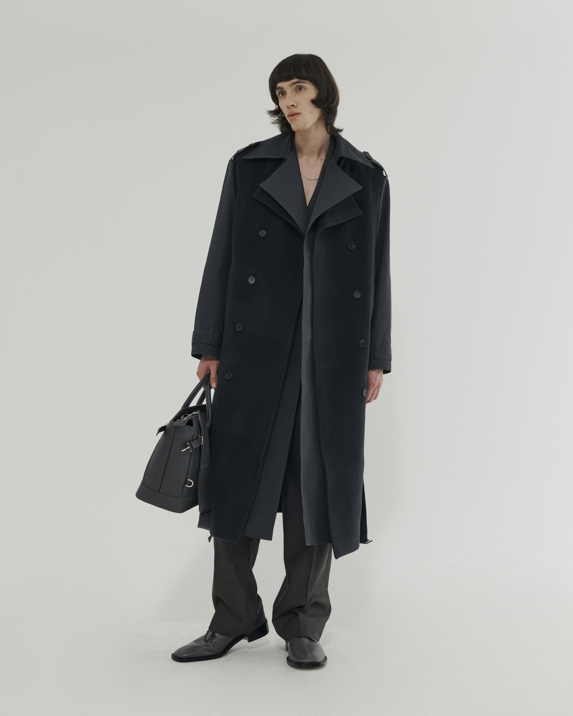 - 루즈핏 레이어드 트렌치 코트 - 트렌치 코트와 앞부분이 동일하게 제작된 덧장이 레이어드된 더블 패치 디자인 - 더블 브레스티드 버튼 클로징 고퀄리티 봉제 방식으로 제작 천연 소뿔 단추 사용 안감 전체 로고 음각된 자체 제작 원단 사용 어깨 견장과 옆선 단추로 탈부착이 가능한 덧장이 포함되어 있습니다. 레이어드 덧장의 여밈에 따라 다양한 스타일링이 가능한 멋스러운 트렌치 코트 입니다. 레이어드 울 트렌치 덧장과도 착용이 가능한 멀티 레이어링 아이템 |