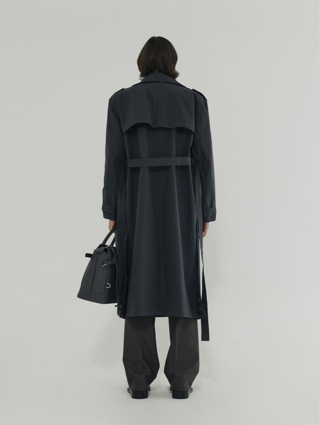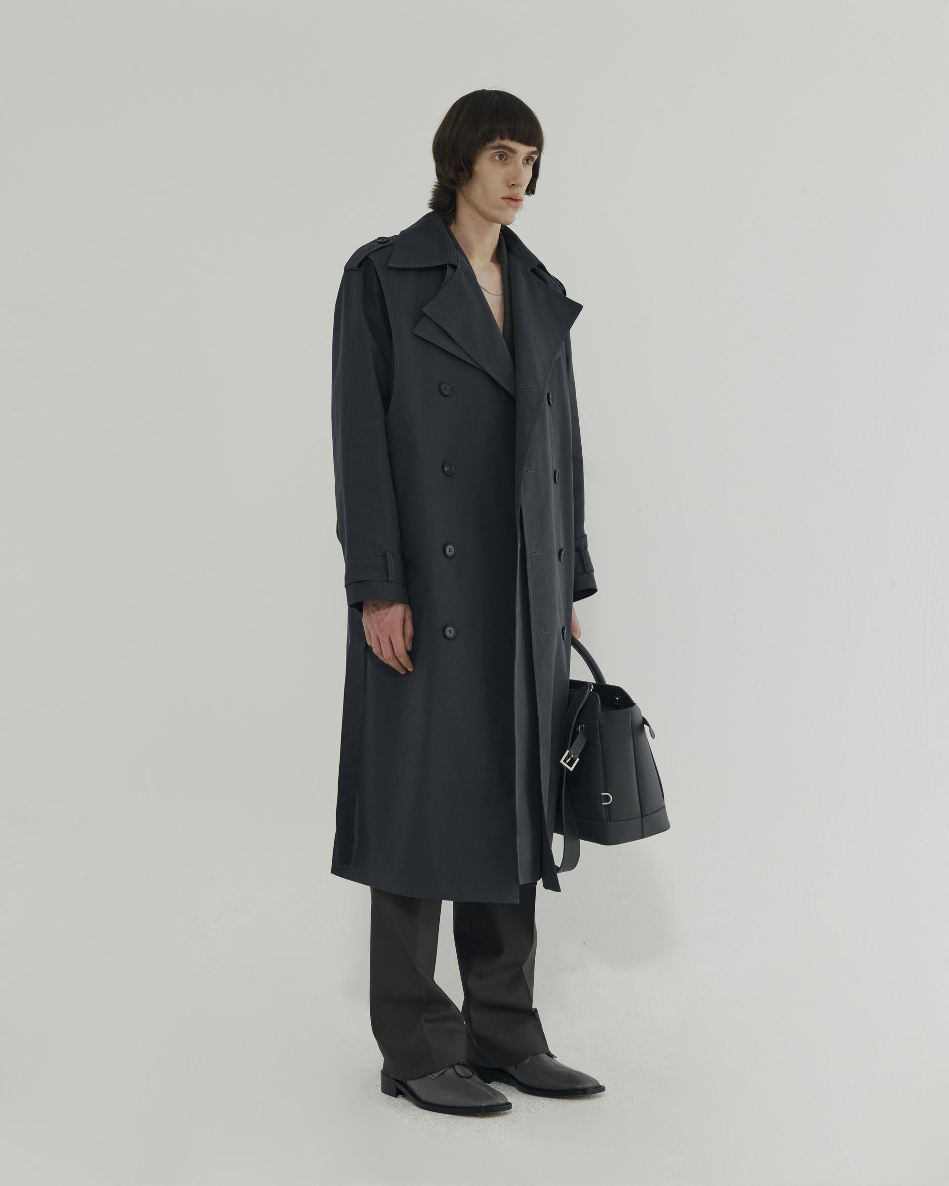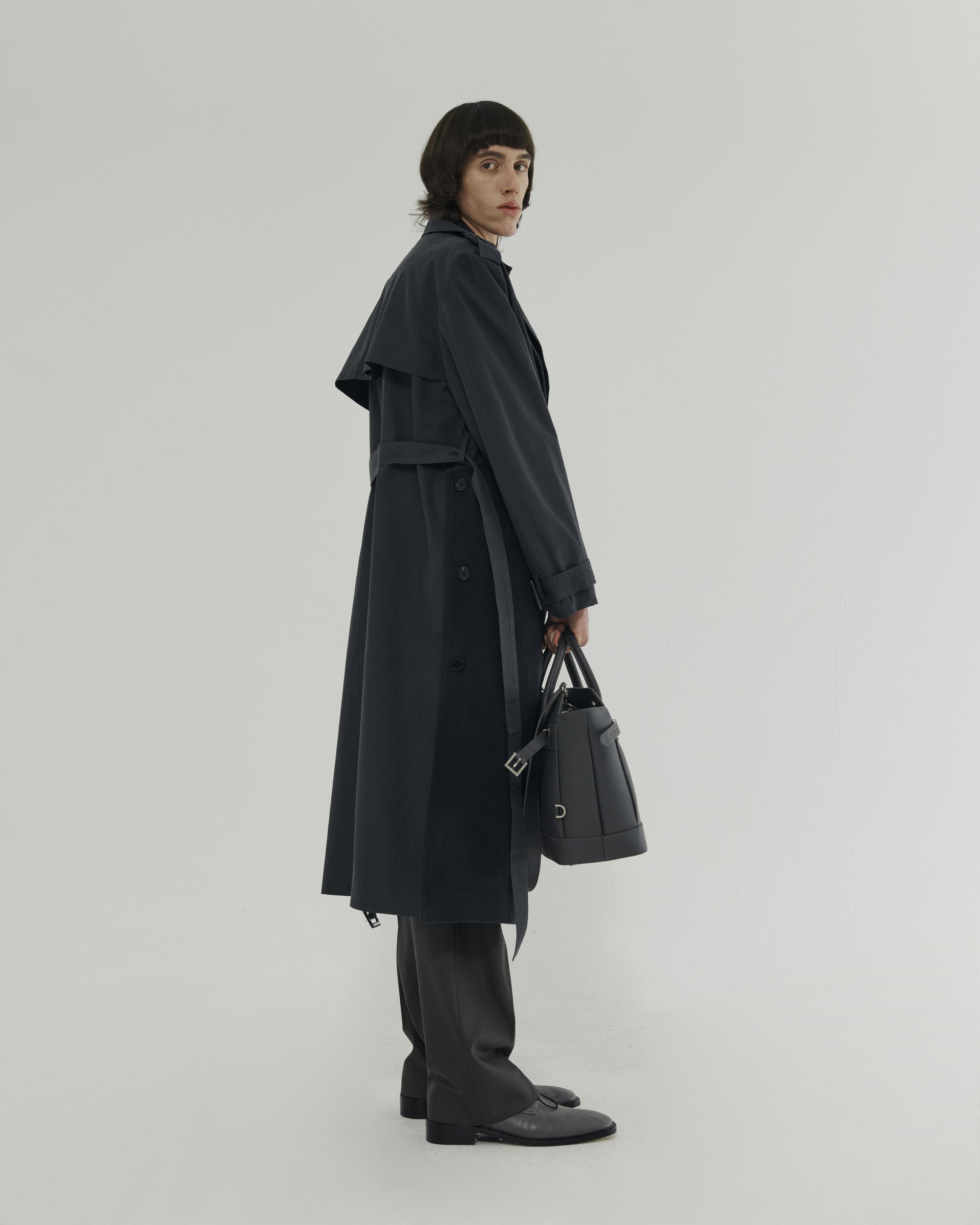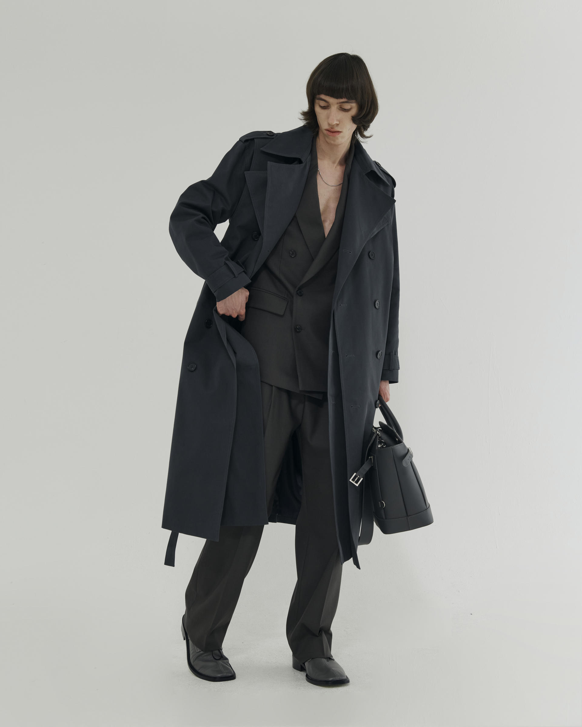 - 루즈핏 레이어드 트렌치 코트 - 트렌치 코트와 앞부분이 동일하게 제작된 덧장이 레이어드된 더블 패치 디자인 - 더블 브레스티드 버튼 클로징 고퀄리티 봉제 방식으로 제작 천연 소뿔 단추 사용 안감 전체 로고 음각된 자체 제작 원단 사용 어깨 견장과 옆선 단추로 탈부착이 가능한 덧장이 포함되어 있습니다. 레이어드 덧장의 여밈에 따라 다양한 스타일링이 가능한 멋스러운 트렌치 코트 입니다. 레이어드 울 트렌치 덧장과도 착용이 가능한 멀티 레이어링 아이템 |