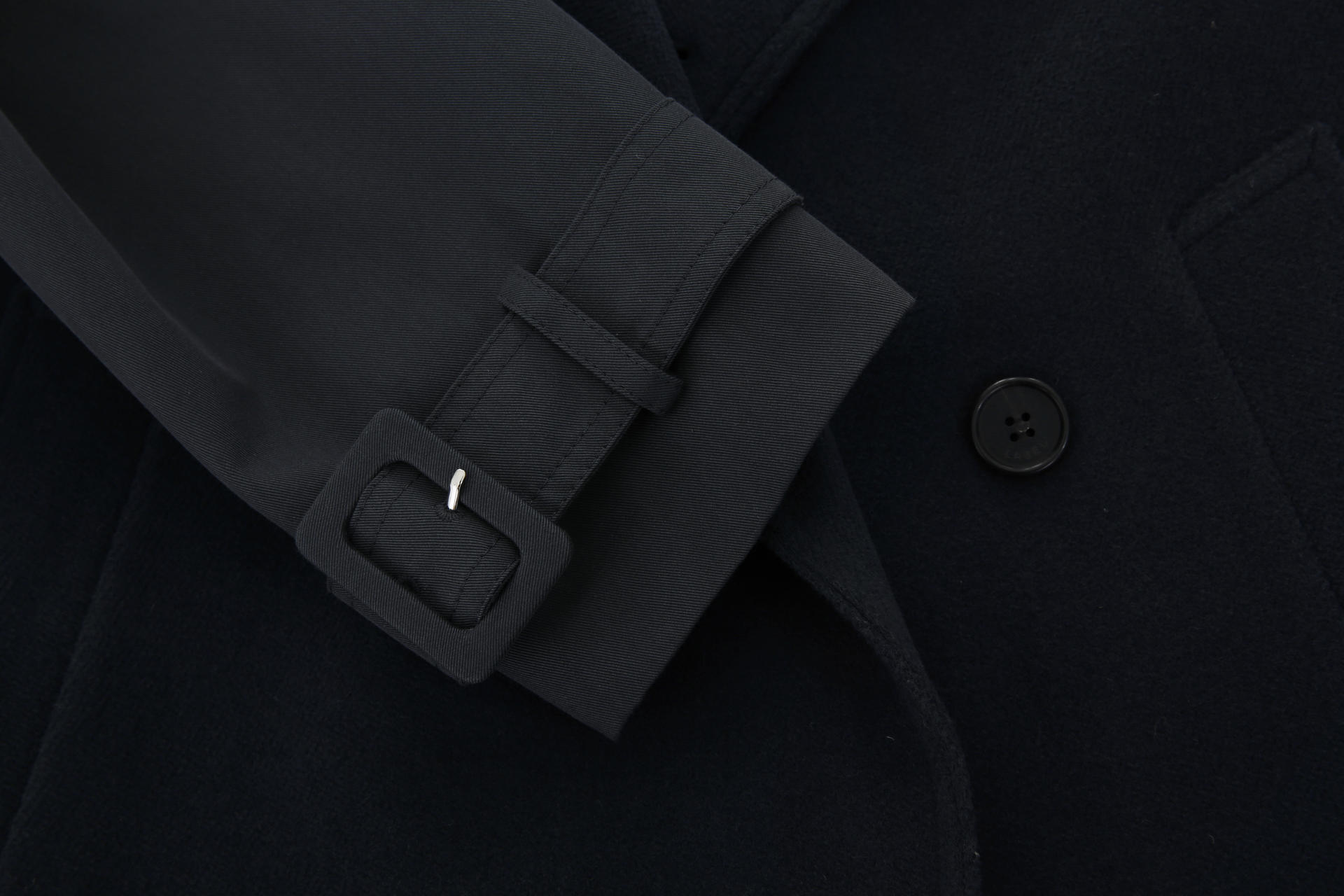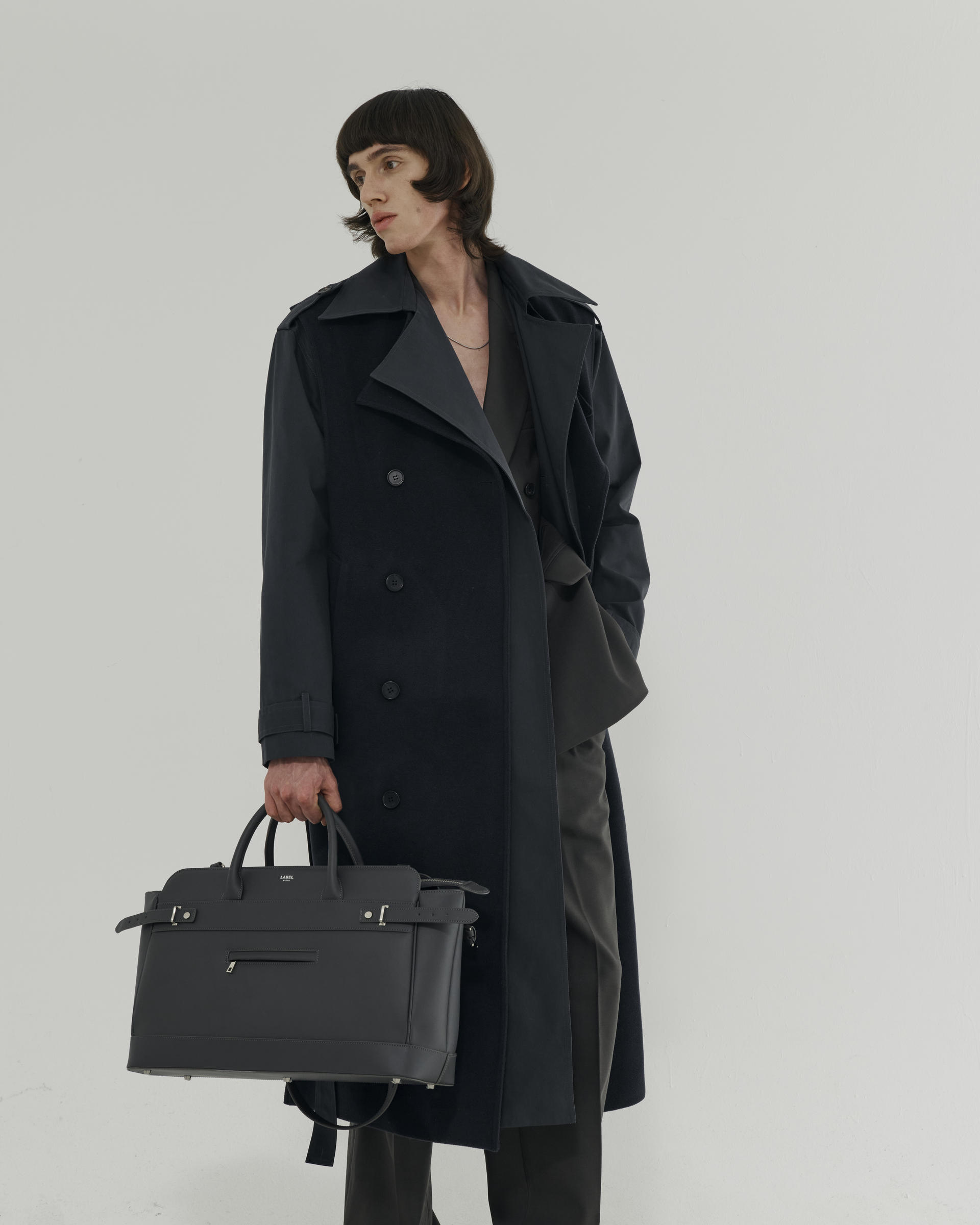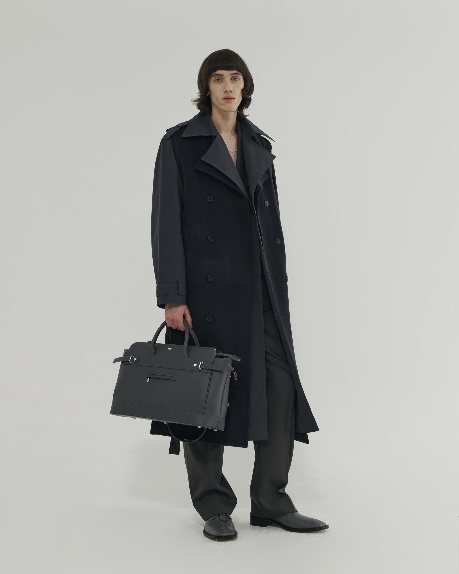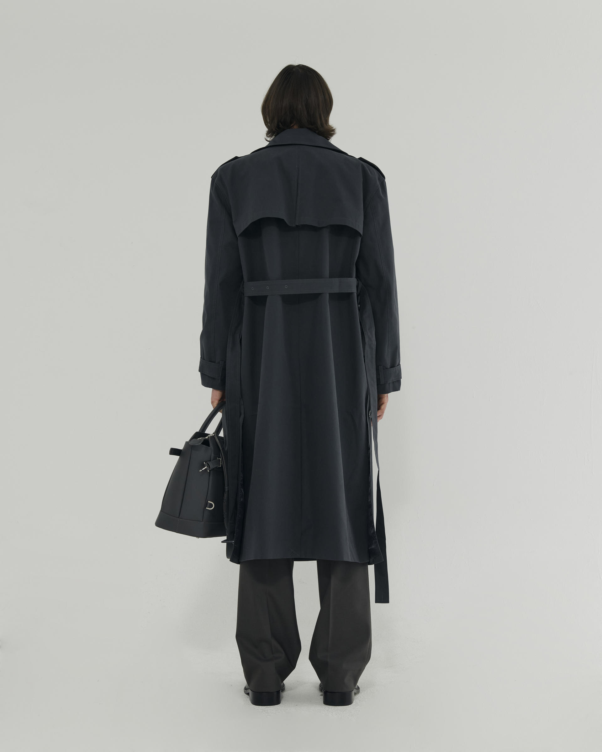 - 루즈핏 레이어드 트렌치 코트 - 트렌치 코트와 앞부분이 동일하게 제작된 덧장이 레이어드된 더블 패치 디자인 - 더블 브레스티드 버튼 클로징 고퀄리티 봉제 방식으로 제작 천연 소뿔 단추 사용 안감 전체 로고 음각된 자체 제작 원단 사용 어깨 견장과 옆선 단추로 탈부착이 가능한 덧장이 포함되어 있습니다. 레이어드 덧장의 여밈에 따라 다양한 스타일링이 가능한 멋스러운 트렌치 코트 입니다. 레이어드 울 트렌치 덧장과도 착용이 가능한 멀티 레이어링 아이템 |