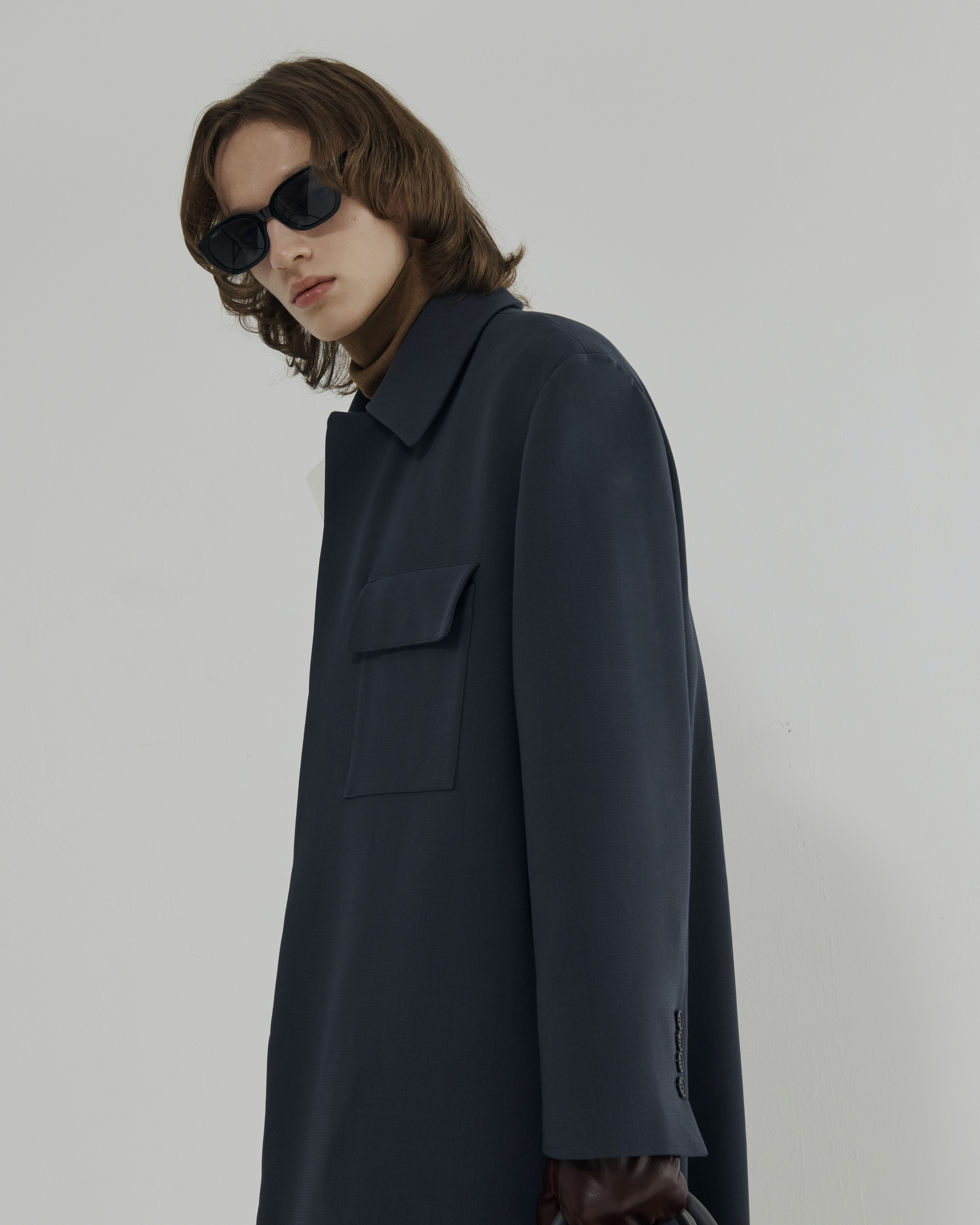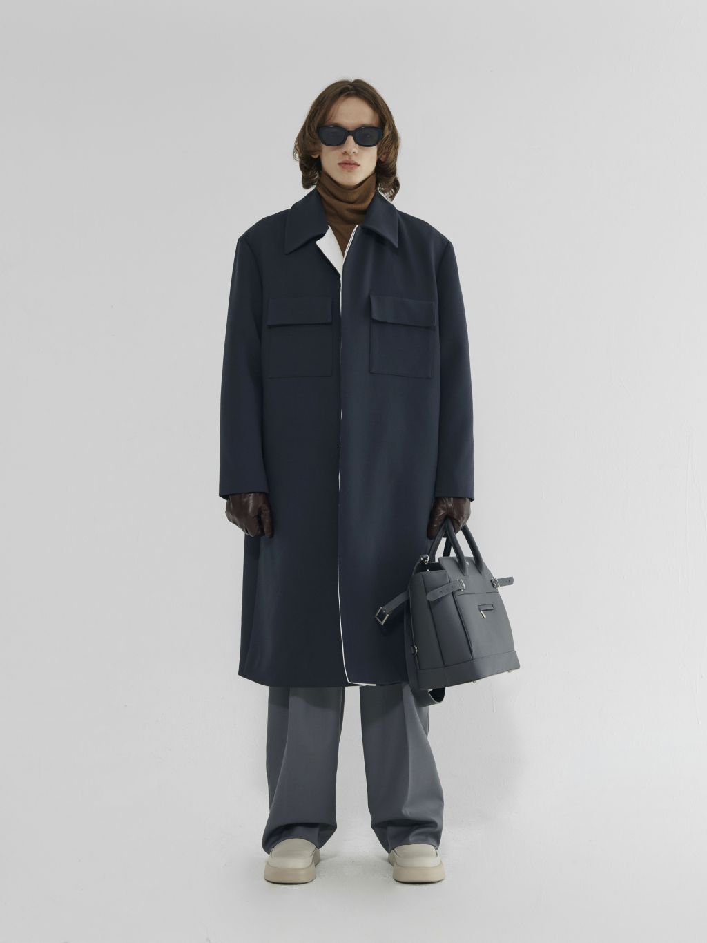 - 루즈핏 싱글 칼라 코트 - 프론트 더블 아웃 포켓 - 히든 버튼 클로징/화이트 안단 배색 - 천연 소뿔 단추 사용 - 메인 소재 컬러와 배색되는 안단 컬러 - 뒤 중심 중앙부분 미들폭 원턱 디테일로 활동성을 더하였습니다. |