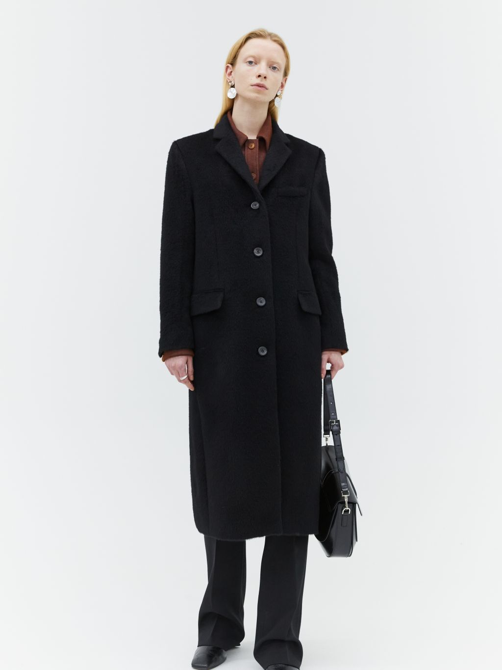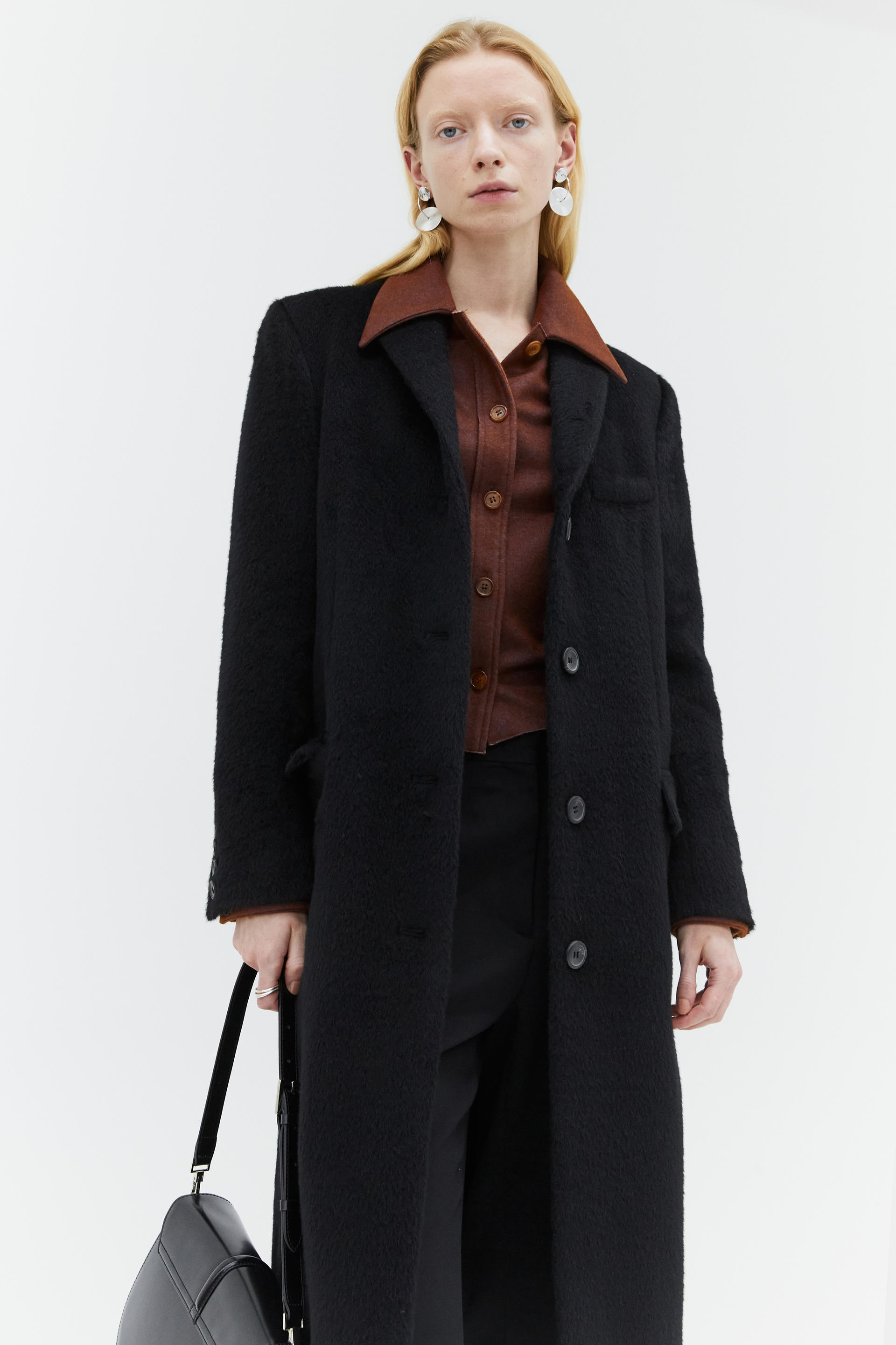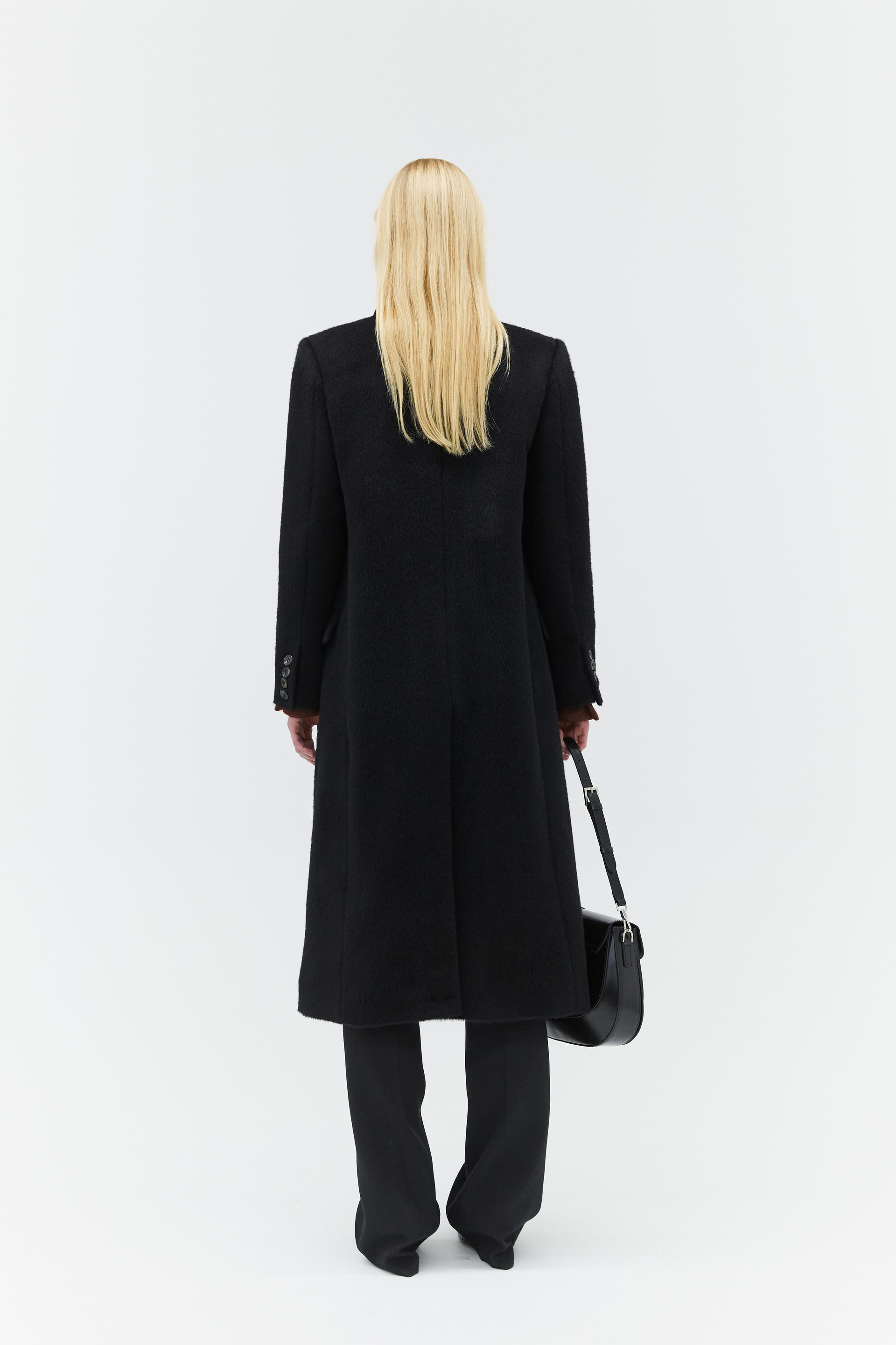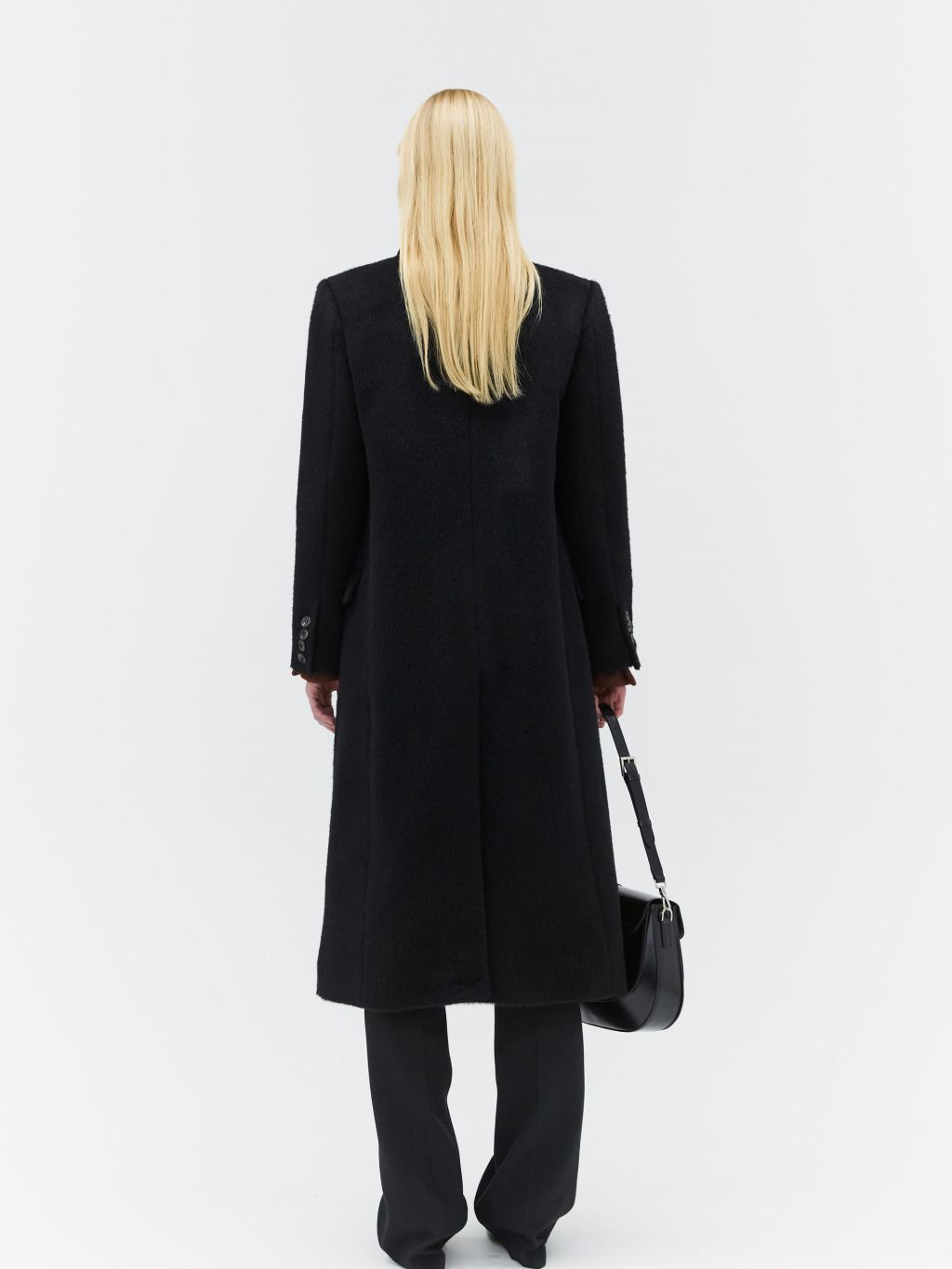 hairy alpaca single breasted coat black