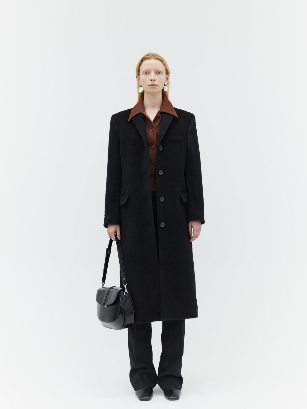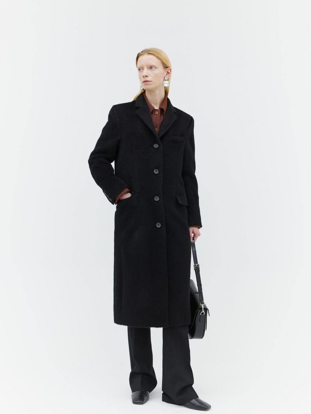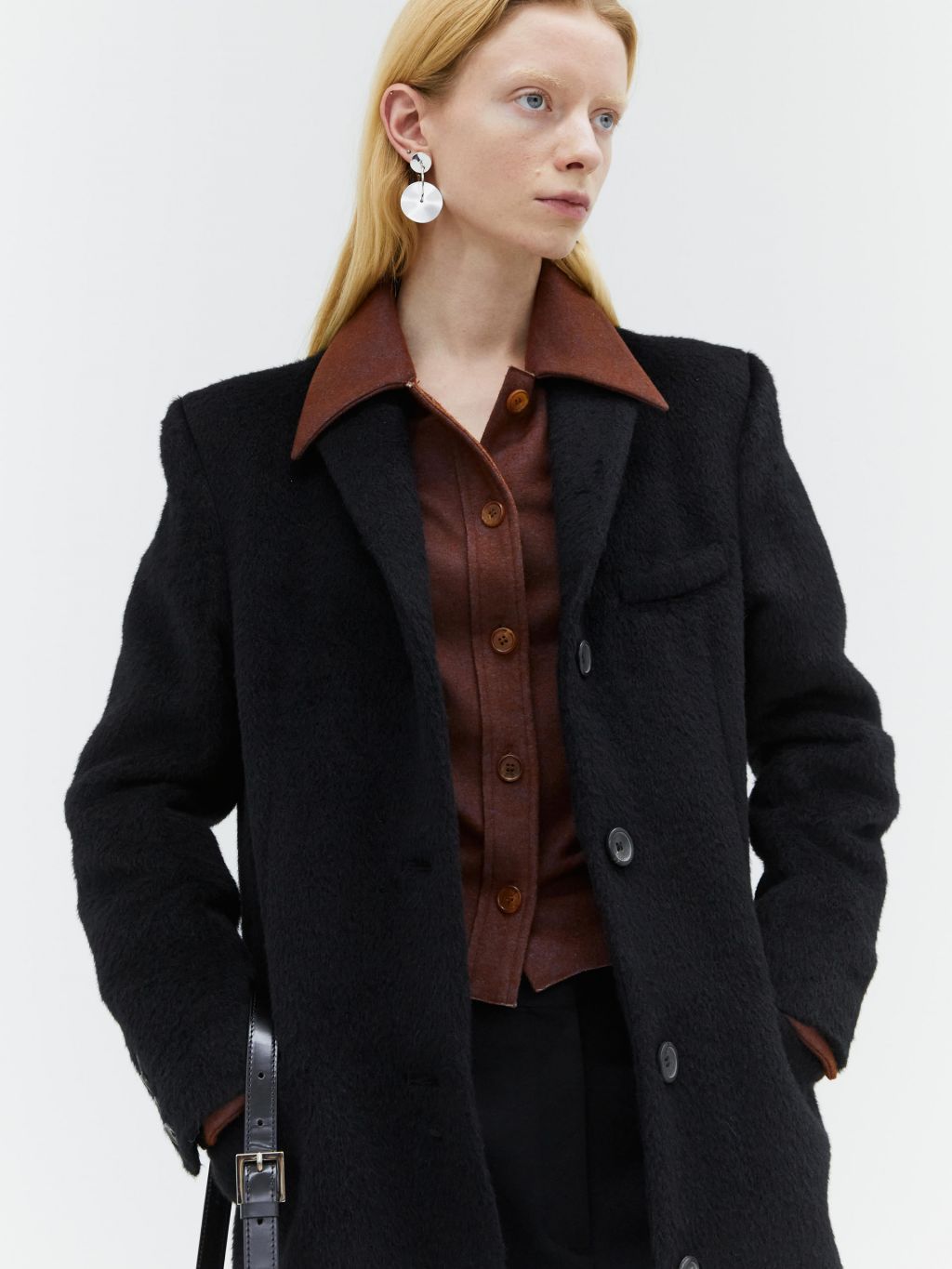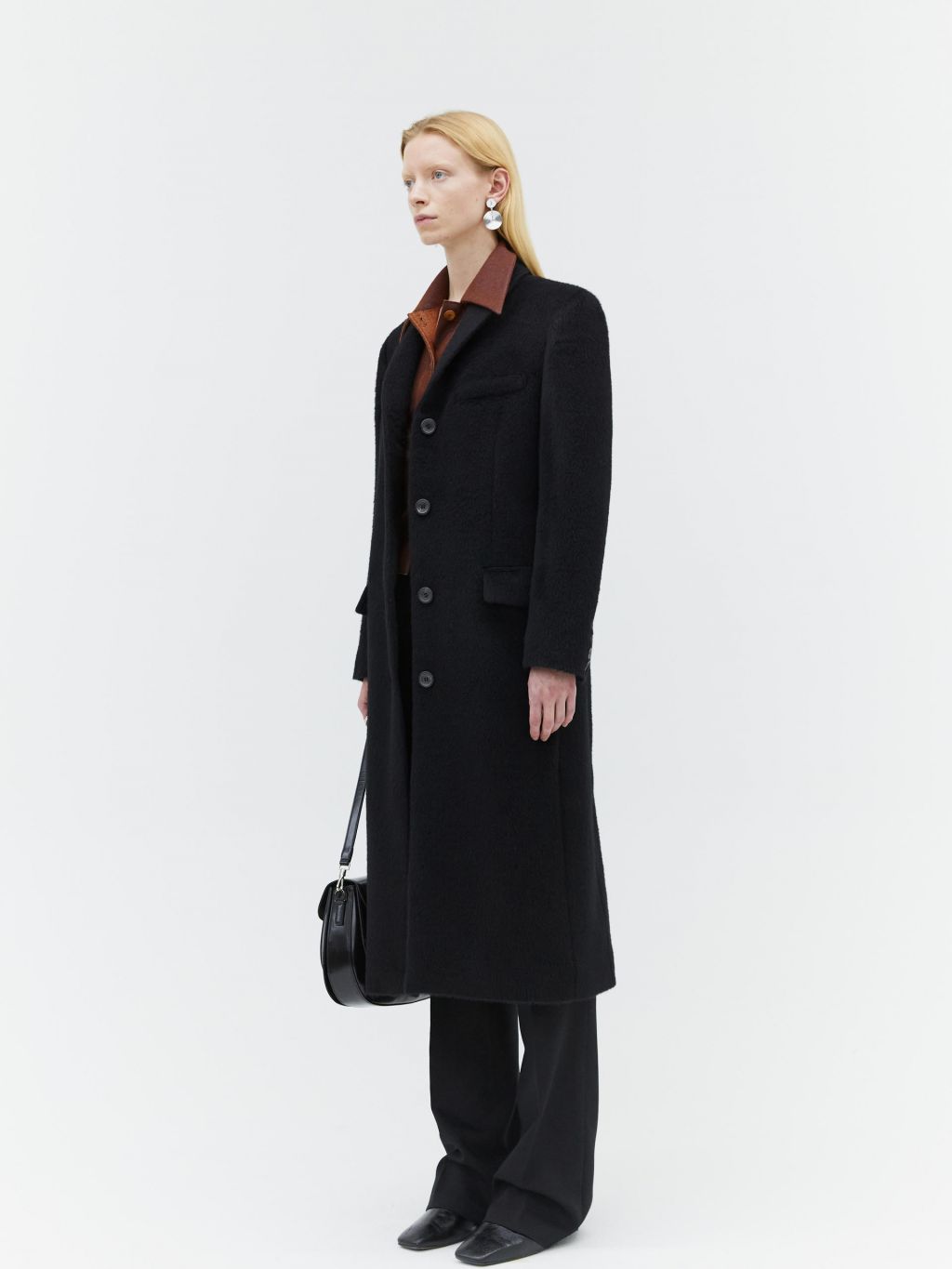hairy alpaca single breasted coat black