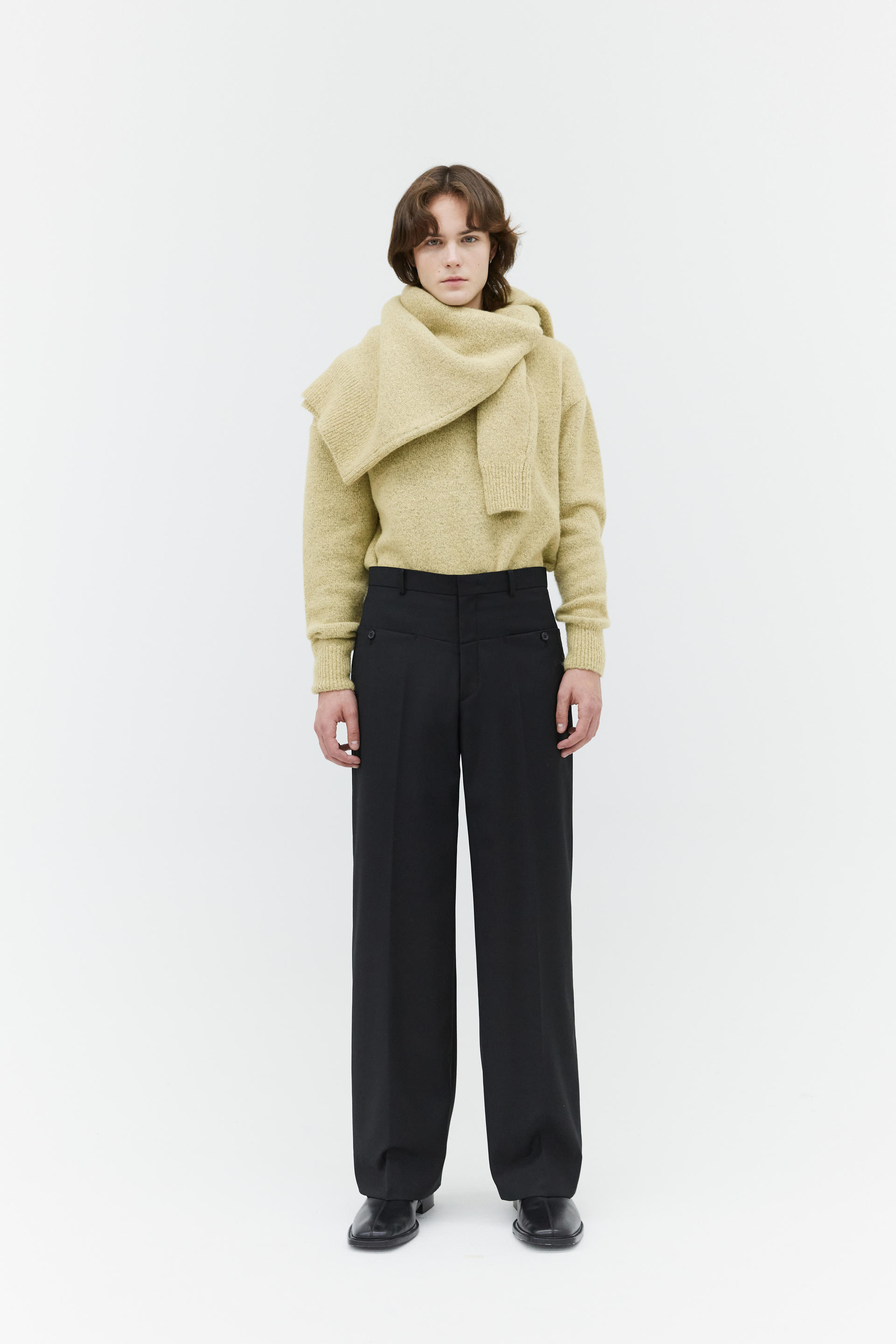 - 릴랙스드 핏의 슬랙스팬츠 - 프론트 절개, 포켓 디테일 - YKK 지퍼사용 - 이중 속단추 - 고급 소뿔단추 사용 |