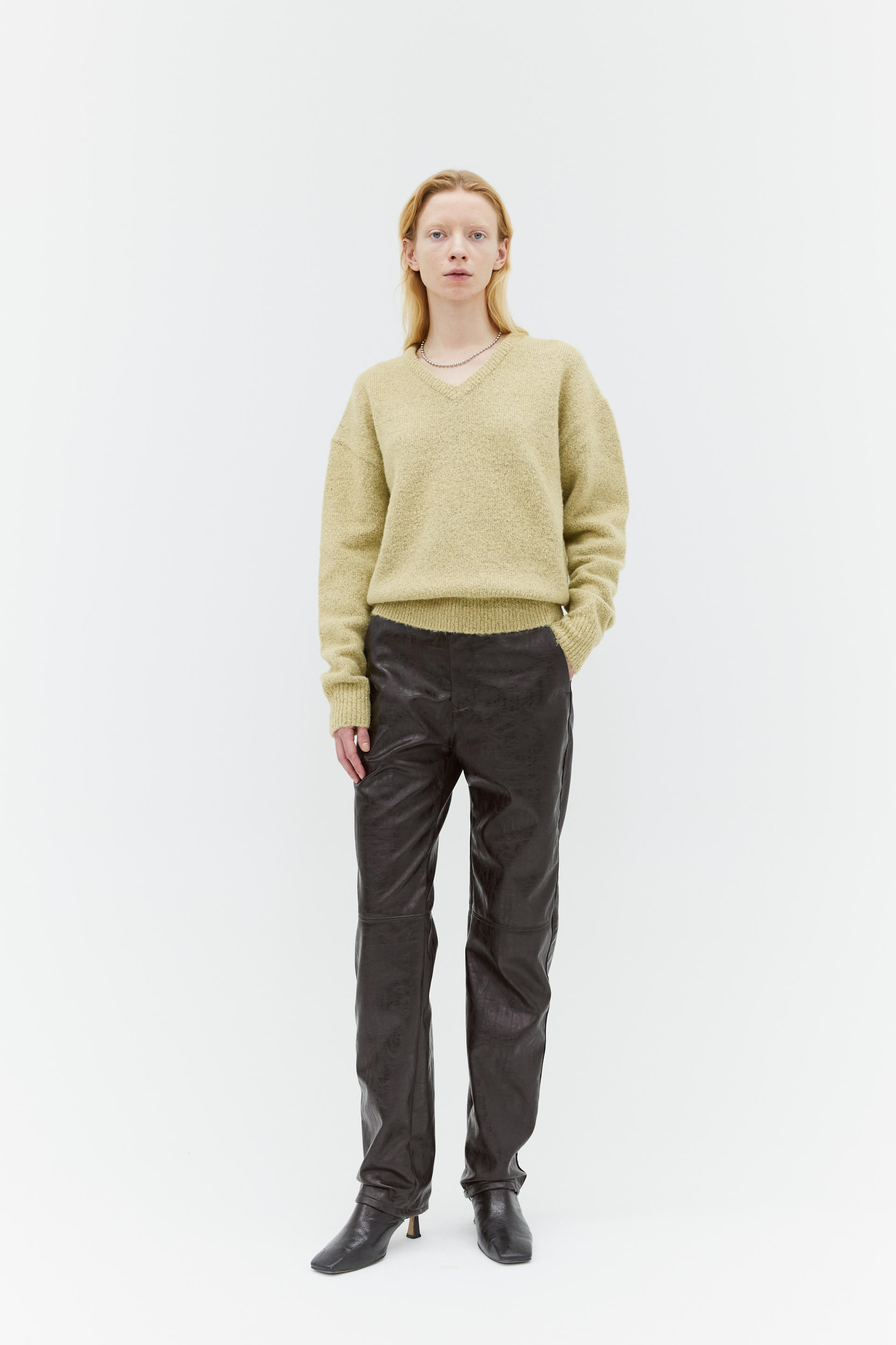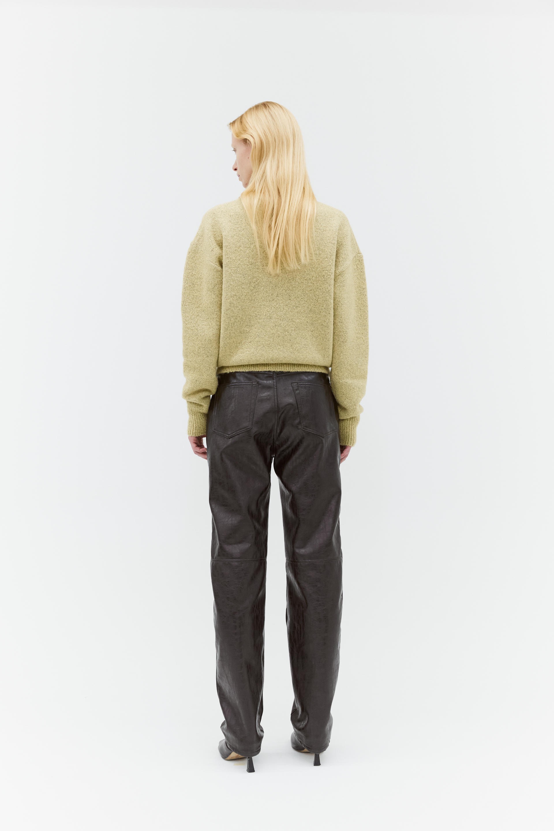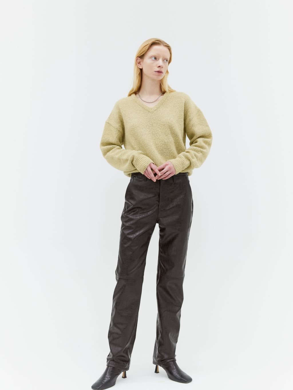 -스트레이트 핏의 에코 레더 팬츠 - YKK 社의 지퍼 - LABEL 로고가 각인된 고정식 켄톤 - 30수 트윌 코튼 주머니감 - 이탈리아산 베지터블 소가죽 패치 - 코아사 봉사 |