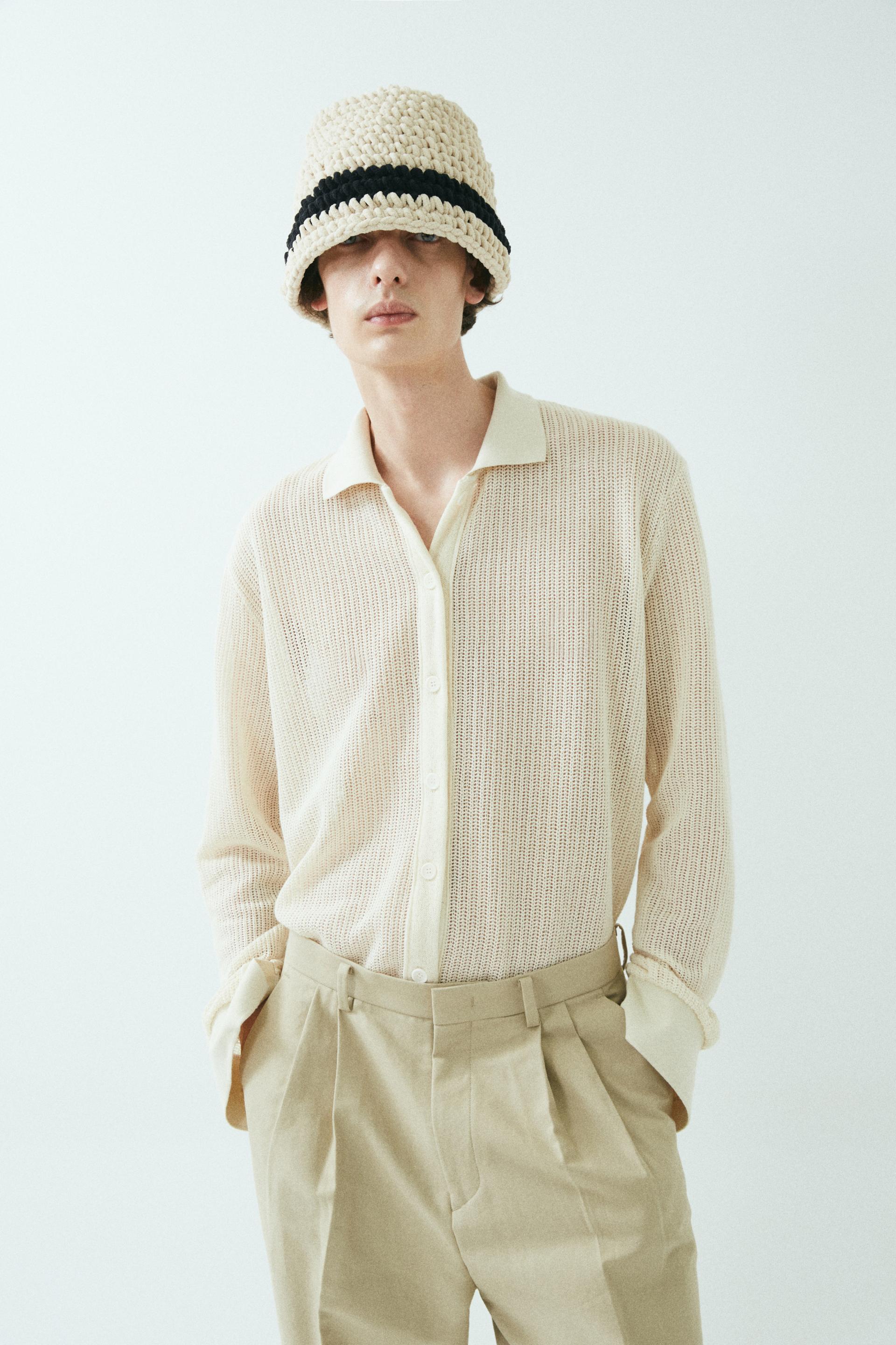 - 니트 짜임의 스프레드 칼라 및 커프스
