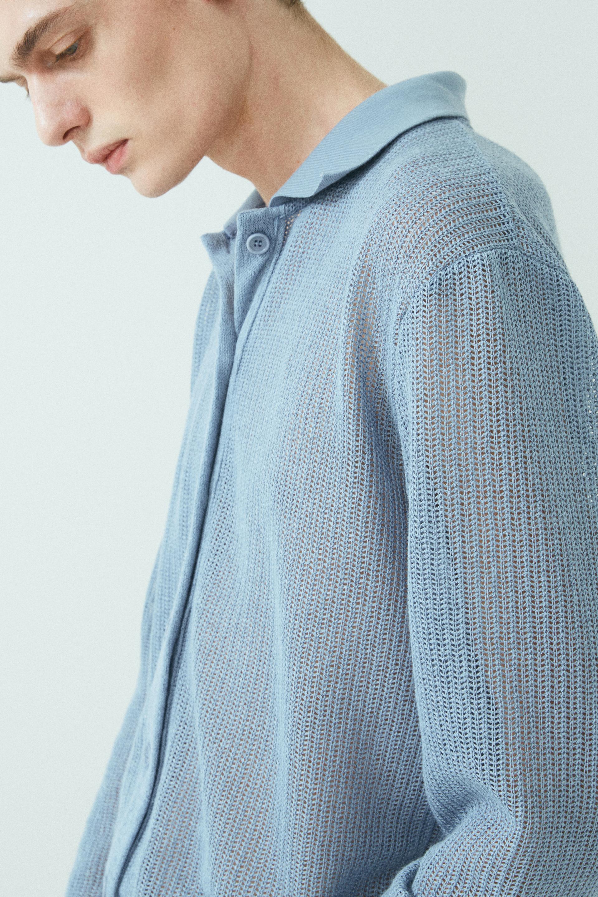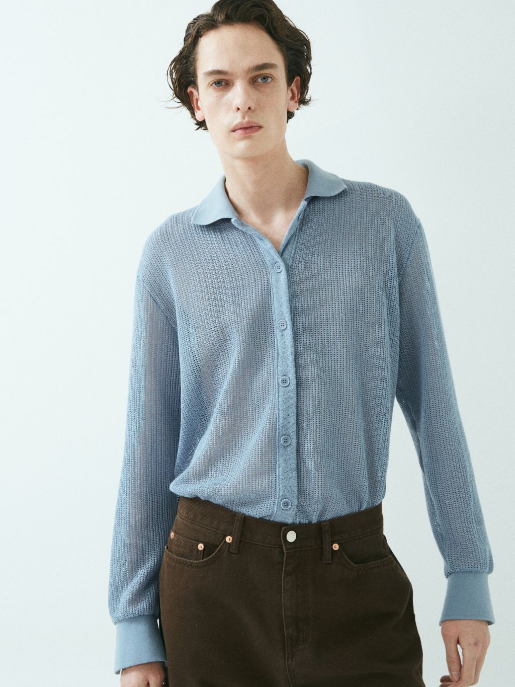 - 루즈핏 크로쉐 셔츠 - 니트 짜임의 스프레드 칼라 및 커프스 - 버튼 오픈/클로징 루즈핏의 크로쉐 셔츠입니다. 앞 여밈 단추로 오픈 클로징되며, 너트 단추를 사용하였습니다. 단품, 혹은 레이어드, 스윔웨어와도 스타일링 하기 좋은 활용도 높은 제품입니다. |