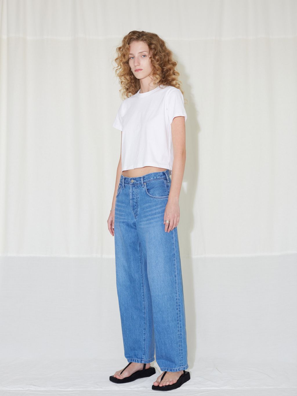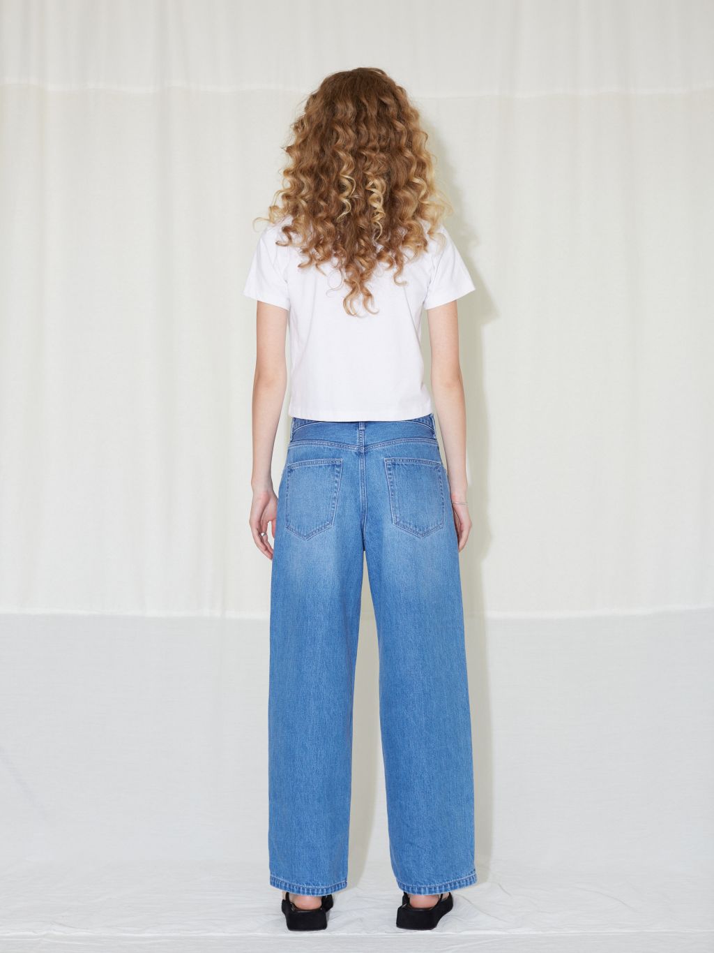 - 로우 웨이스트의 와이드 핏 프리미엄 퀄리티 청바지 - 고급스러운 워싱 (핸드 워싱) - 버튼 플라이 - YKK 社의 지퍼, 리벳 - LABEL 로고가 각인된 고정식 켄톤 - 30수 트윌 코튼 주머니감 - 코아사 봉사 |