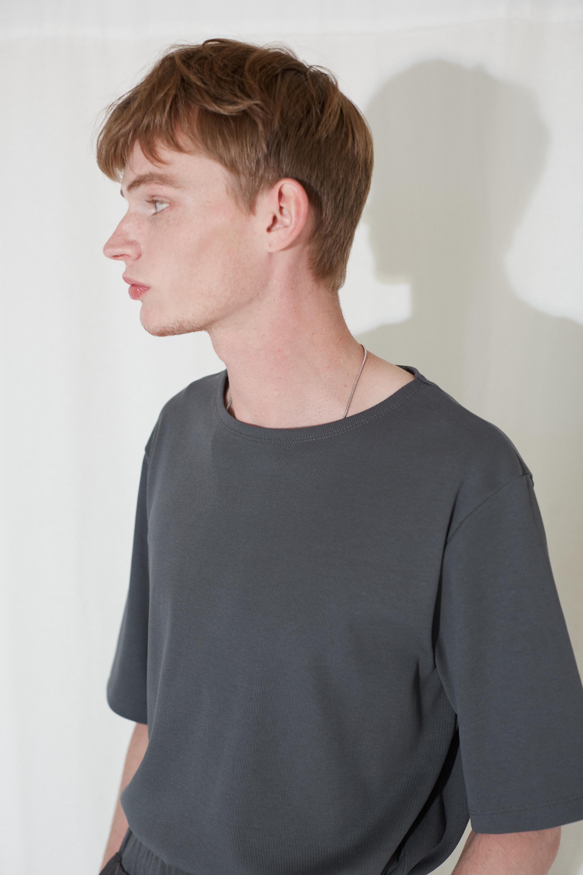 - 스탠다드 핏 - 보트넥 - 5부 소매 립 조직으로 제작된 보트넥 티셔츠입니다. 탄성이 있는 시원한 터치감의 소재를 사용하여 쾌적한 착용감이 특징입니다. 과하지 않은 보트넥과 5부 소매, 스탠다드한 핏으로 착용되어 클래식한 실루엣을 연출하였습니다. 단독 착용으로도 감각적인 룩을 완성할 수 있는 아이템입니다. |