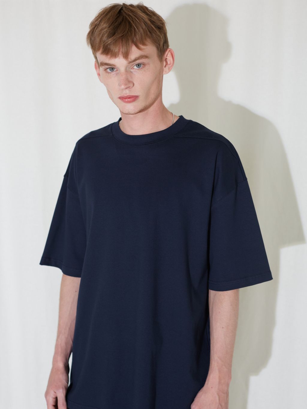 - 오버사이즈 핏 - 어깨라인 삼각 요크 디테일 - 라운드 넥 여유로운 사이즈의 라운드 넥 티셔츠입니다. 편안하게 착용되는 드롭 숄더로 전면 어깨라인에 삼각 요크 디테일이 특징입니다. 부드러운 촉감과 탄탄한 조직감으로 균형잡힌 실루엣을 연출합니다. 캐주얼한 무드로 착용하기 좋은 아이템입니다. |