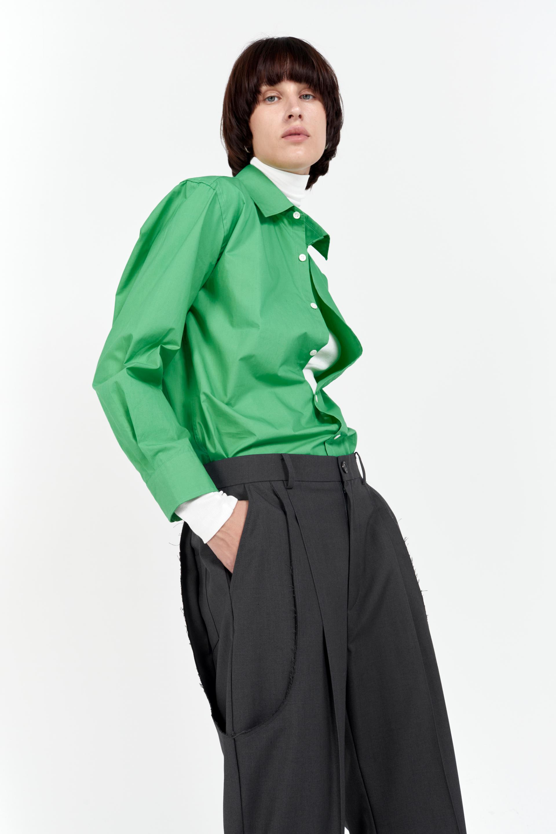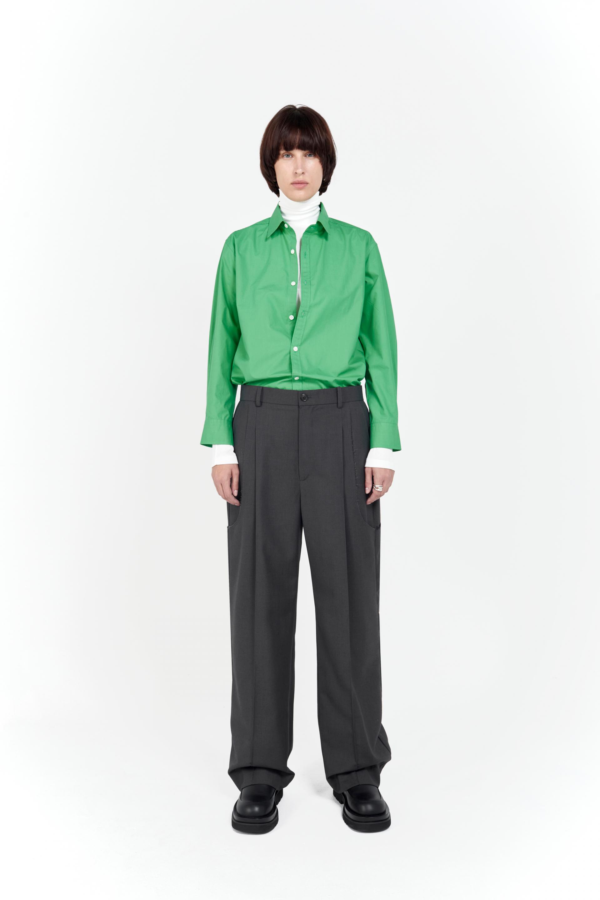 - 와이드 핏의 턱 슬랙스팬츠 - 러프컷 디테일 - 프론트, 백 레이어드 패턴 - YKK 社의 지퍼 - 소뿔 단추 사용 레이어드 패턴의 러프컷 디테일이 특징인 와이드 핏 슬랙스입니다. 벨트 라인부터 옆선으로 이어지는 유려한 곡선 실루엣을 러프컷 처리하여 감각적인 터치를 더하였습니다. ***늘림 수선이 가능한 5cm 정도의 여유 시접이 포함되어 있습니다. |