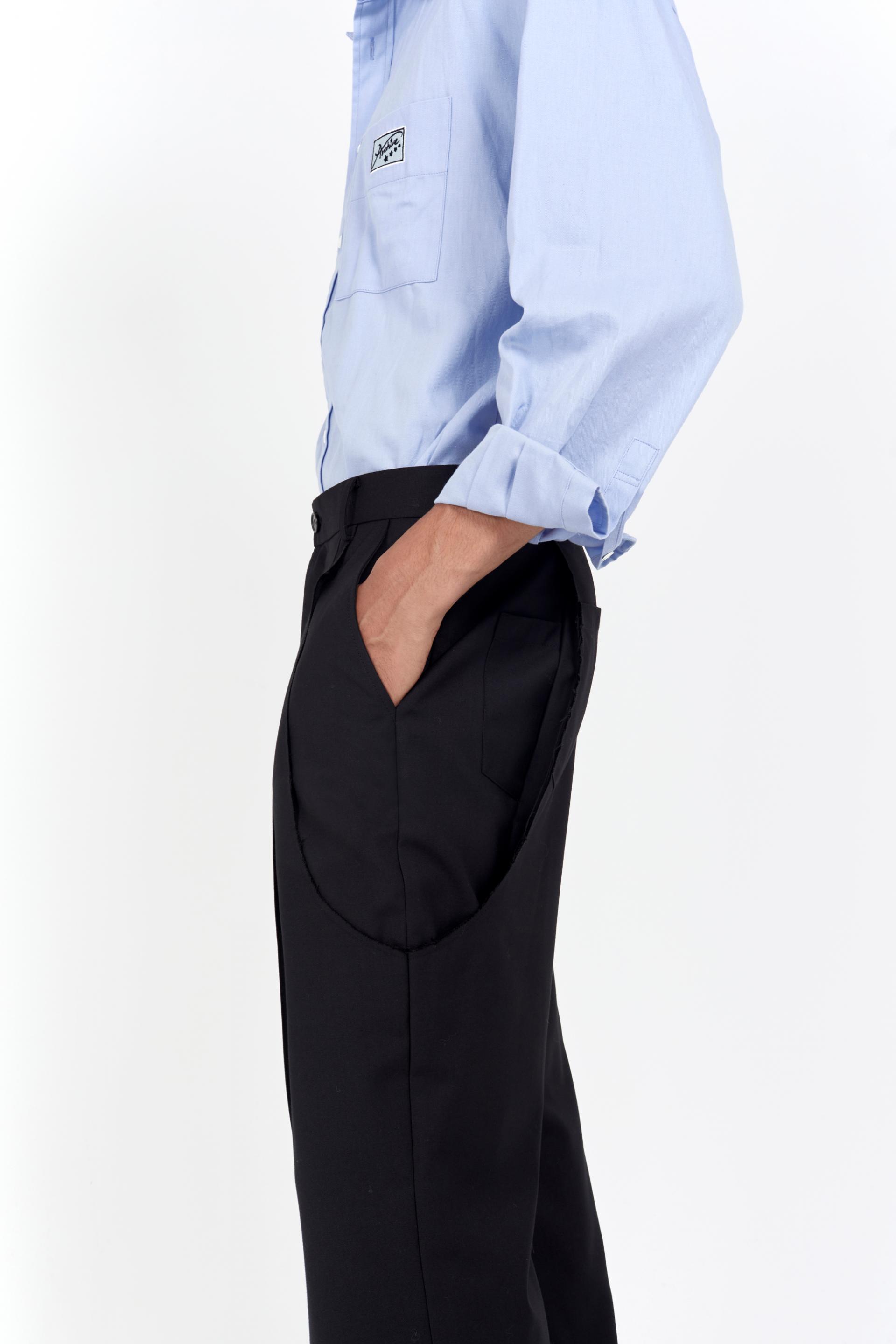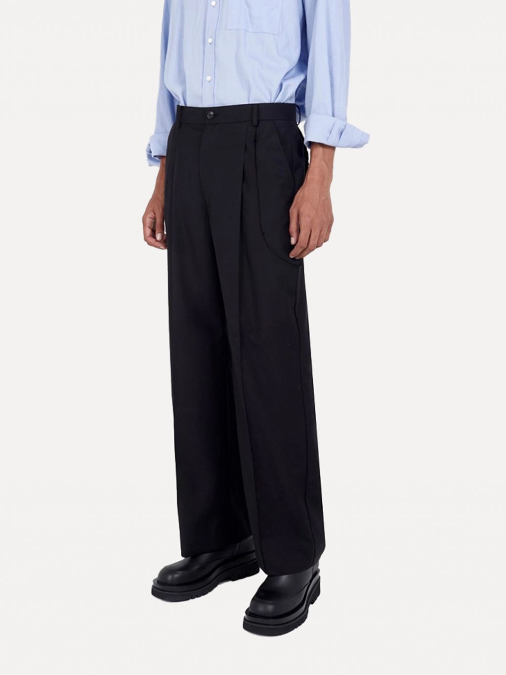 - 와이드 핏의 턱 슬랙스팬츠 - 러프컷 디테일 - 프론트, 백 레이어드 패턴 - YKK 社의 지퍼 - 소뿔 단추 사용 레이어드 패턴의 러프컷 디테일이 특징인 와이드 핏 슬랙스입니다. 벨트 라인부터 옆선으로 이어지는 유려한 곡선 실루엣을 러프컷 처리하여 감각적인 터치를 더하였습니다. ***늘림 수선이 가능한 5cm 정도의 여유 시접이 포함되어 있습니다. |
