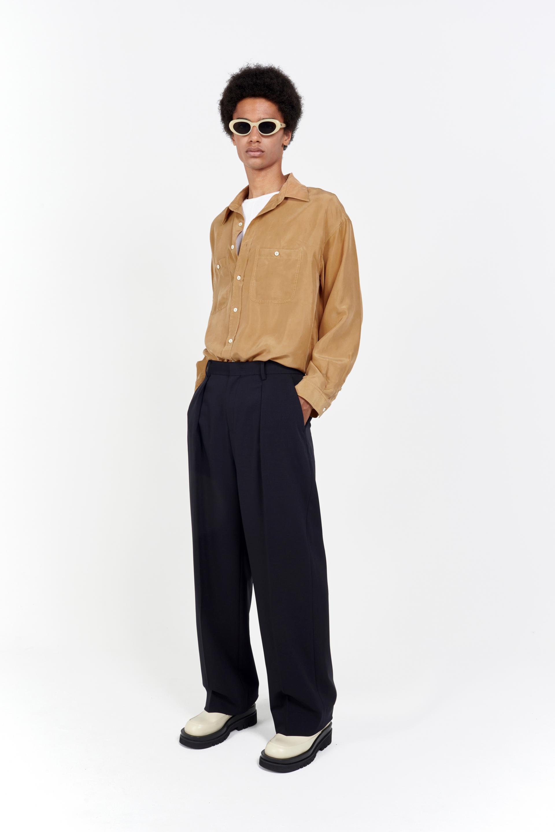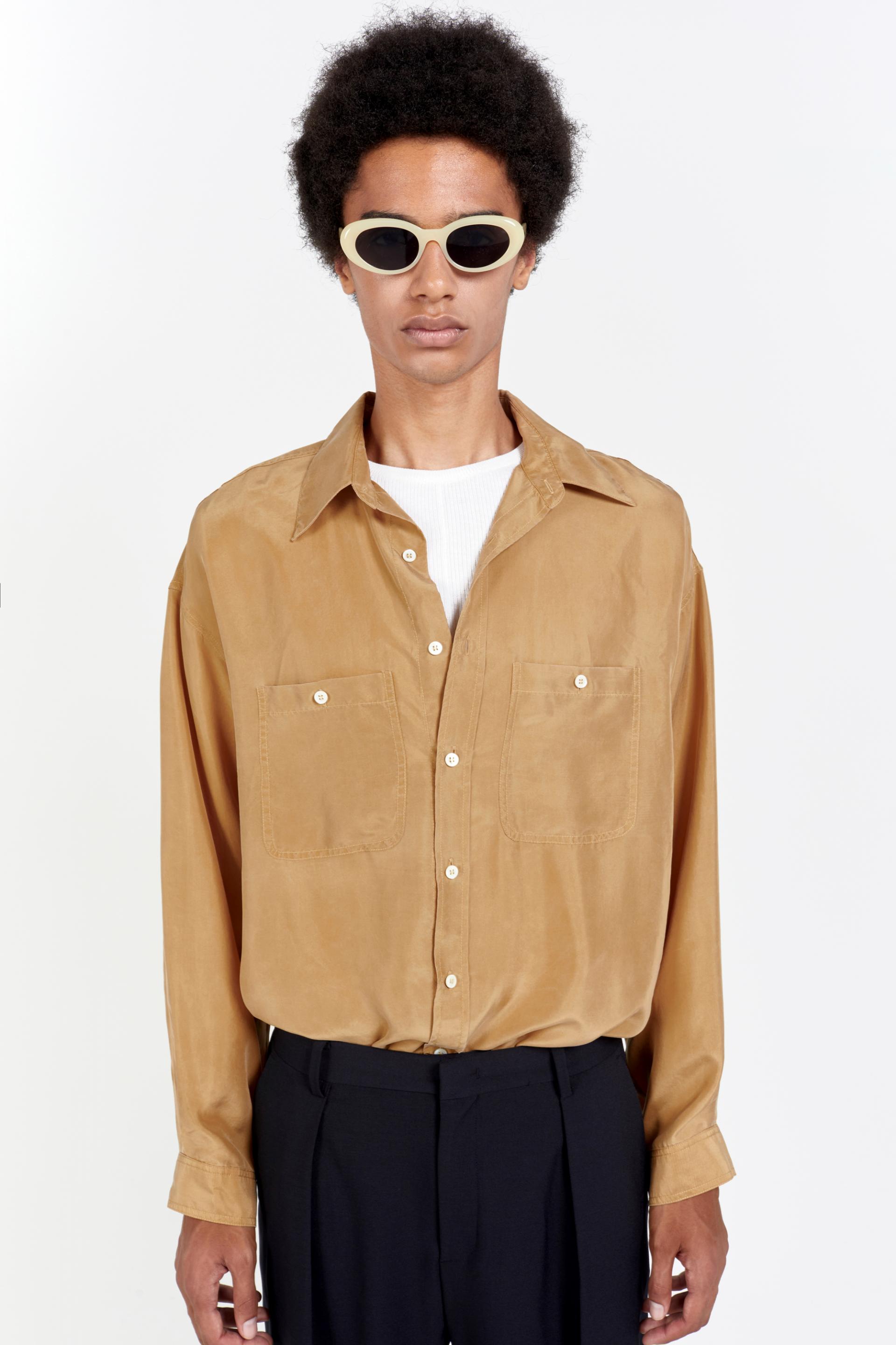 - 루즈핏 실크 셔츠 - 스프레드 칼라 - 프론트 더블 패치 포켓 - 싱글 버튼 오픈/클로징 - 고급 자개 단추 사용 자연스러운 광택이 멋스러운 실크 셔츠입니다. 실크 특유의 고급스러운 광택을 웨어러블 하게 풀어내기위해 워싱 가공 처리하여 표면에 자연스러운 스크레치가 멋스러운 제품입니다. 루즈핏으로 착용되는 제품으로 가볍고 부드러운 촉감을 느끼실 수 있습니다. 프론트 더블 패치 포켓이 있으며, 자개 단추로 오픈/클로징 됩니다. |