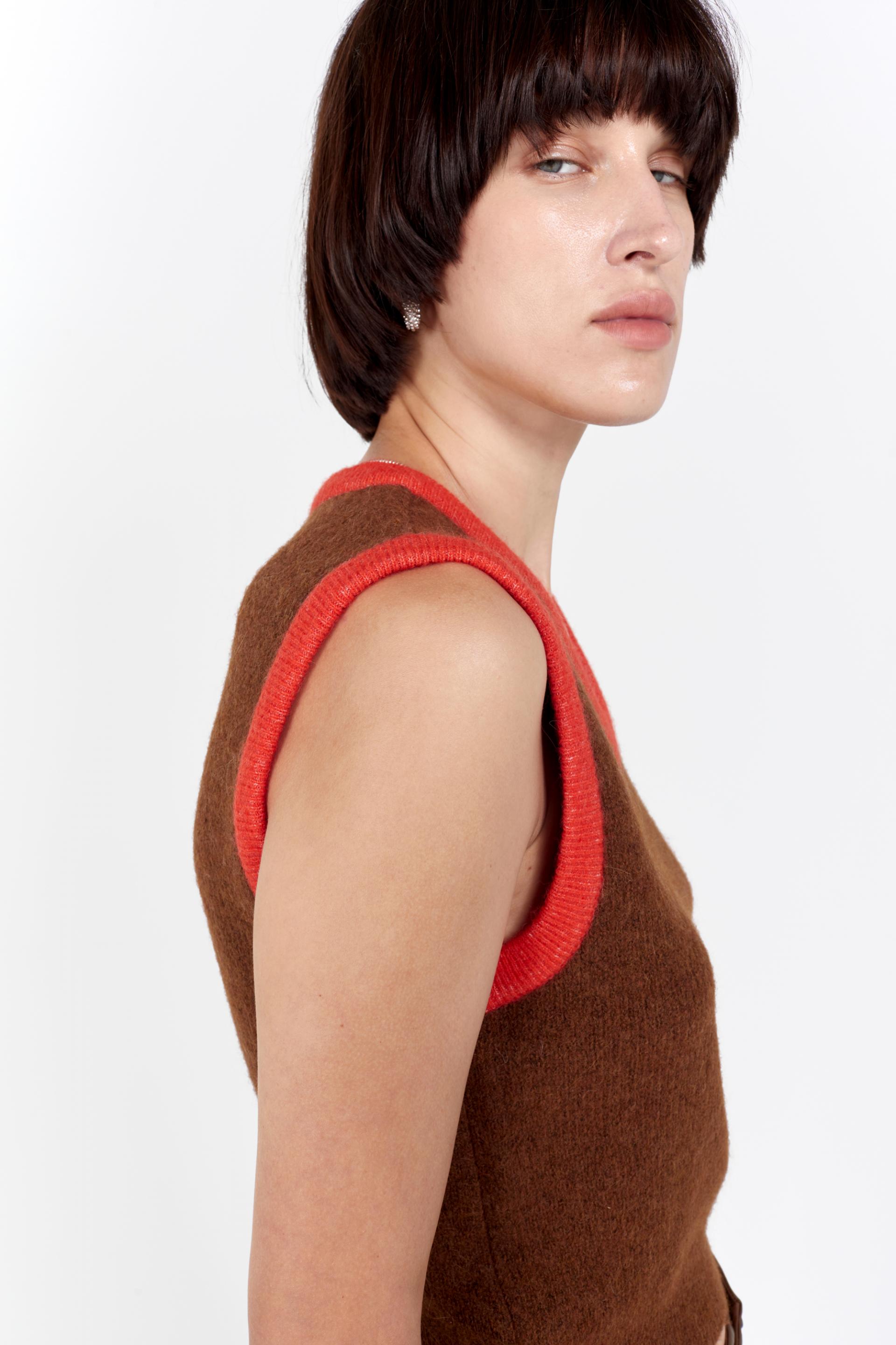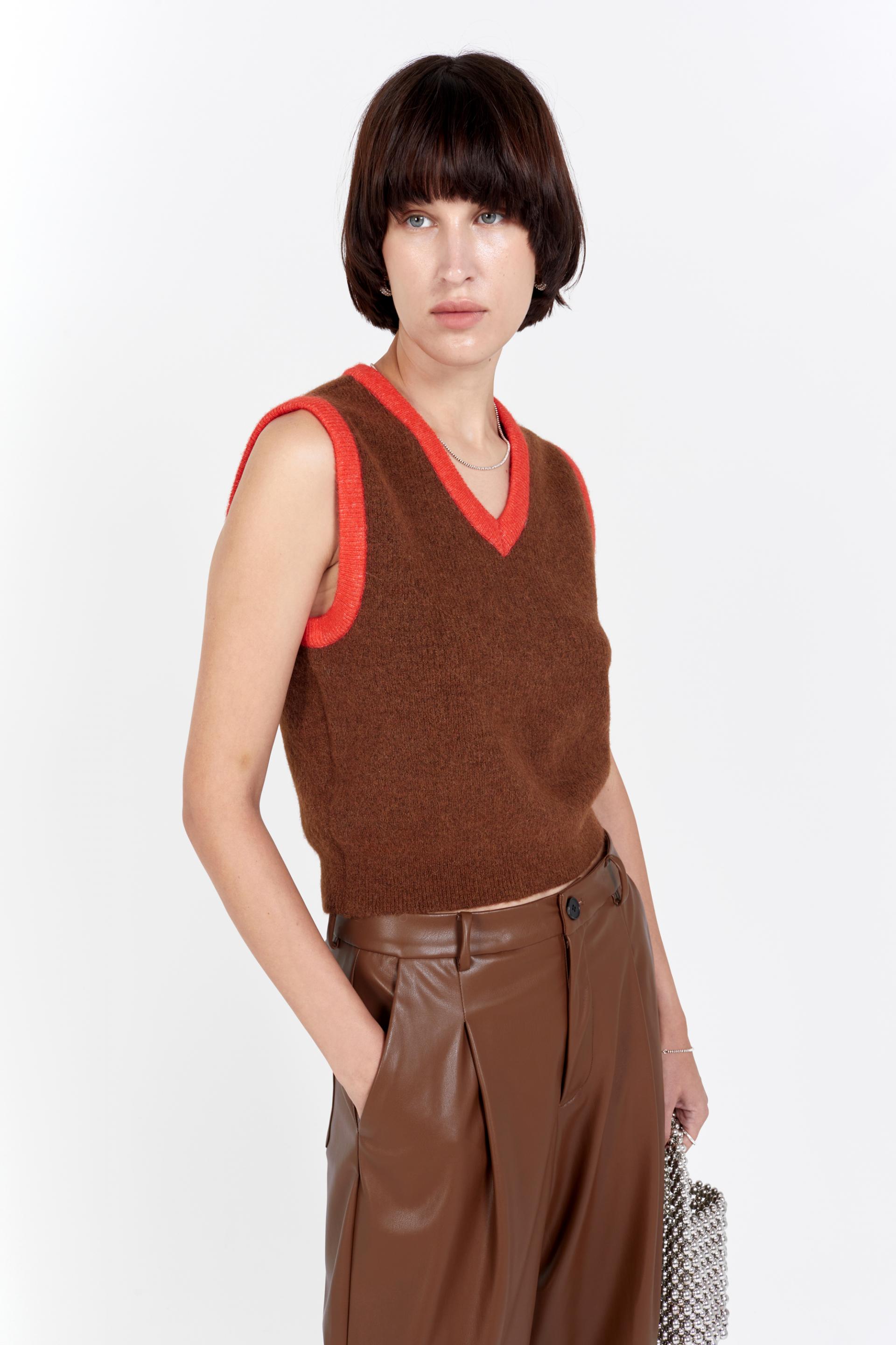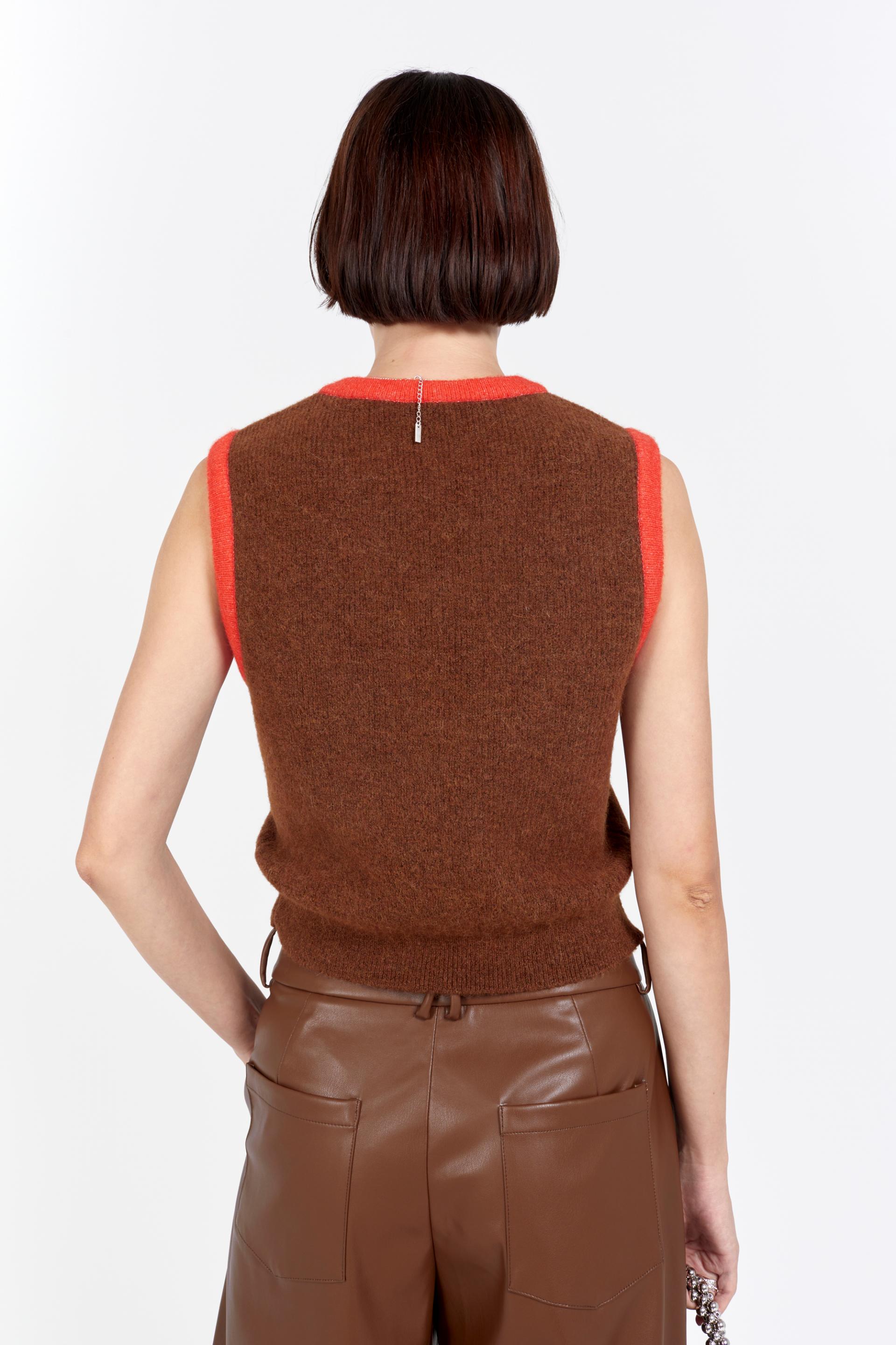 fluffy knitted vest red line