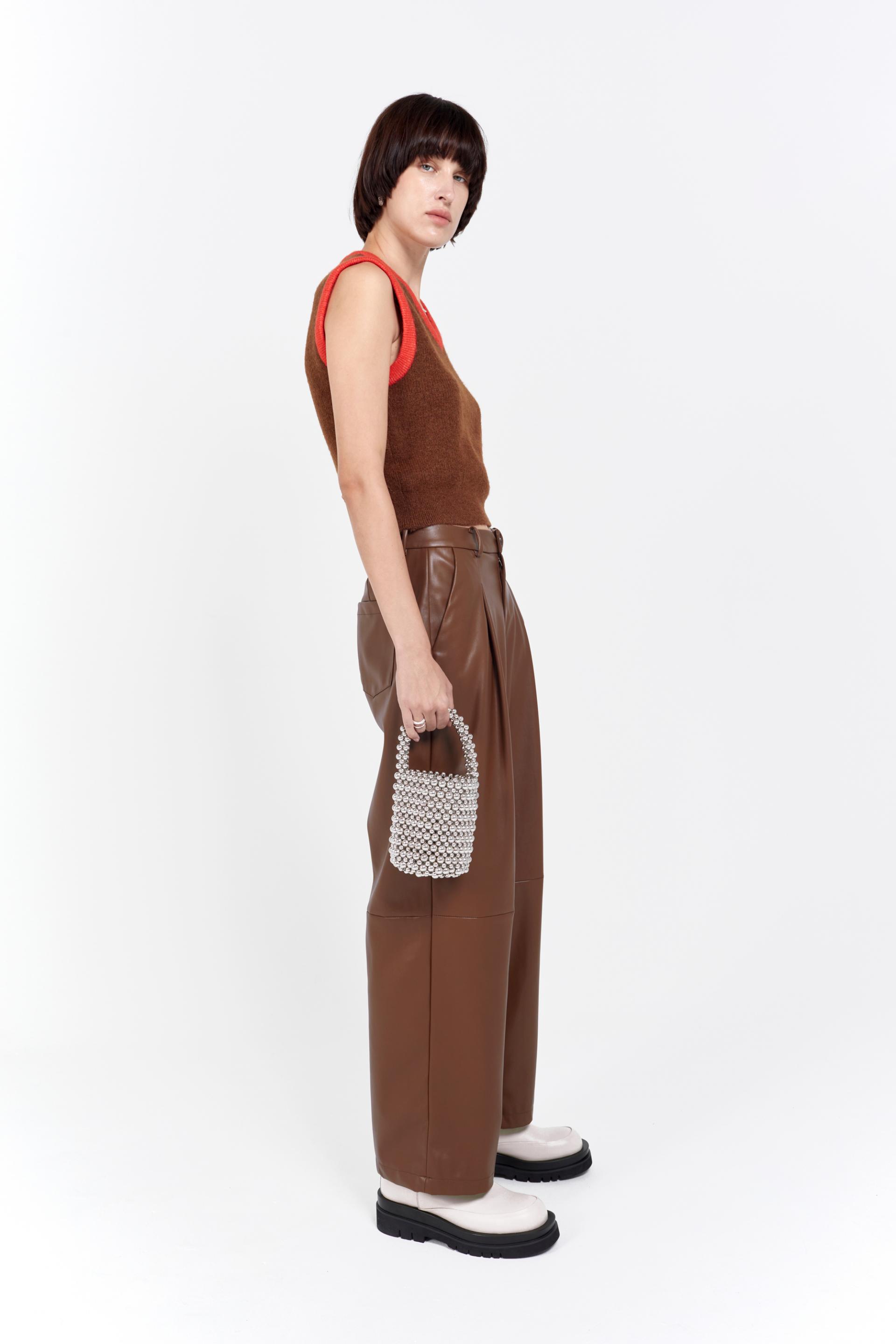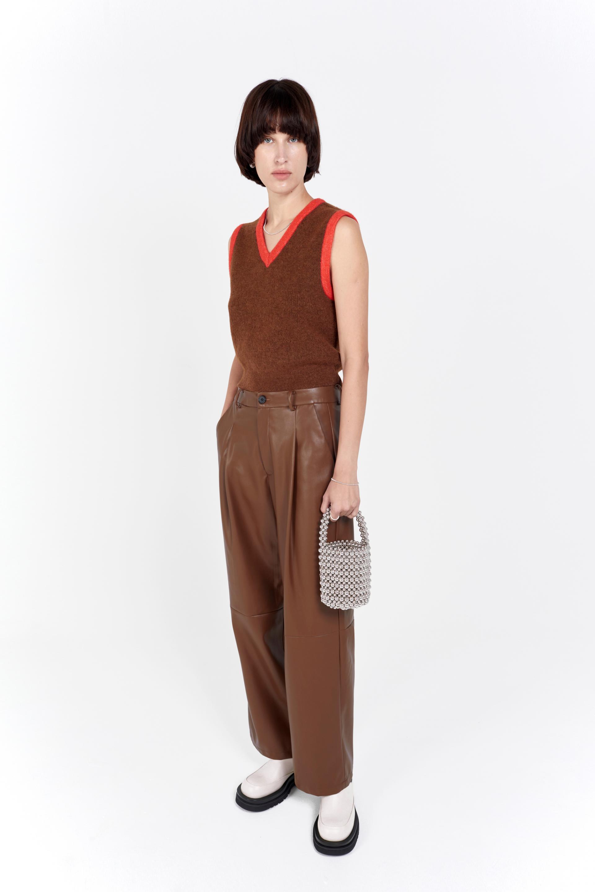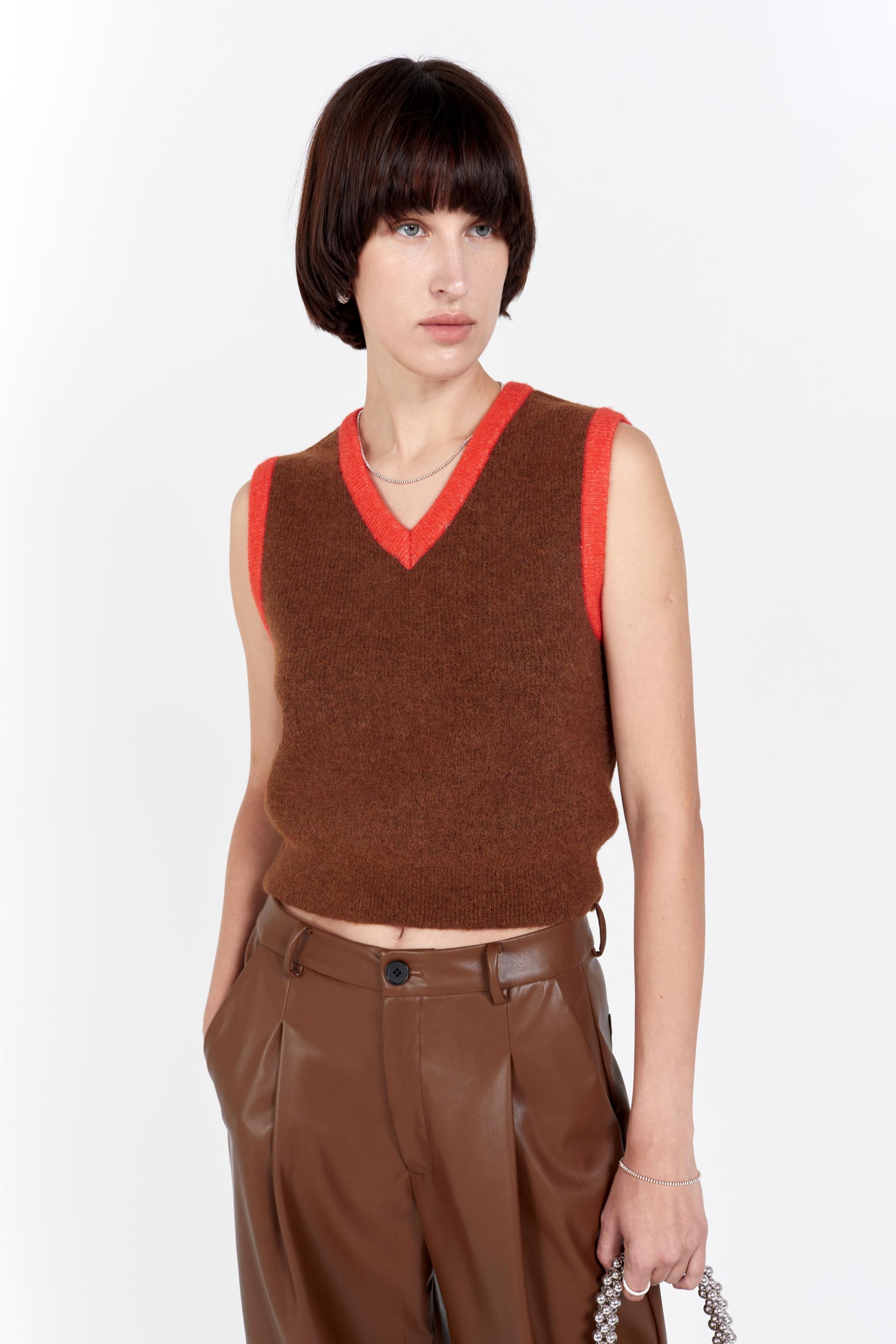 fluffy knitted vest red line