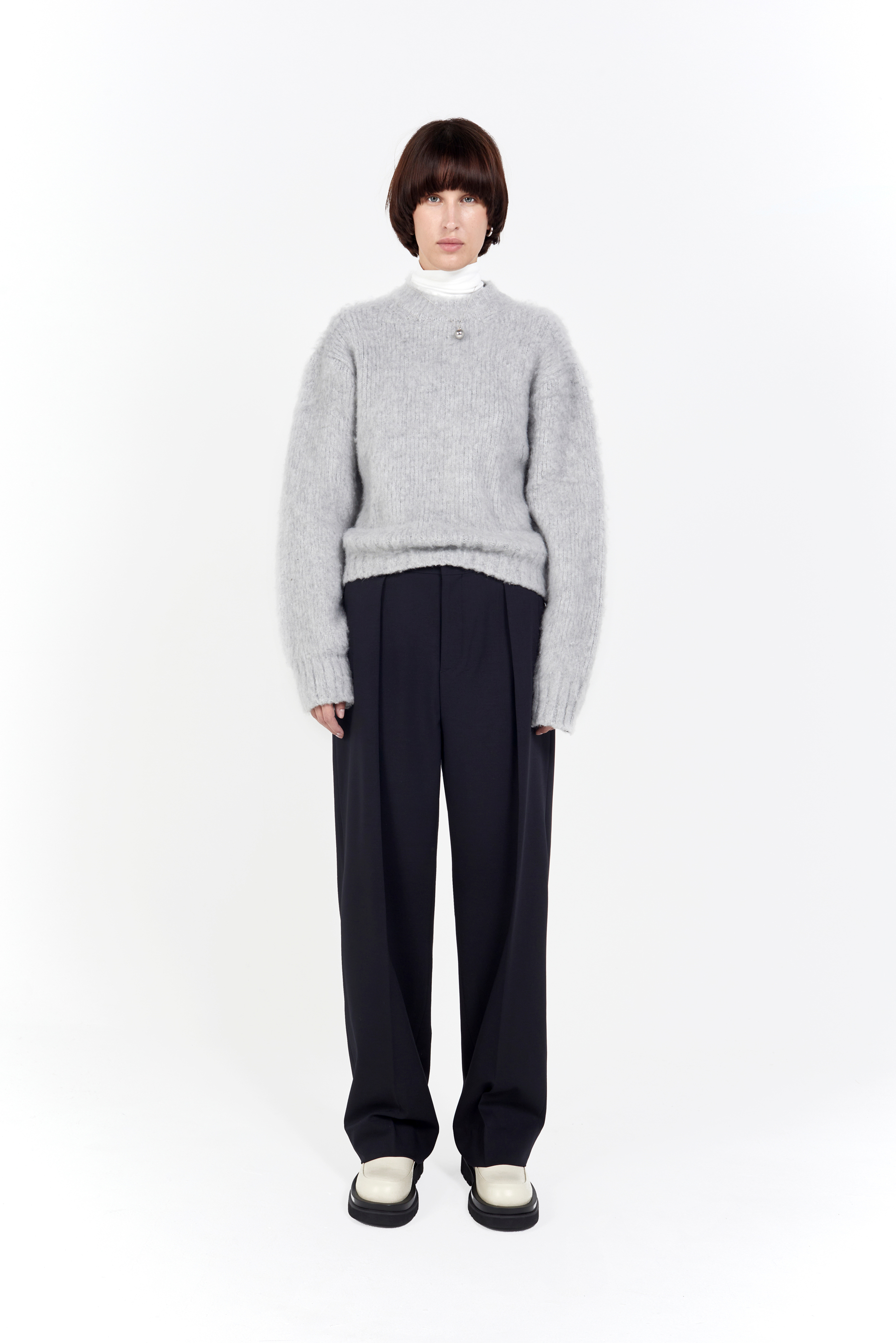 크루넥 퍼지 니트 루즈핏 프리미엄 이태리 원사로 편직된 퍼지 니트 입니다. 루즈 핏으로 착용되는 크루넥 니트로 원사 표면 헤어리한 텍스쳐와 풍부한 볼륨감으로 우수한 보온성을 자랑합니다. 차분한 페일 톤의 색감과 포근한 착용감으로 FW 시즌을 함께하기 좋은 아이템입니다. |