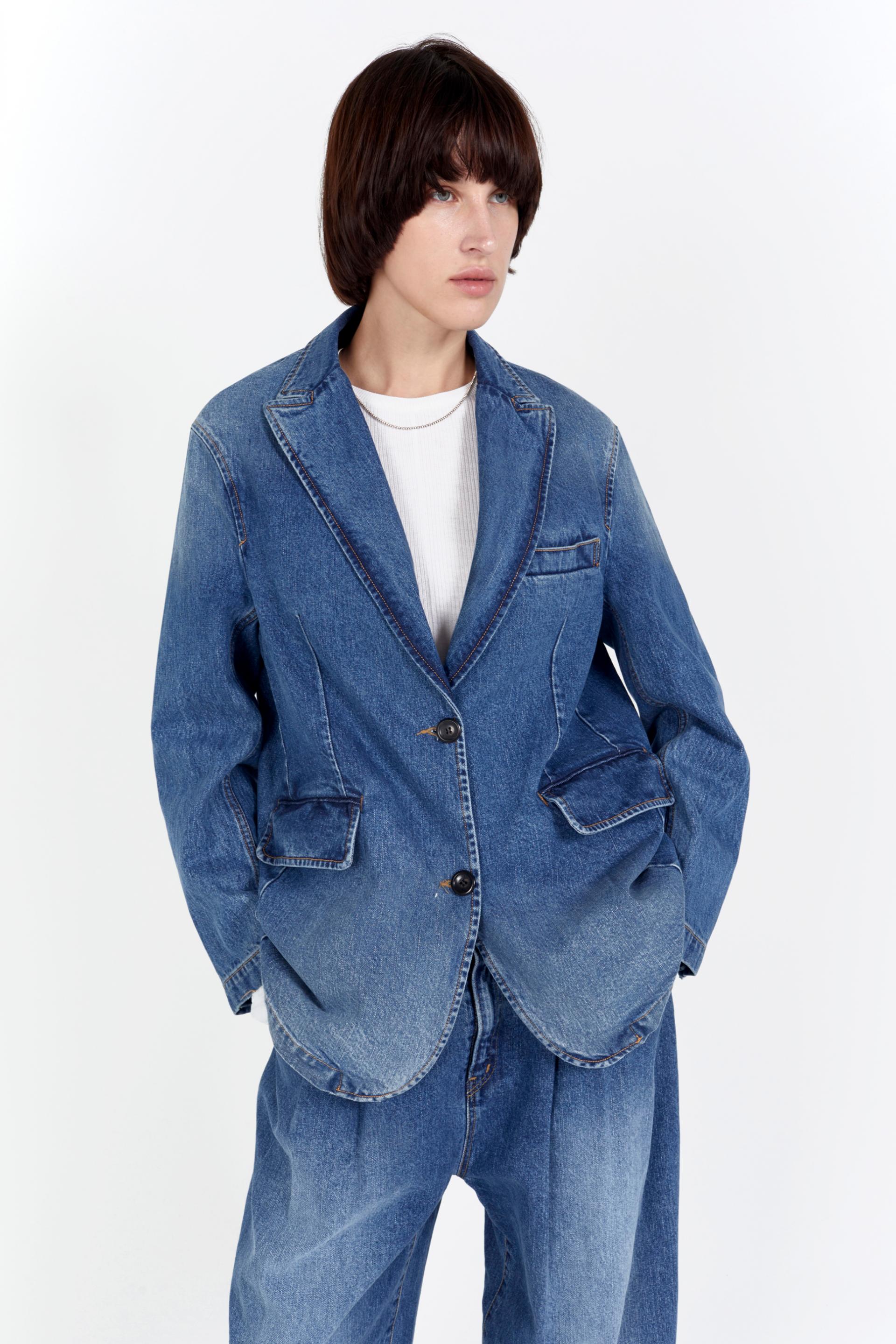 riam single breasted denim jacket mid blue