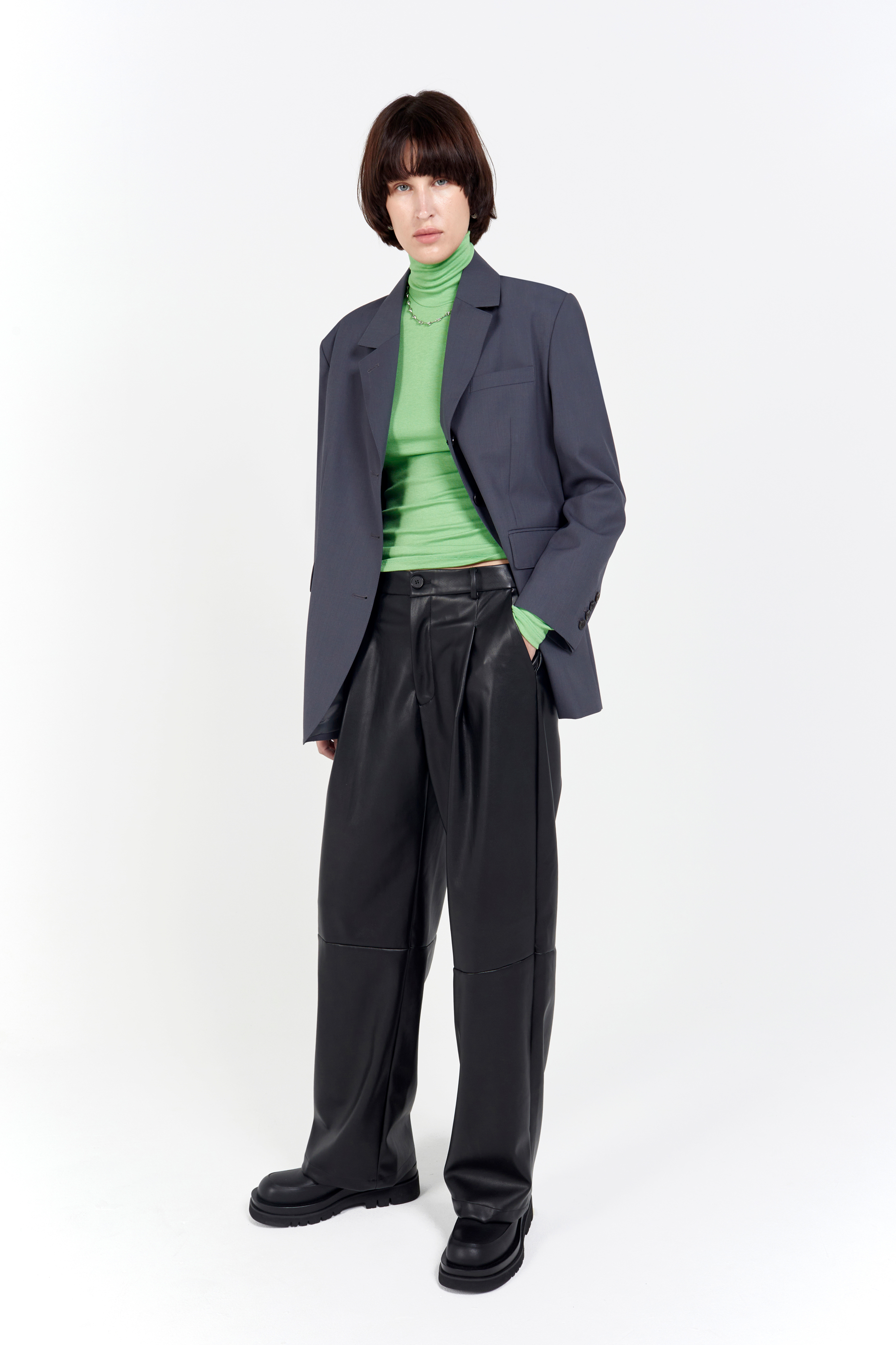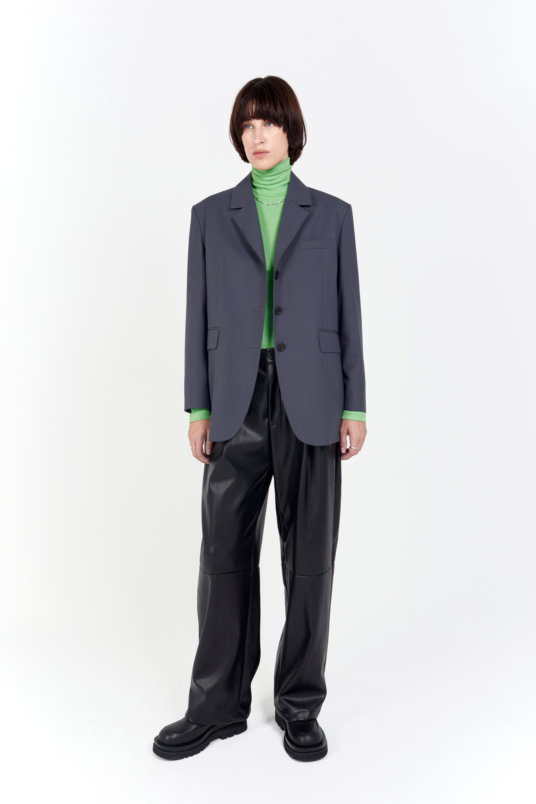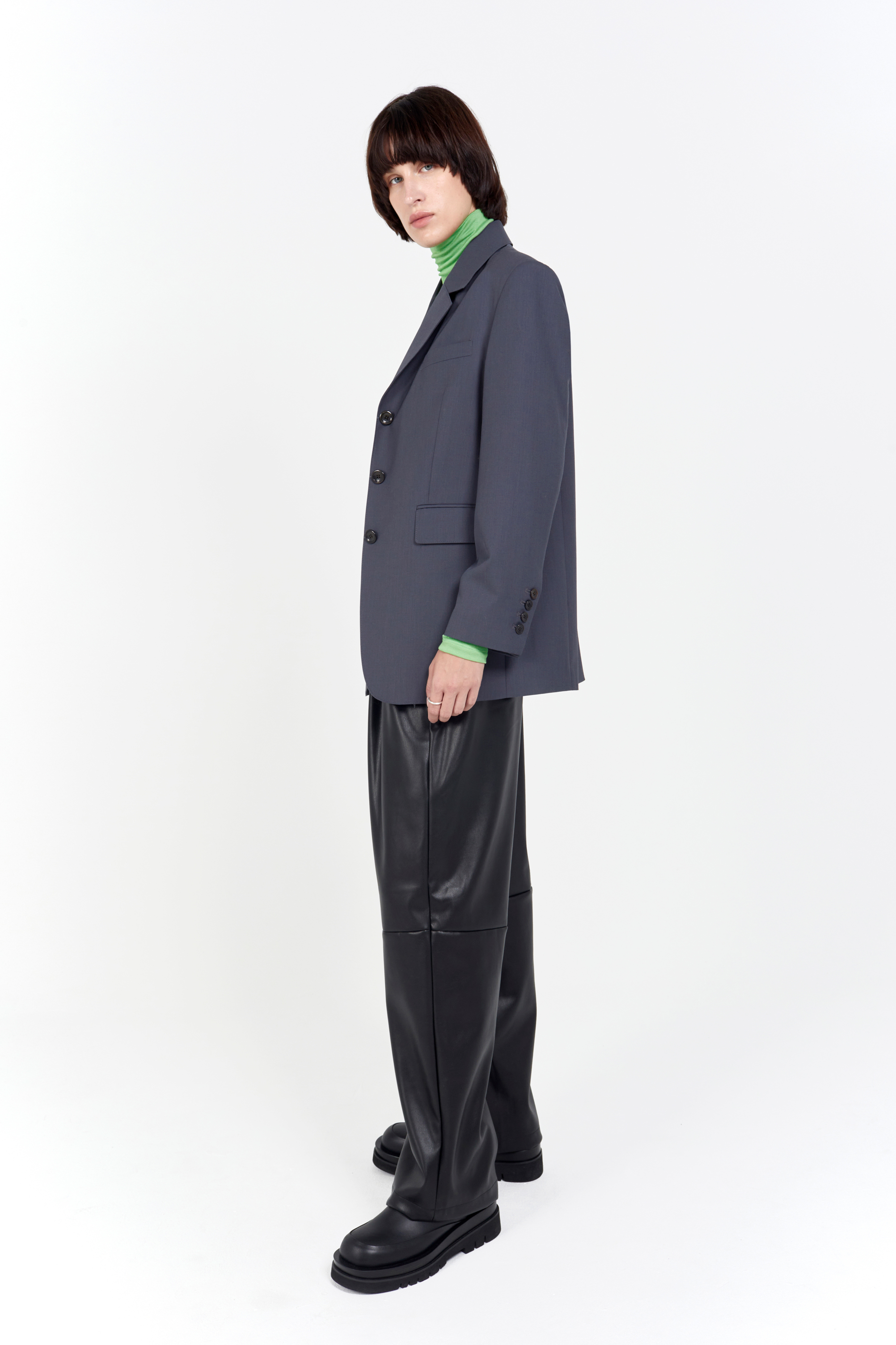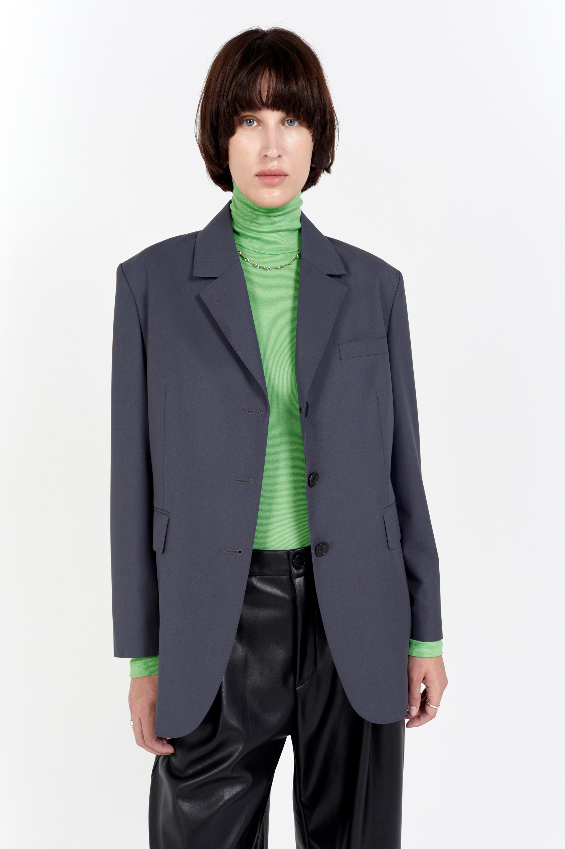 loose fit 3 button jacket ash grey