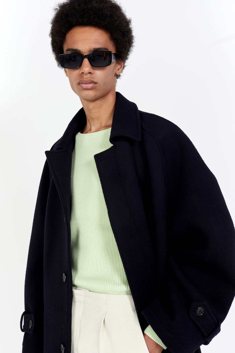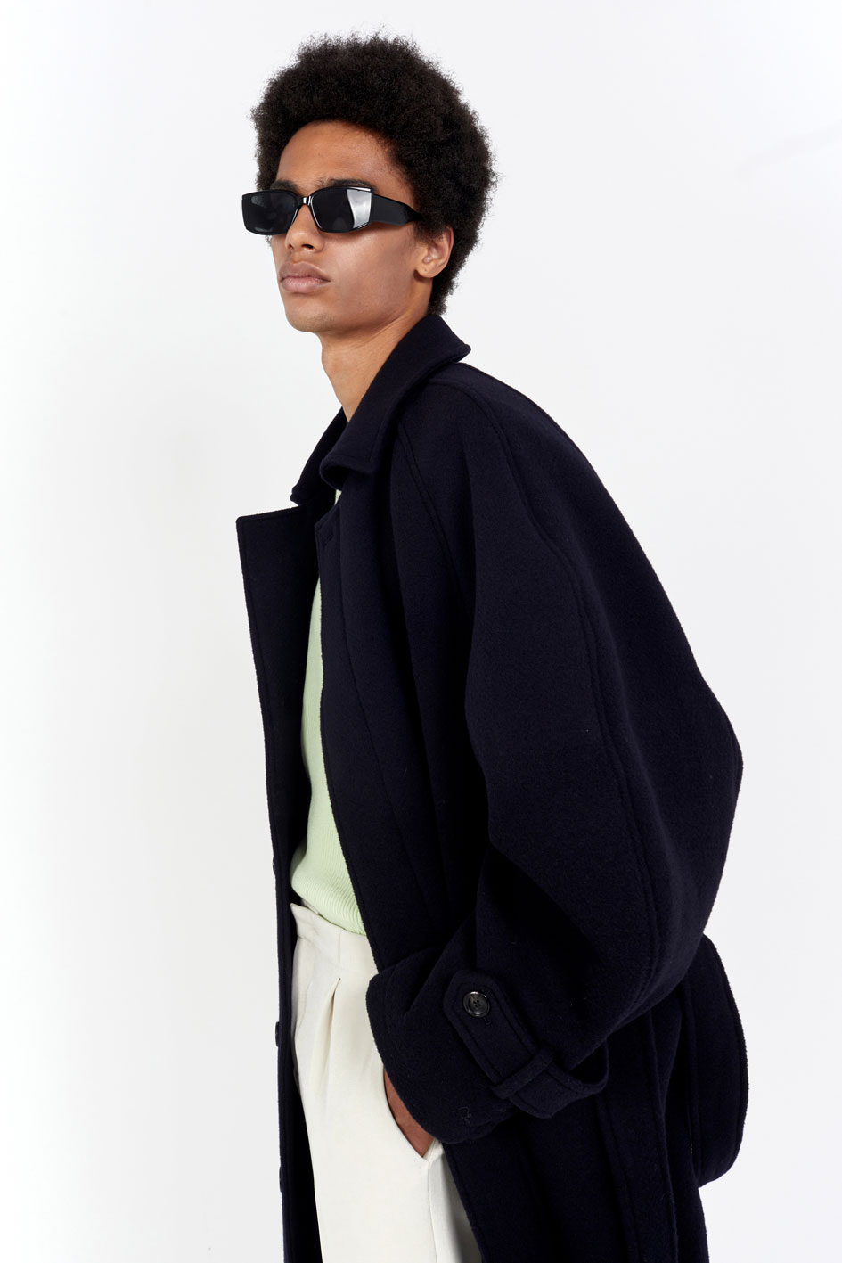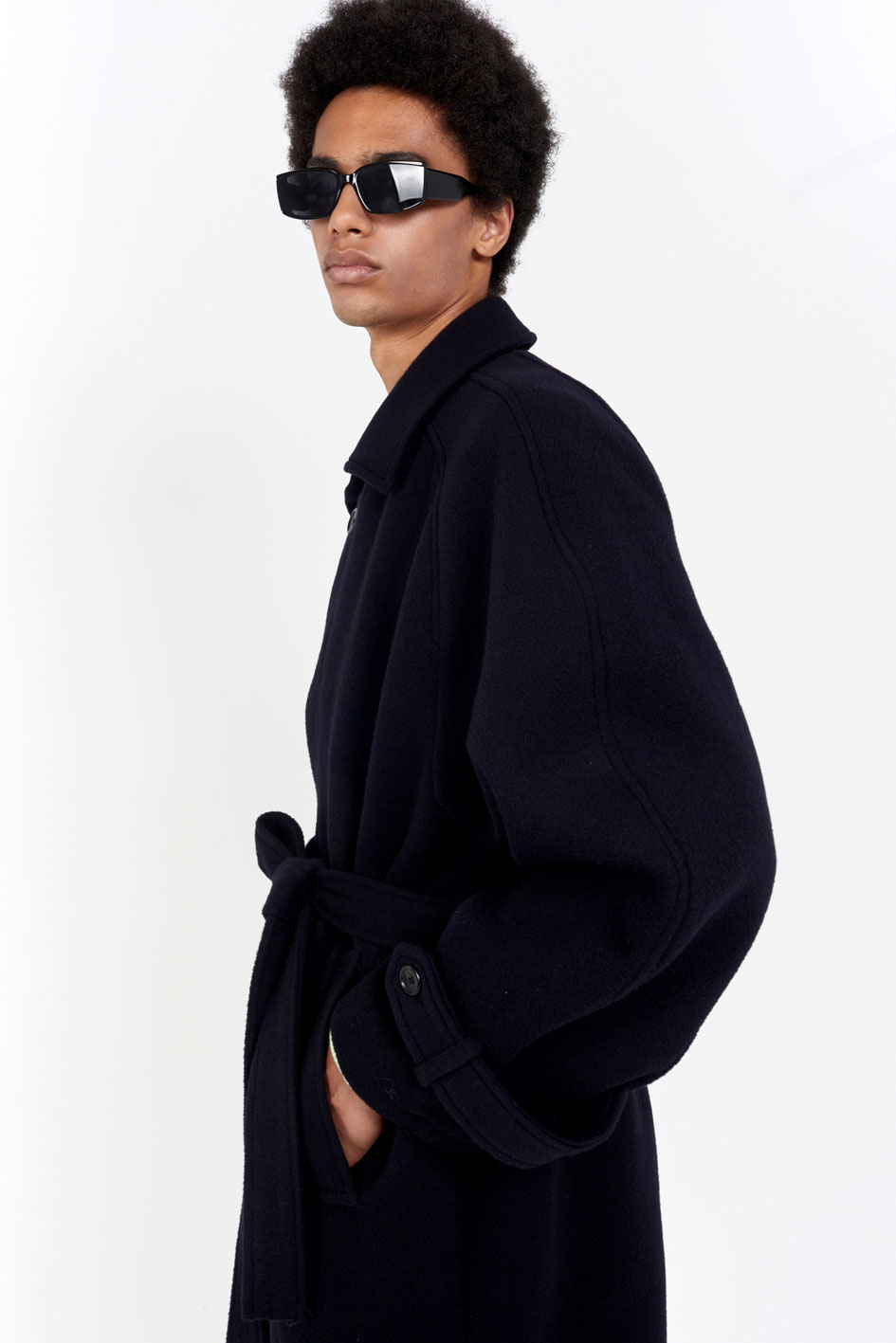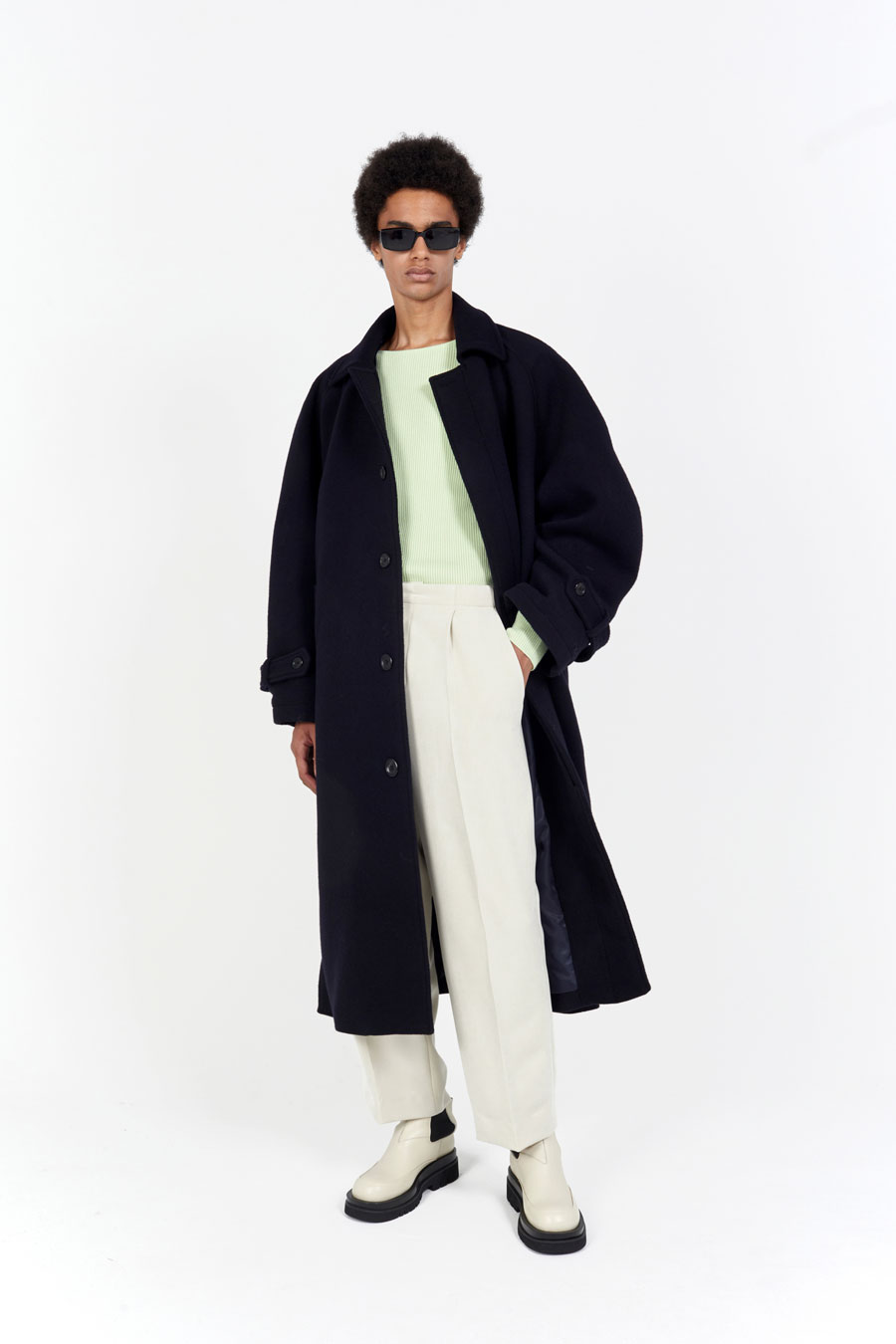 오버핏 발마칸 코트 스프레드 칼라 히든 버튼 클로징 래글런 슬리브 천연 소뿔 단추 사용 탈부착이 가능한 벨트 뒷 트임 디테일 부드러운 촉감의 컴팩트한 울 소재를 사용한 오버사이즈 핏 발마칸 코트입니다. 전체적으로 여유로운 실루엣이며, 래글런 슬리브로 제작되어 두께감 있는 이너와 착용하기도 좋은 사이즈로 제작되었습니다. 부드럽고 컴팩트한 울 소재로 보온성이 우수하여 겨울철 데일리로 착용하기 좋은 아우터입니다. 첫번째 단추를 제외하고 히든 버튼 클로징되며, 속주머니와 코트 뒷면 트임 디테일로 활동성과 실용성을 높였습니다. |