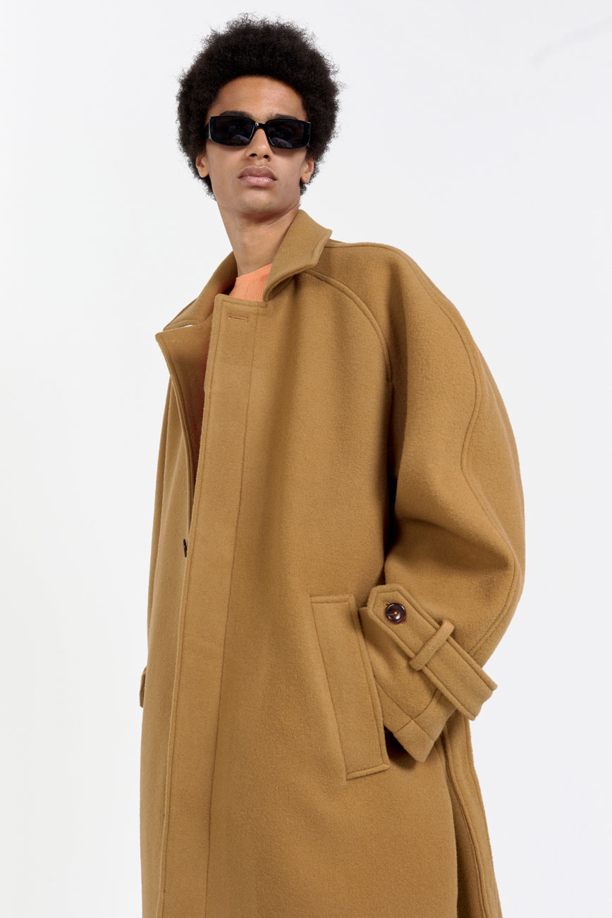오버핏 발마칸 코트 스프레드 칼라 히든 버튼 클로징 래글런 슬리브 천연 소뿔 단추 사용 탈부착이 가능한 벨트 뒷 트임 디테일 부드러운 촉감의 컴팩트한 울 소재를 사용한 오버사이즈 핏 발마칸 코트입니다. 전체적으로 여유로운 실루엣이며, 래글런 슬리브로 제작되어 두께감 있는 이너와 착용하기도 좋은 사이즈로 제작되었습니다. 부드럽고 컴팩트한 울 소재로 보온성이 우수하여 겨울철 데일리로 착용하기 좋은 아우터입니다. 첫번째 단추를 제외하고 히든 버튼 클로징되며, 속주머니와 코트 뒷면 트임 디테일로 활동성과 실용성을 높였습니다. |