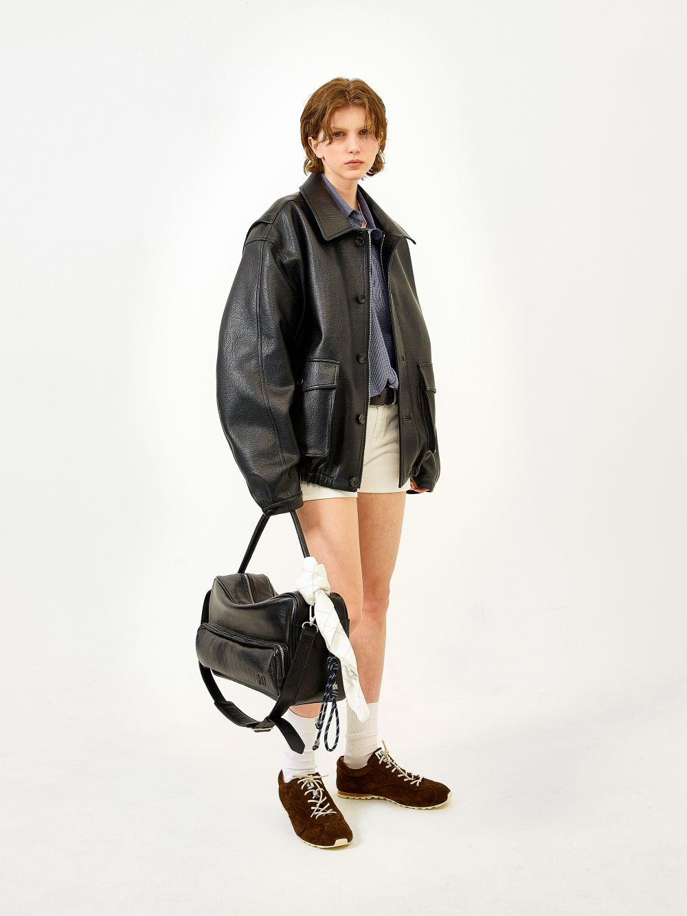 루즈핏 바이커 자켓 핸드 스크레치 디테일 YKK 社의 지퍼 소맷단 지퍼 오픈/클로징 밑단 밴딩 처리 핸드 스크레치 디테일이 멋스러운 루즈핏 바이커 자켓입니다. 모터사이클 문화에서 영감을 얻어 클래식한 바이커 자켓 실루엣에 최소한의 디테일을 가미하였습니다. 카라끝,암홀,소맷단,지퍼등 외각 라인을 따라 핸드 스크레치 처리하여 감각적인 터치를 느끼실 수 있는 아이템입니다. |