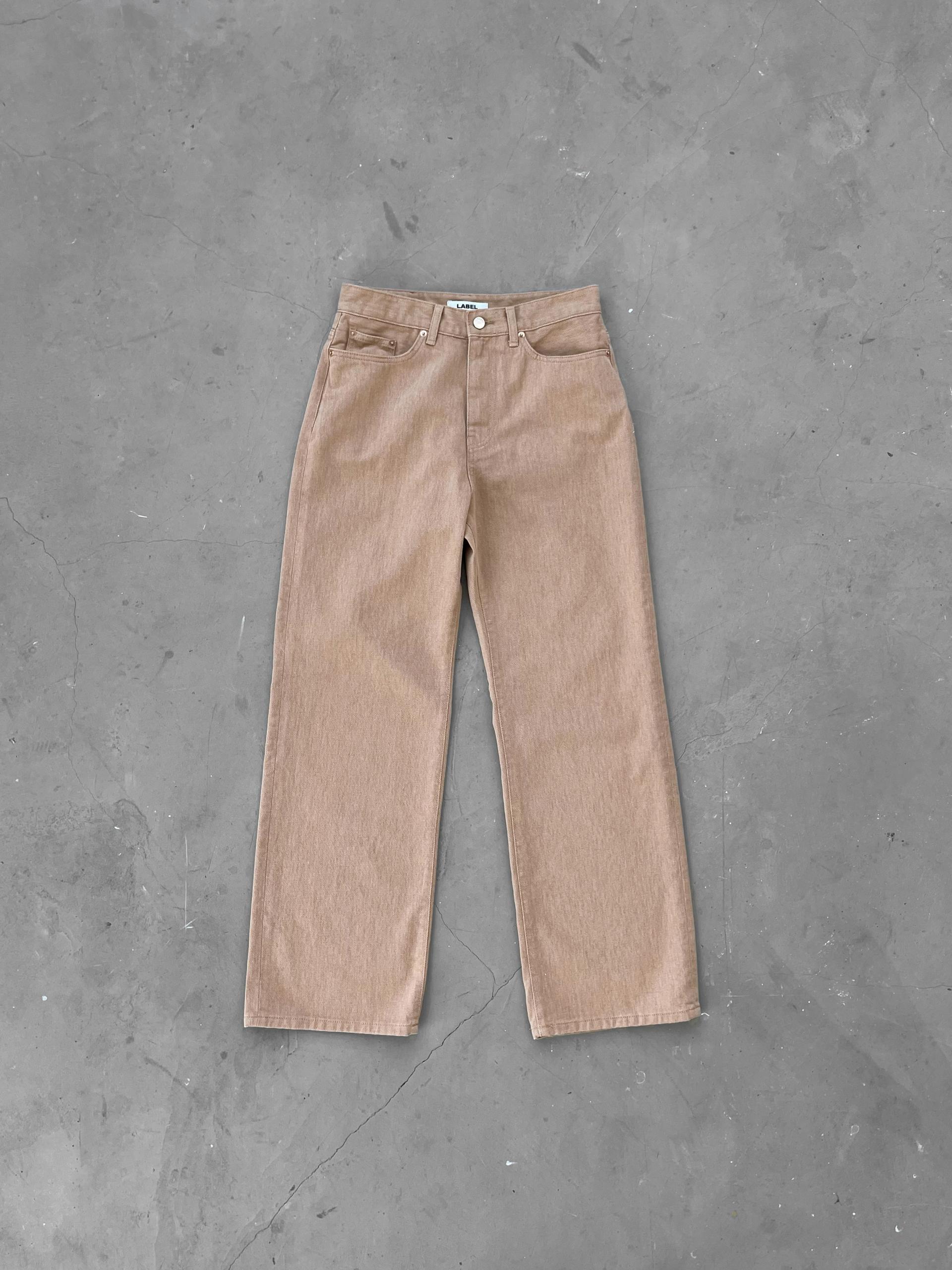 와이드 핏의 프리미엄 퀄리티 청바지 자사 개발 컬러 염색 원단 사용 YKK 社의 지퍼, 리벳 LABEL 로고가 각인된 고정식 켄톤 30수 트윌 코튼 주머니감 이탈리아산 베지터블 소가죽 패치 코아사 봉사 |
