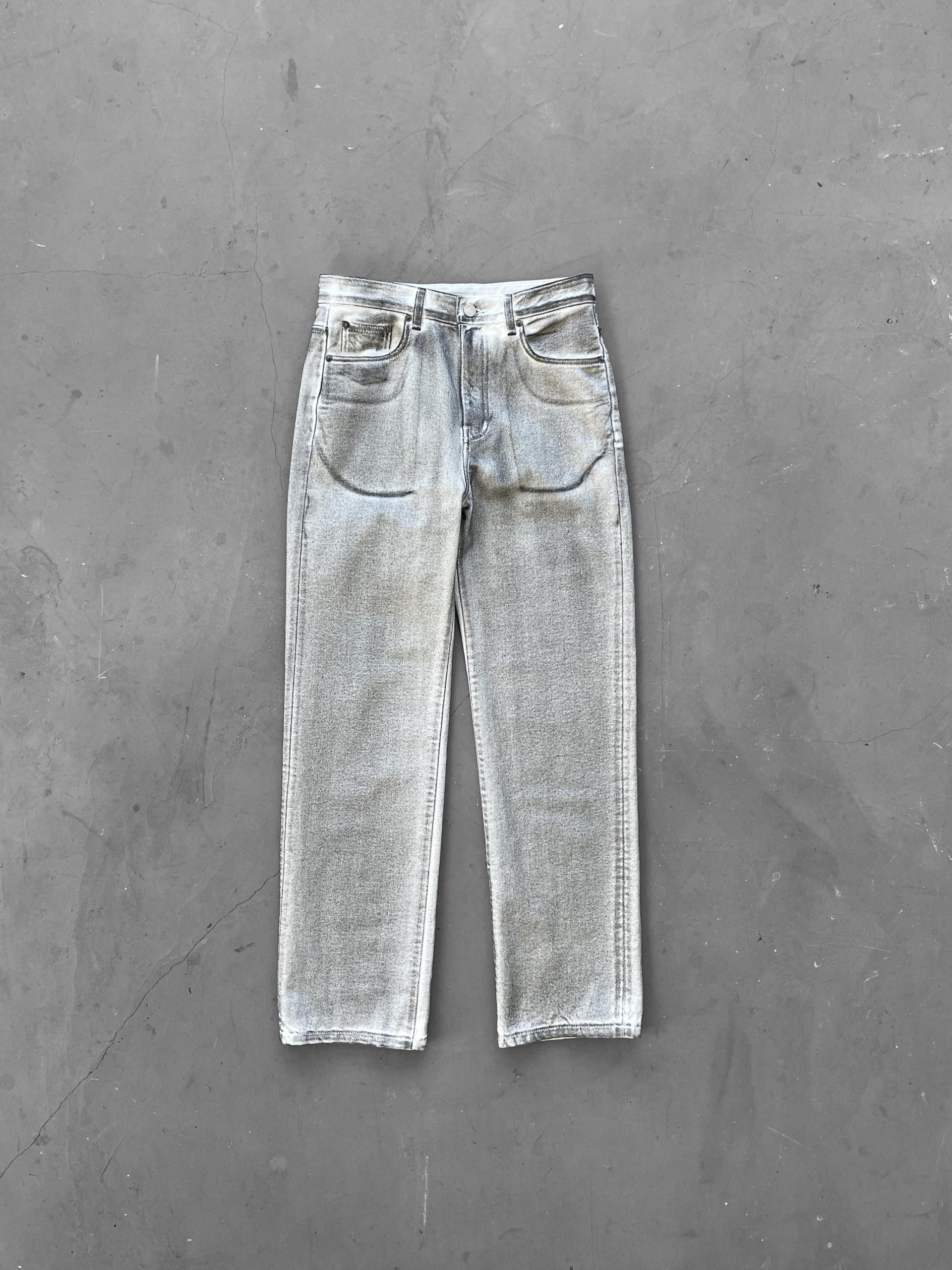 슬림 스트레이트 핏 진 페인트 나염 디테일 YKK 社의 지퍼, 리벳 LABEL 로고가 각인된 고정식 켄톤 30수 트윌 코튼 주머니감 이탈리아산 베지터블 소가죽 패치 코아사 봉사 페인트로 칠해진 듯한 러프한 나염이 멋스러운 페인트 진 입니다. SS 시즌 심심한 룩에 포인트가 되어줄 감각적인 아이템입니다. |