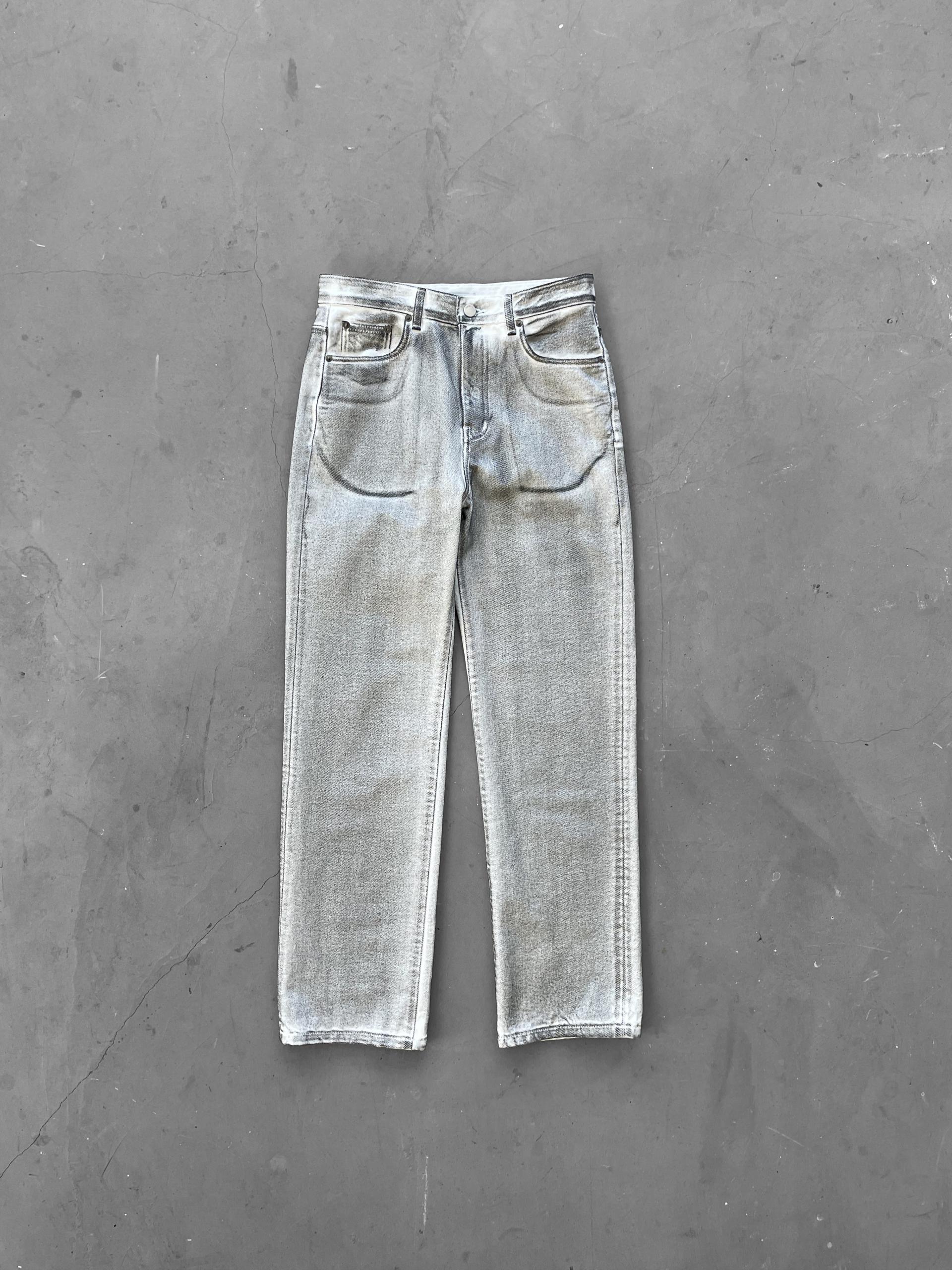 슬림 스트레이트 핏 진 페인트 나염 디테일 YKK 社의 지퍼, 리벳 LABEL 로고가 각인된 고정식 켄톤 30수 트윌 코튼 주머니감 이탈리아산 베지터블 소가죽 패치 코아사 봉사 페인트로 칠해진 듯한 러프한 나염이 멋스러운 페인트 진 입니다. SS 시즌 심심한 룩에 포인트가 되어줄 감각적인 아이템입니다. |