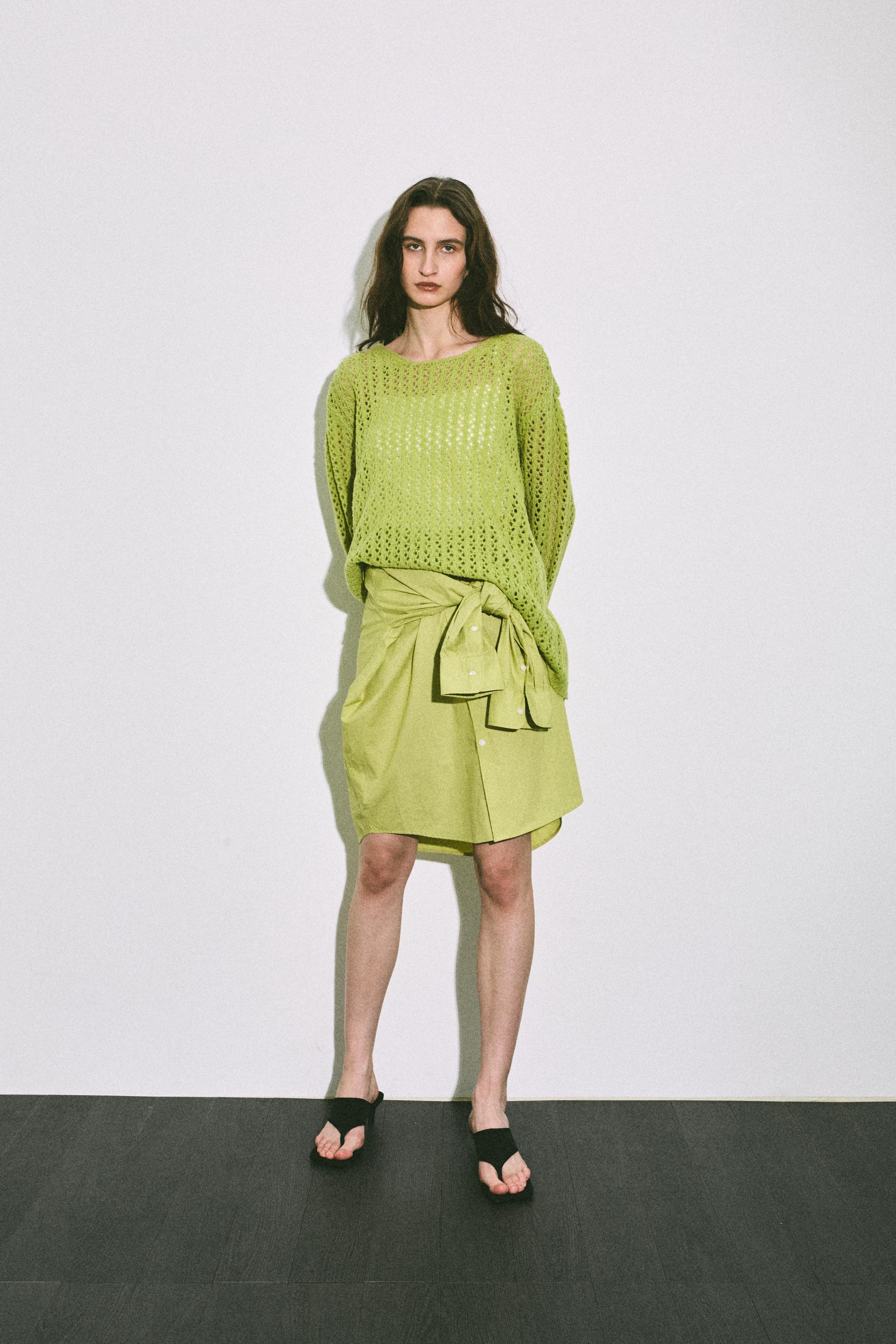 Wool 53 acrylic 25 nylon 22 옅게 나타난 헤어리한 원사로 편직한 크로쉐 조직감이 특징입니다. CARE · 드라이클리닝을 권장합니다. |