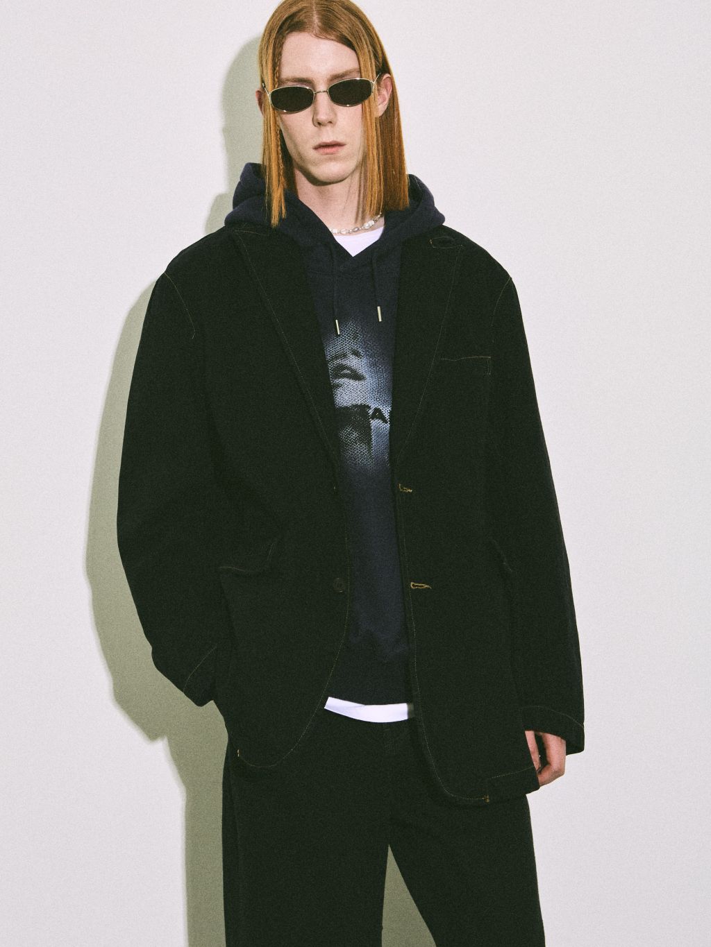 루즈핏 싱글 브래스티드 자켓 가먼트 다잉 버튼 클로징 프론트 웰트/플랩 포켓 안감이 없는 제품 7수 데님으로 제작된 루즈핏 싱글 브래스티드 자켓입니다. 힘이 있는 데님으로 홑겹으로 제작되어 간절기 아우터로 활용하기 좋은 아이템입니다. 블루 톤의 데님을 가먼트 다잉한 제품으로 배색 스티치가 멋스러운 제품입니다. · 다잉 제품으로 이염이 있을 수 있으니 밝은색 의류와 악세사리 착용시 주의해주세요. |